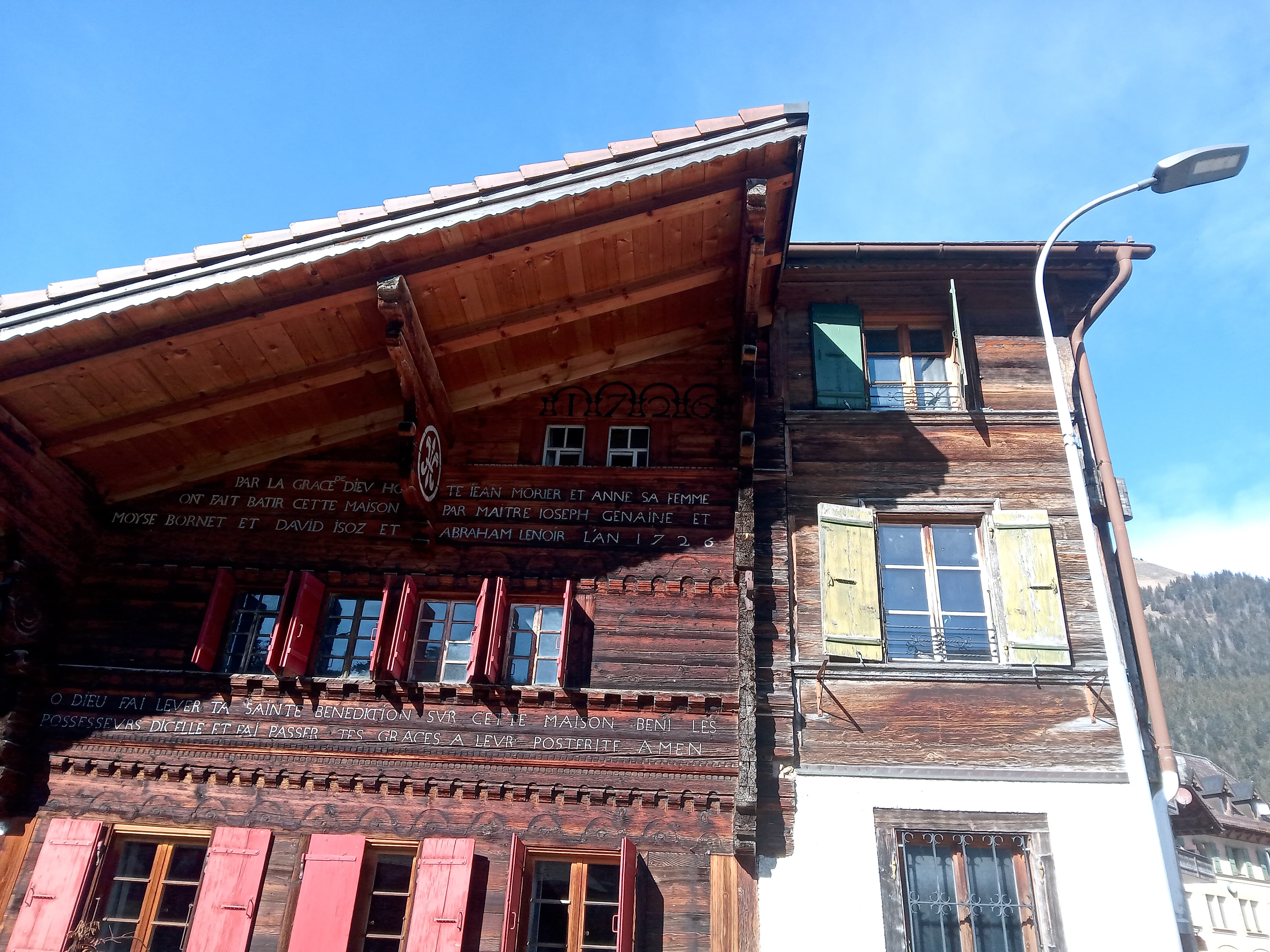 Lo más probable es que sea pino meleze, es la madera más durable de las coníferas, como curiosidad pierde las hojas en invierno, por esta zona hay chalés con cuatrocientos años,