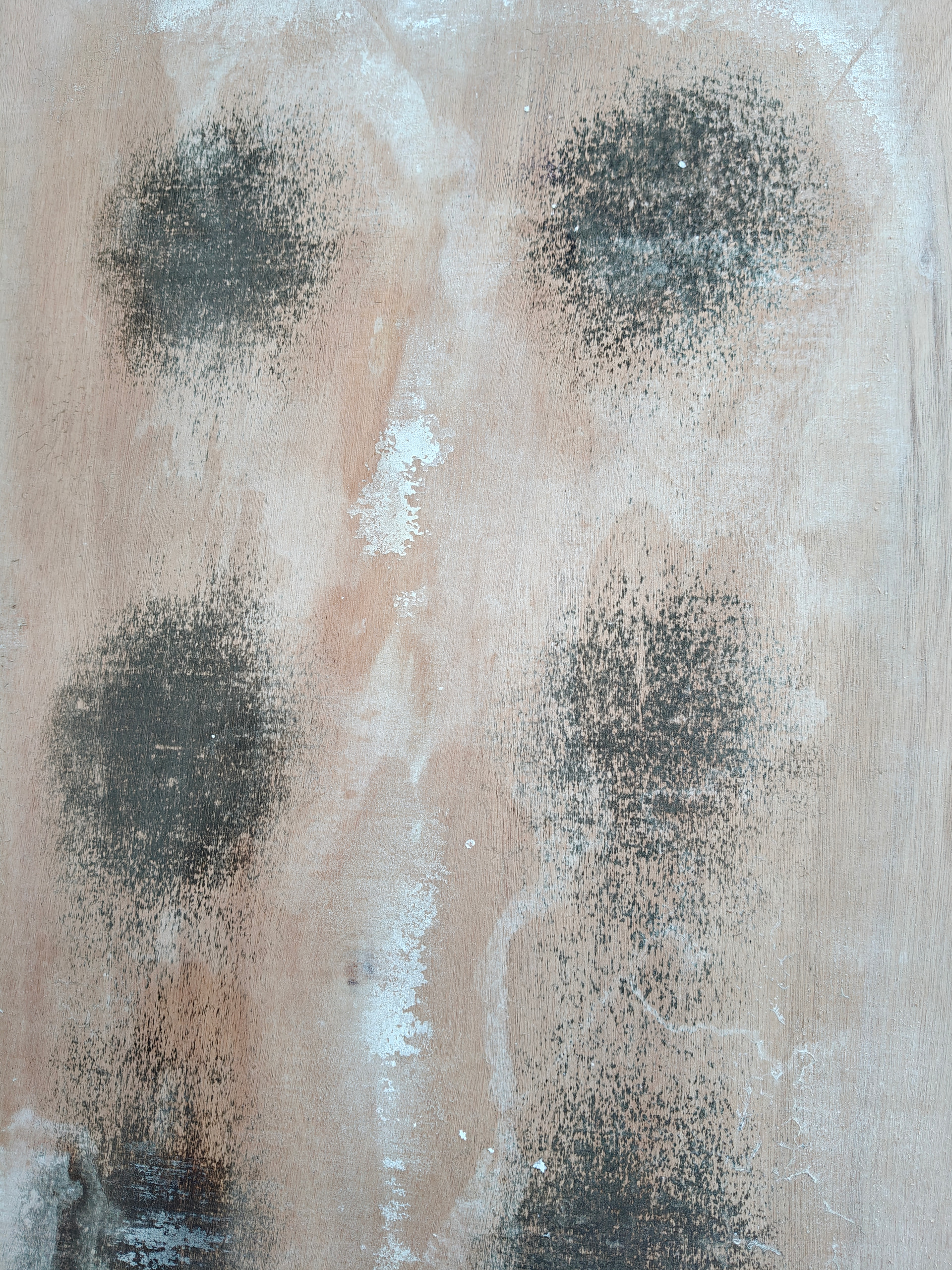 Hace unos días han llegado a mis manos unos cuantos tableros de contrachapado en los que en una de las caras hay manchas negras de humedad y hongos. La cara opuesta está perfecta, o casi perfecta y sin manchas.