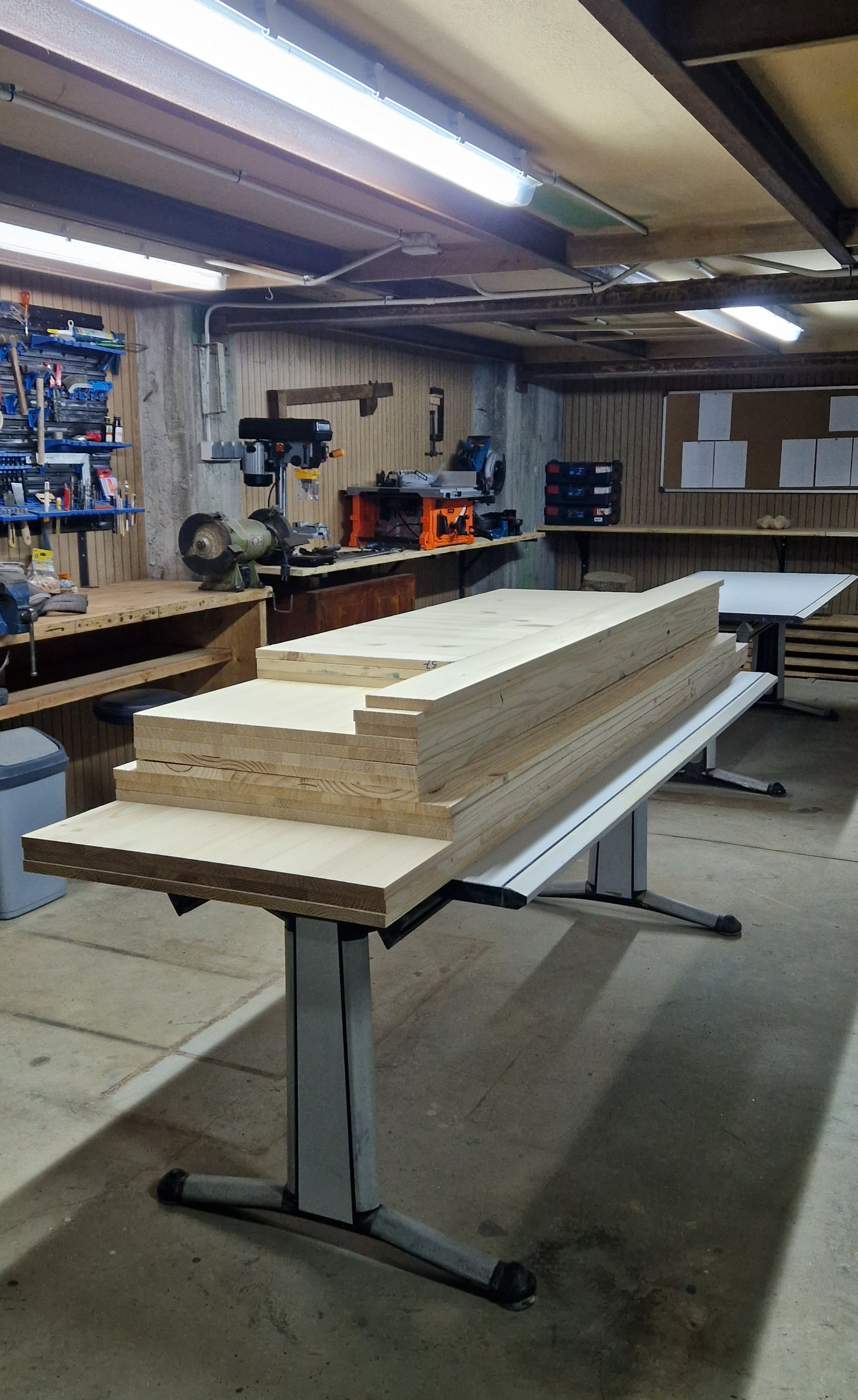 Deciros que al final le encargué a un amigo carpintero la madera, ya que trabaja con varios distribuidores y me aplica su descuento. Son tableros de pino rústico de 240 x 122 x 1,8. Son demasiado grandes para manejarlos y cortarlos cómodamente con mi sierran de mesa, asiq el día que vaya a por ellos aprovecharemos para cortarlos, en su taller, en piezas mas manejables.