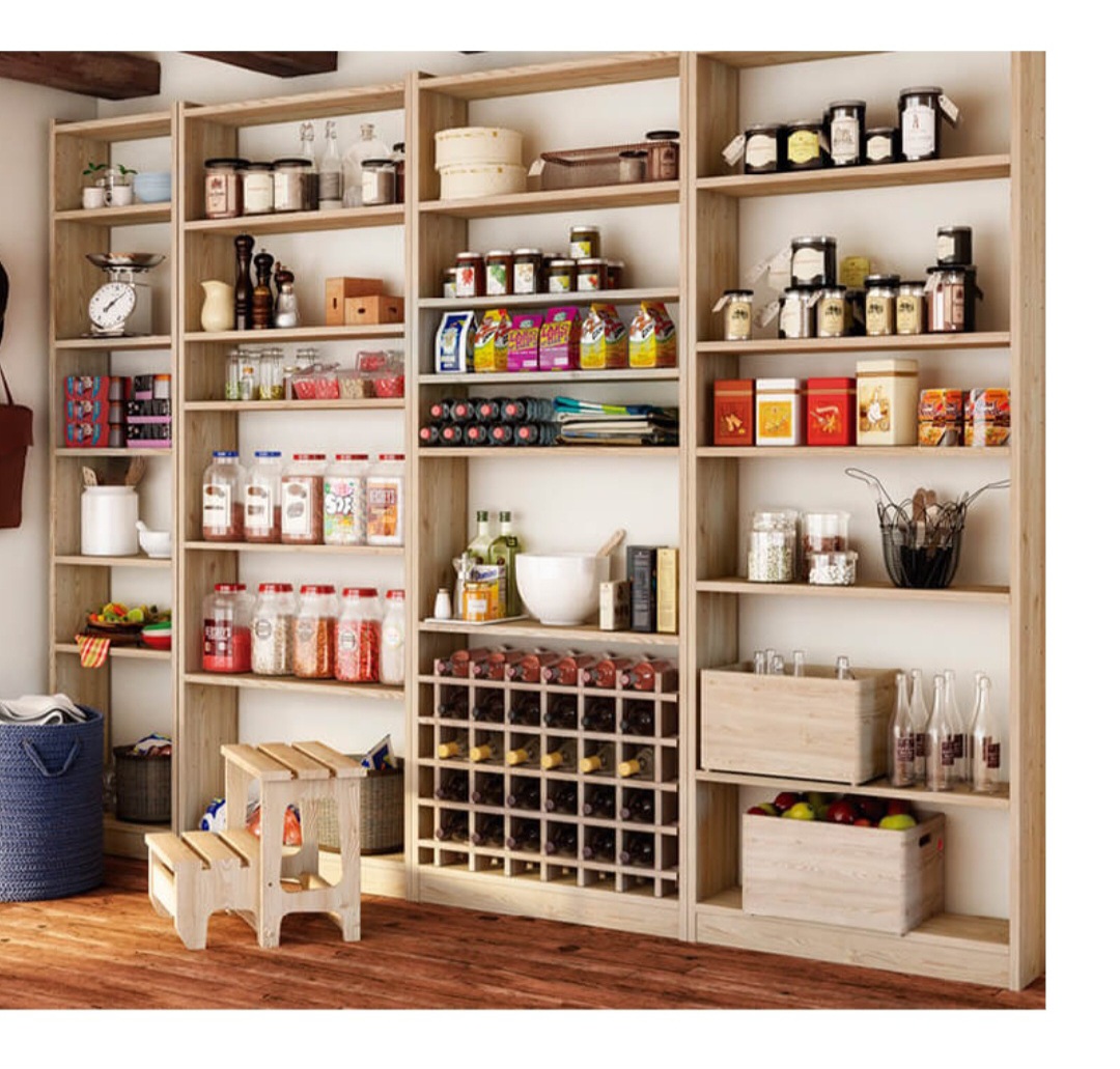 Es mucho mas práctico tener largas estanterias a,la misma altura como en un supermercado que varias cortas.