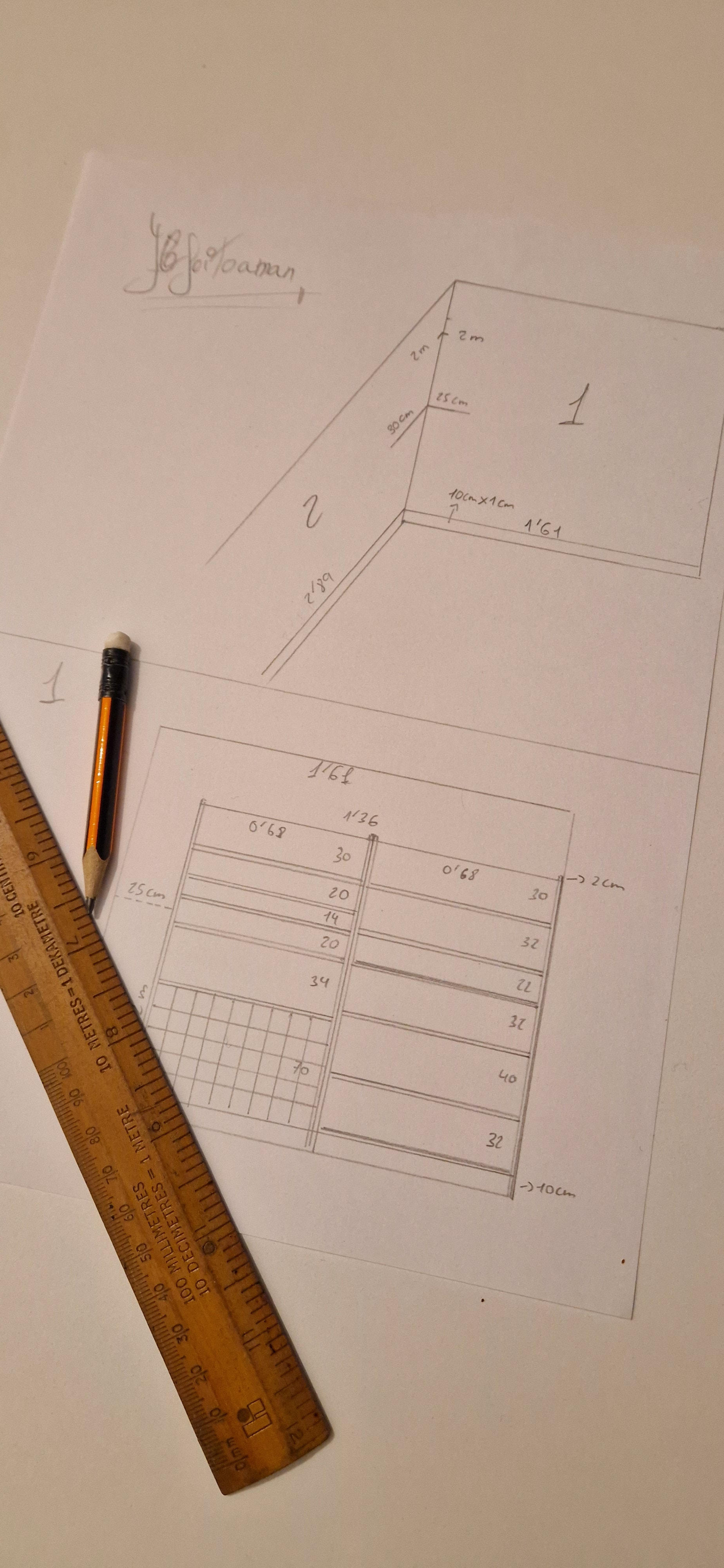 Las medidas pueden variar y haré otros bocetos con las medidas exactas de todo. Estos los he hecho para hacerme a la idea de cuanta madera necesitaría.