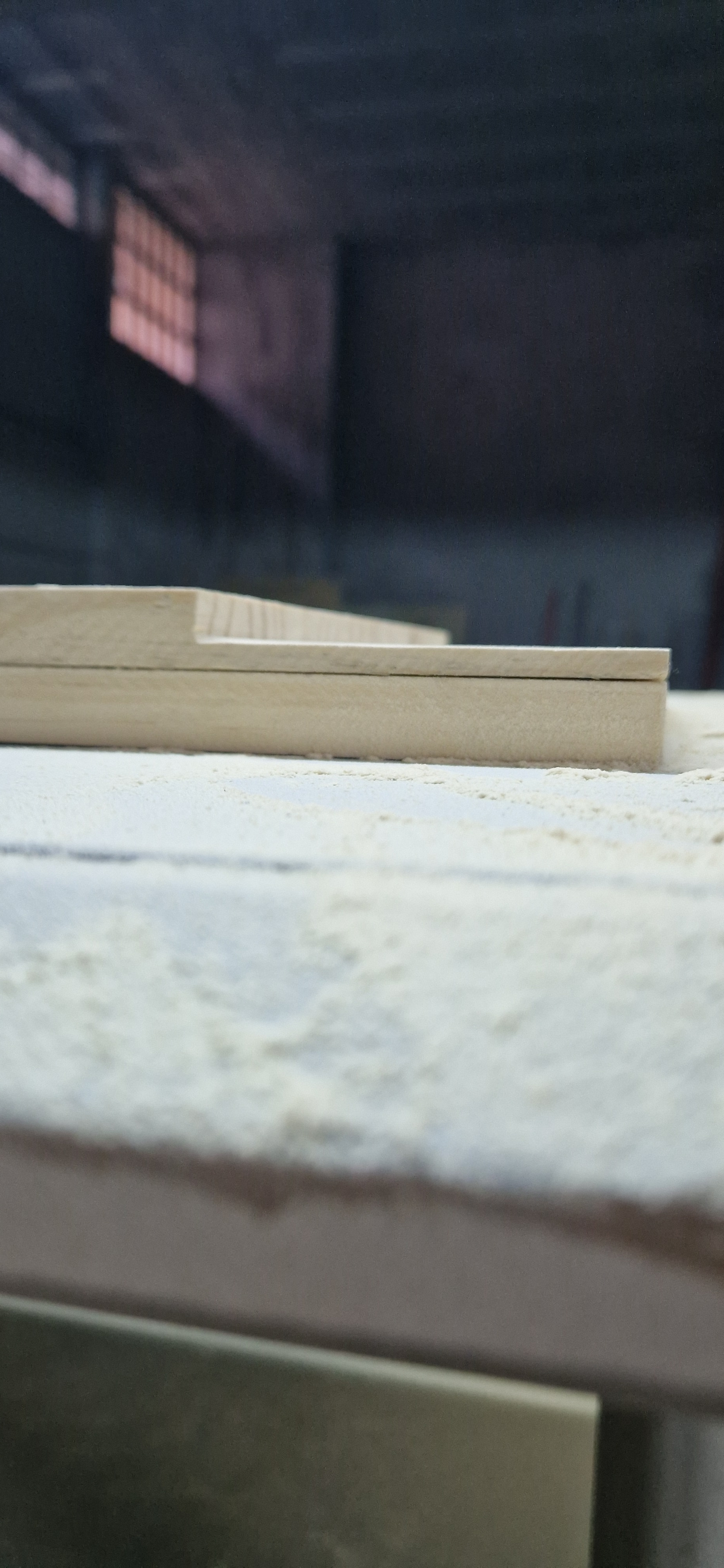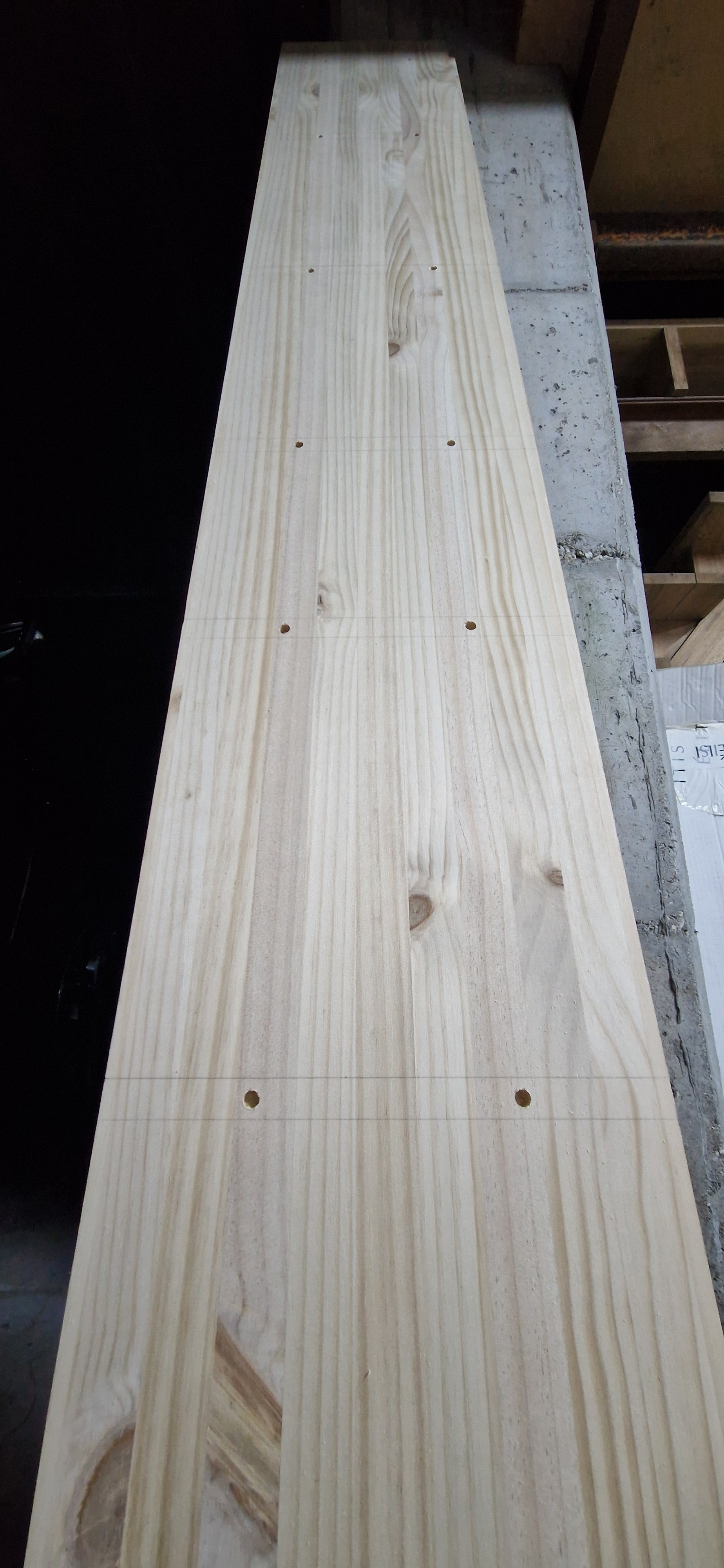 Ahora ya lijado y encastrado. Como veis he cortado todas las tablas a favor de veta menos tres para que cundo lije el frente y le de el aceite quede como un patron