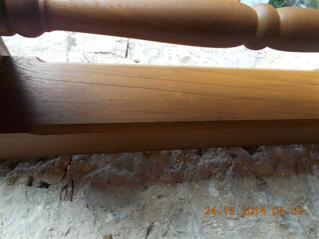 Lo que no acaba de gustarme en el palo que muestras es que la veta no es paralela sino que esta oblicua respecto a la vertical y que ya se nota que se a intentado enmasillar las grietas.