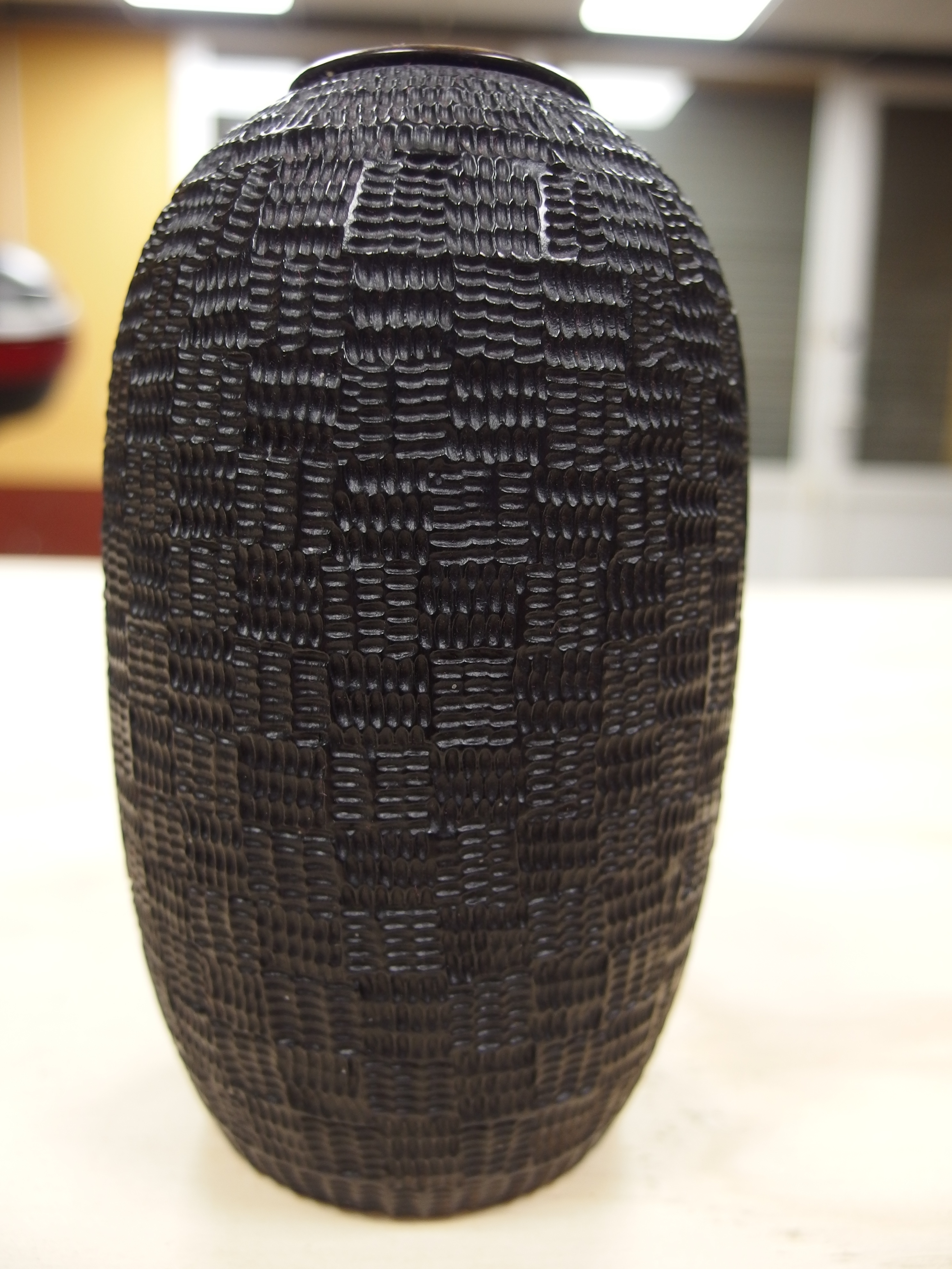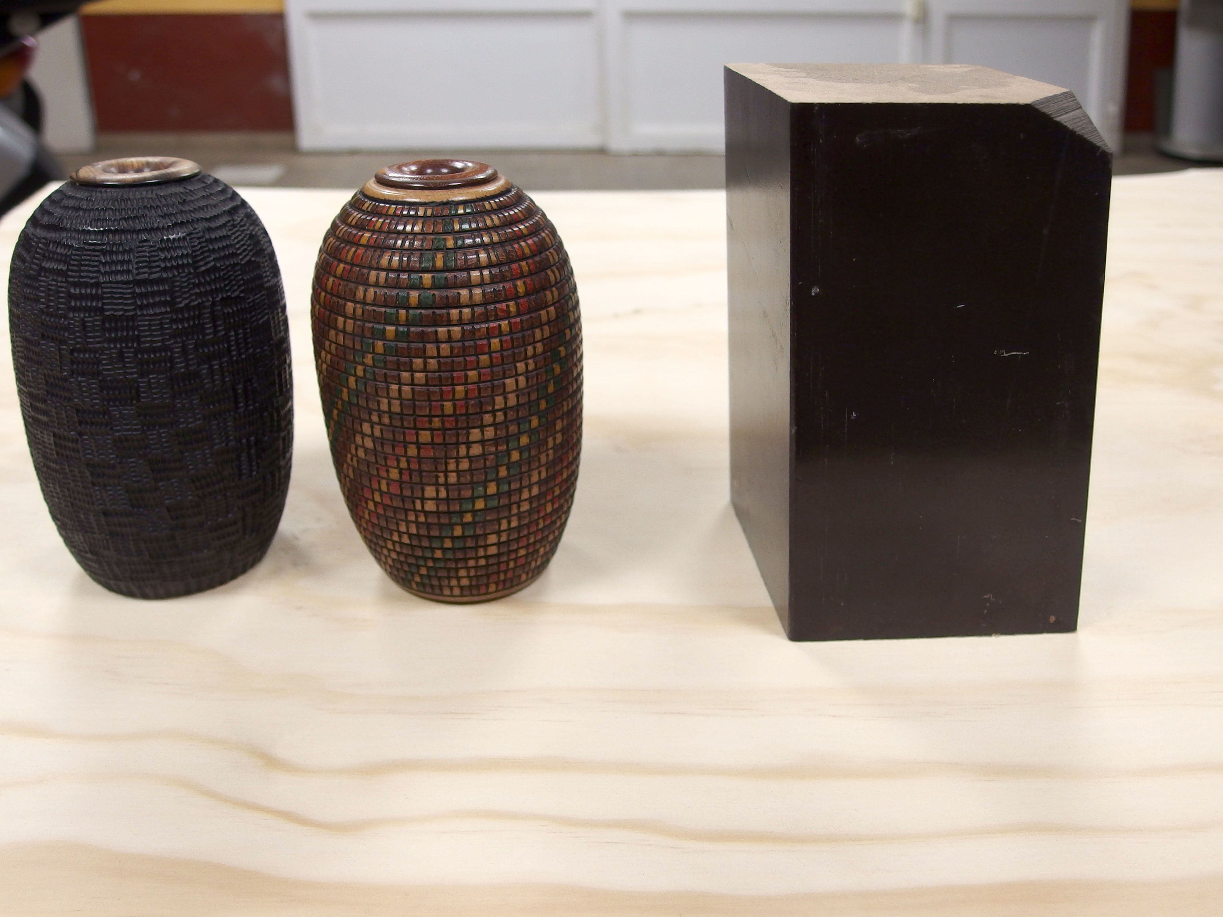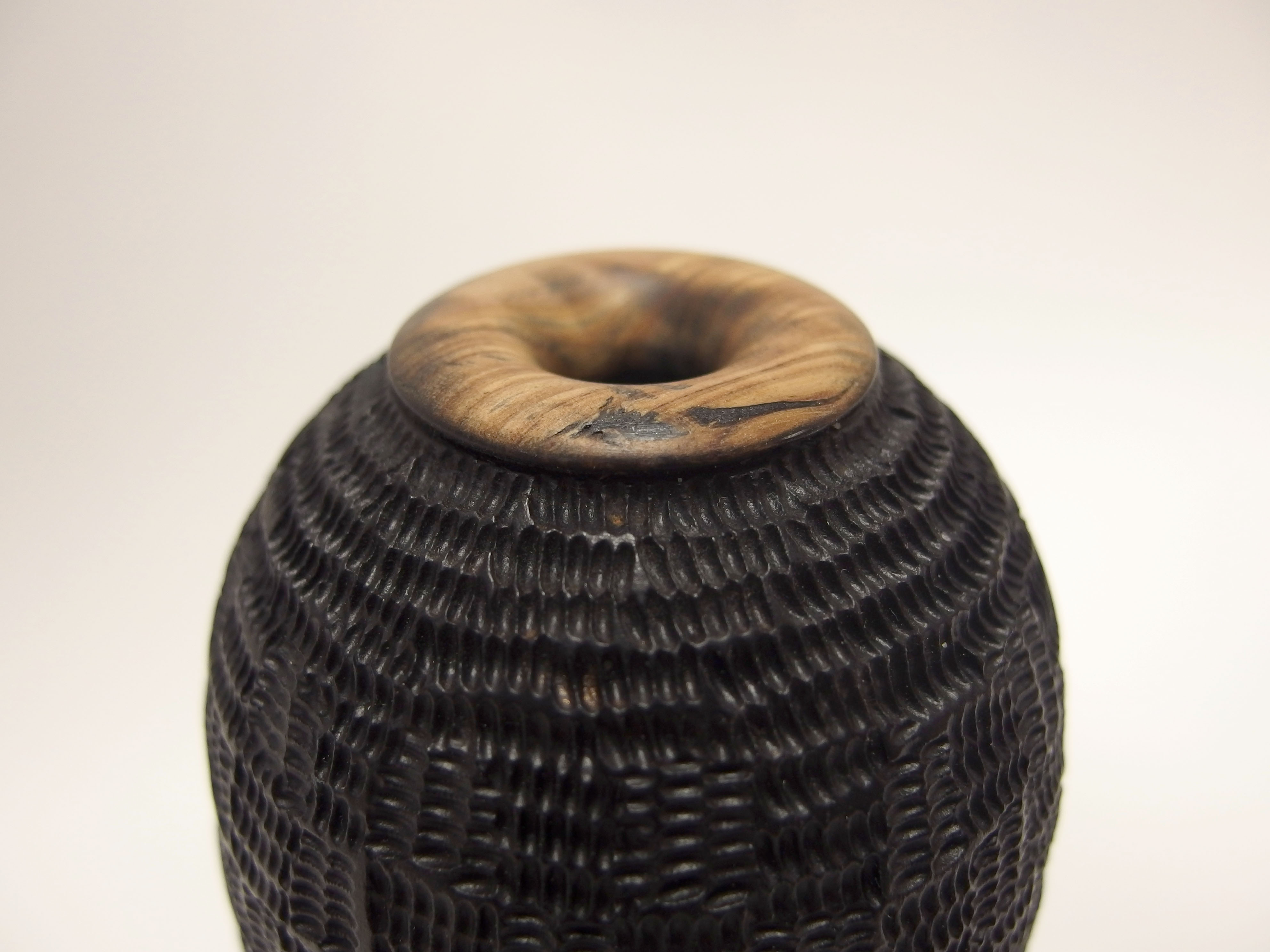 Este está todo pirograbado (con un pirograbador casero) y pintado con negro satinado