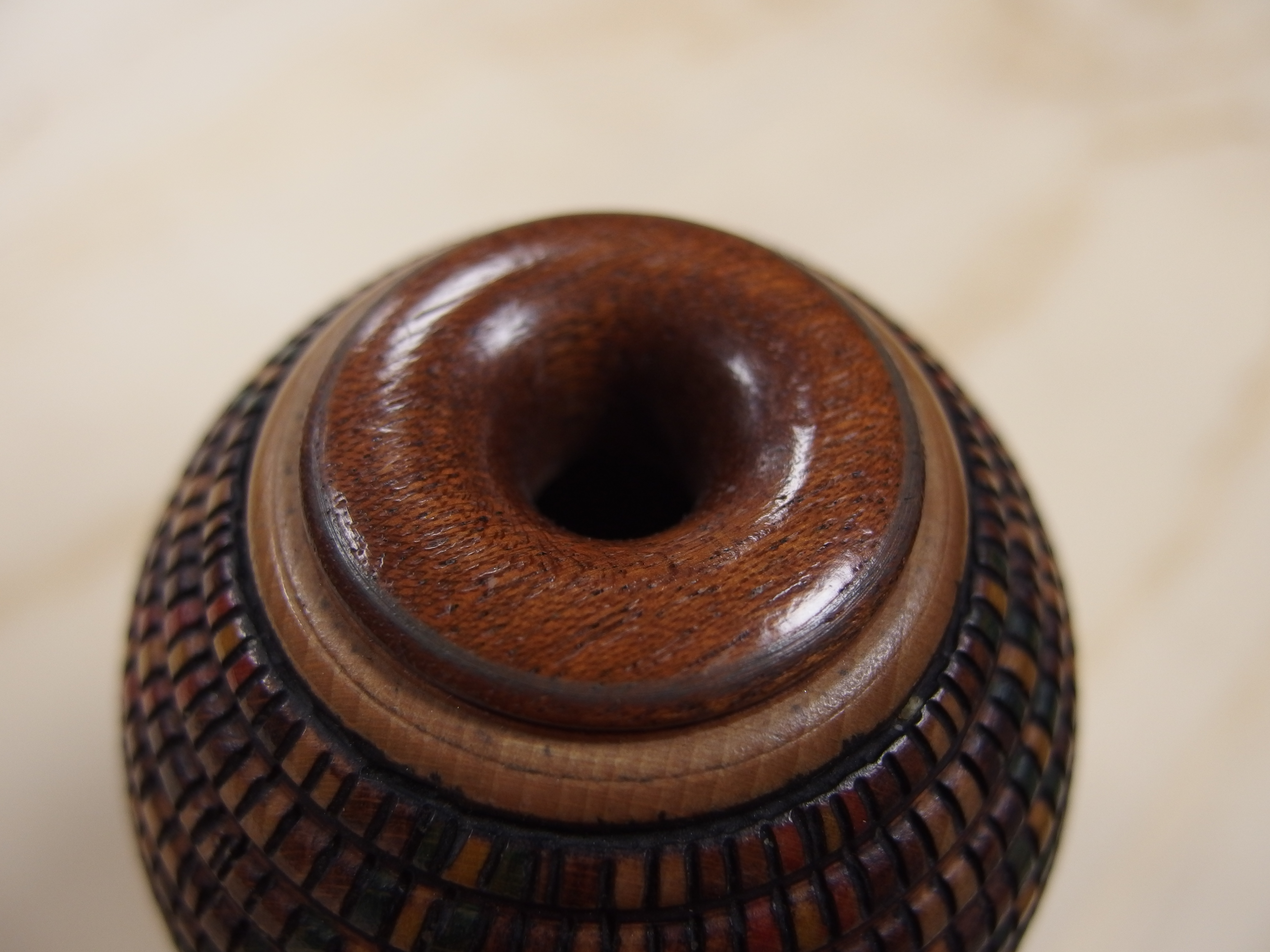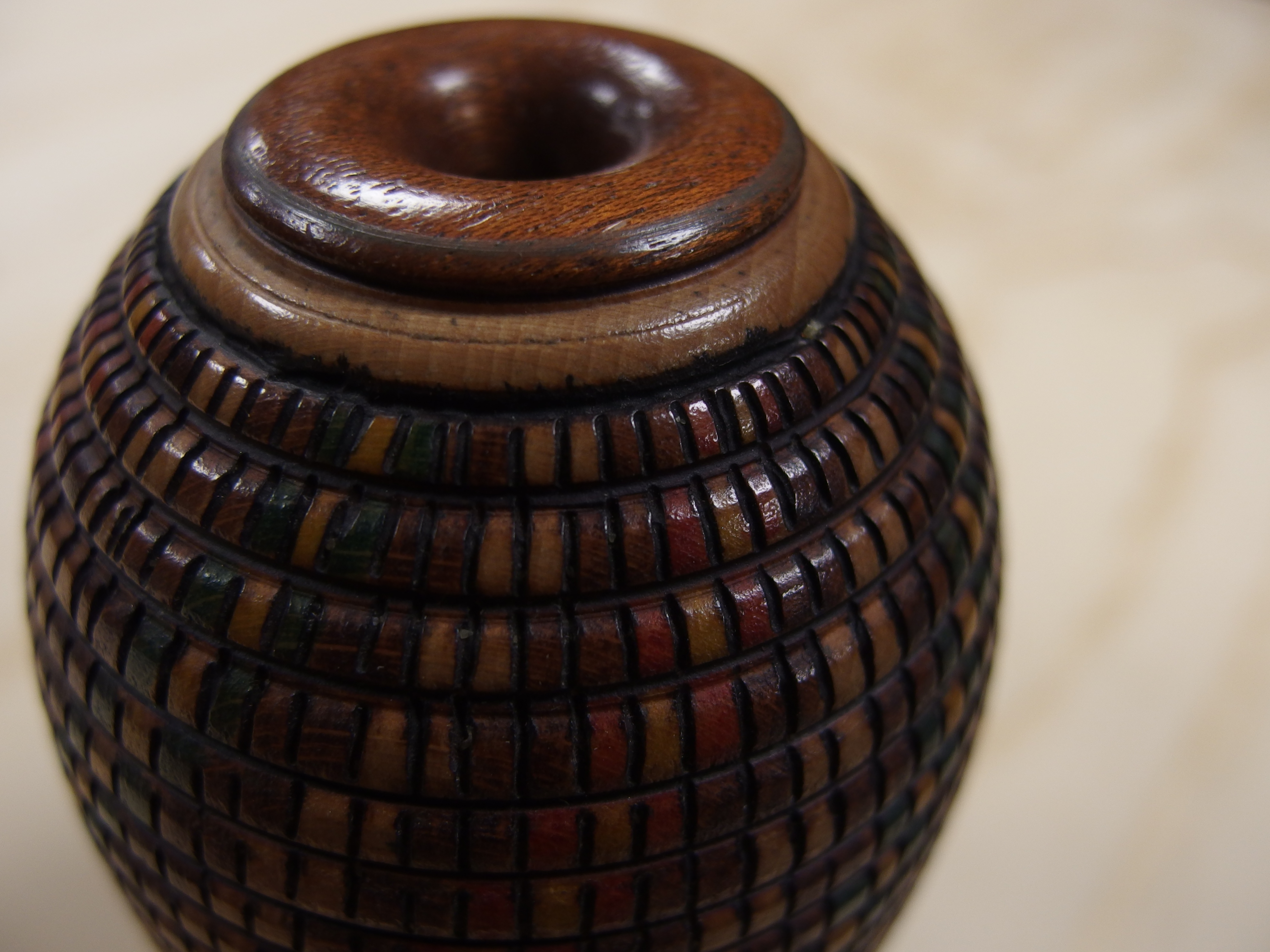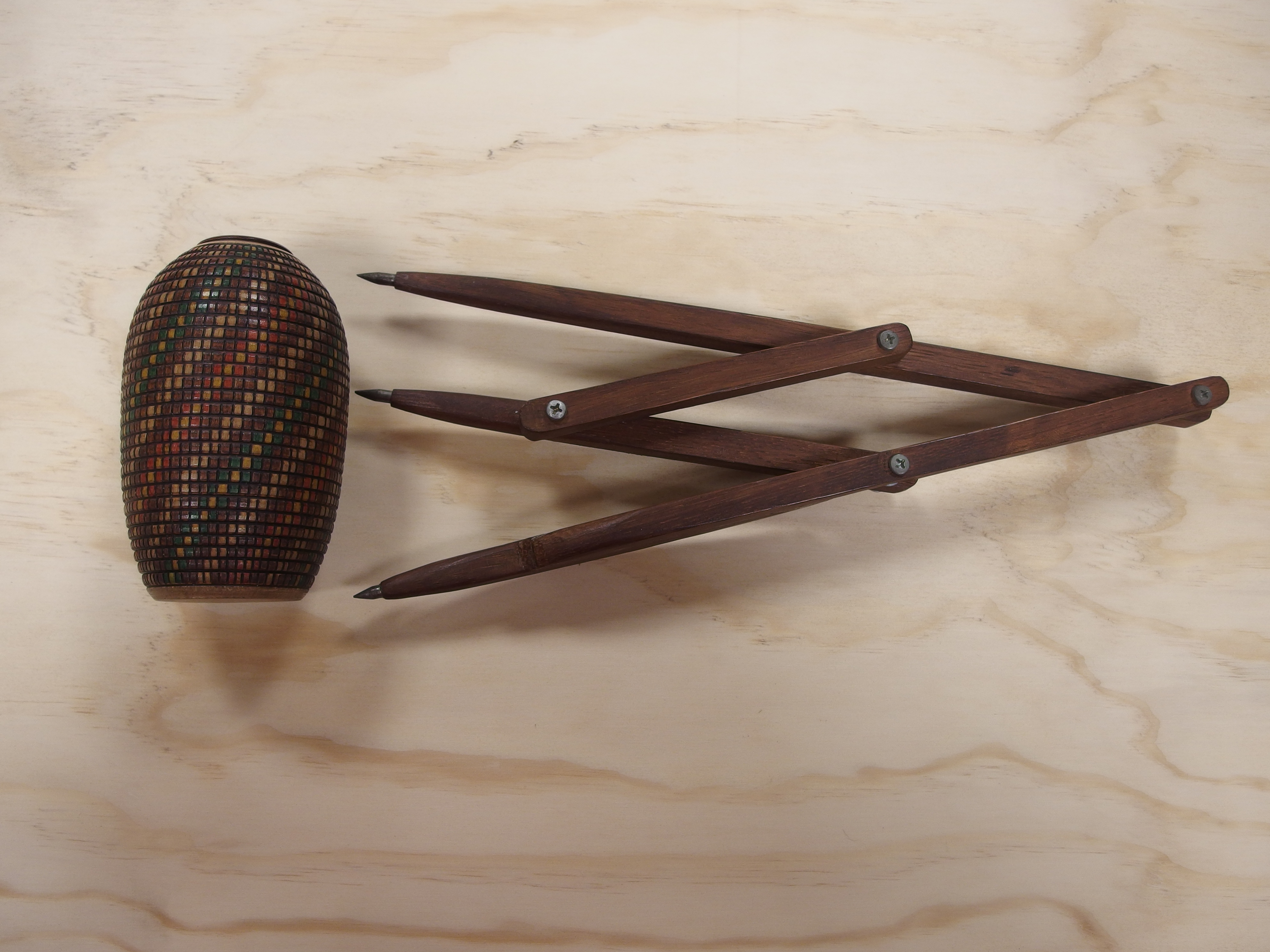 Este está todo pirograbado (con un pirograbador casero) y pintado con negro satinado