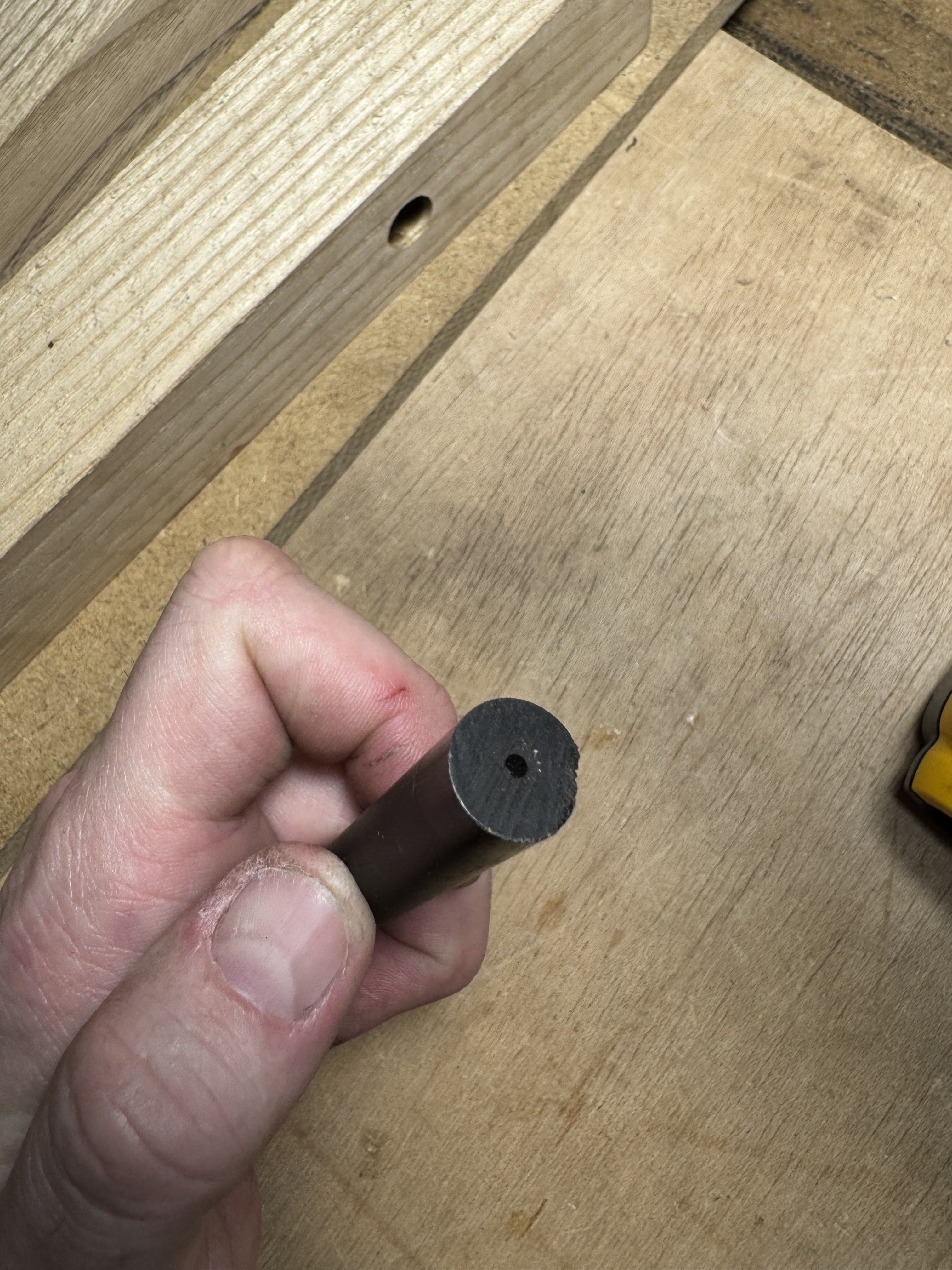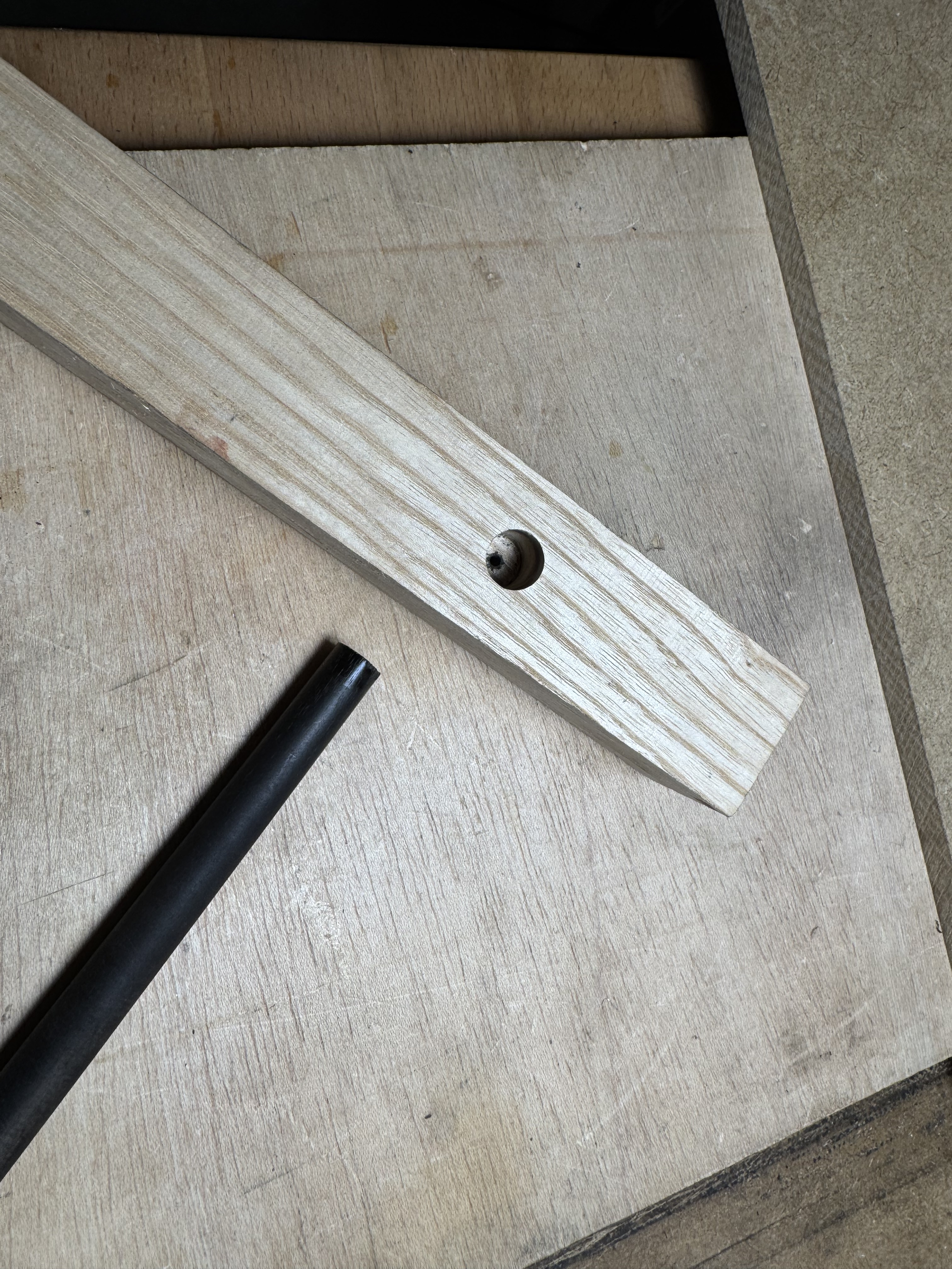 Para el taladro en el centro había pensado taladrar un taco con una broca de 12, meter hasta media altura el segmento, por el otro extremo meter la broca de 12 hasta marcar la cara del segmento con la punta de la broca. Con esto debería valer. Os contaré.