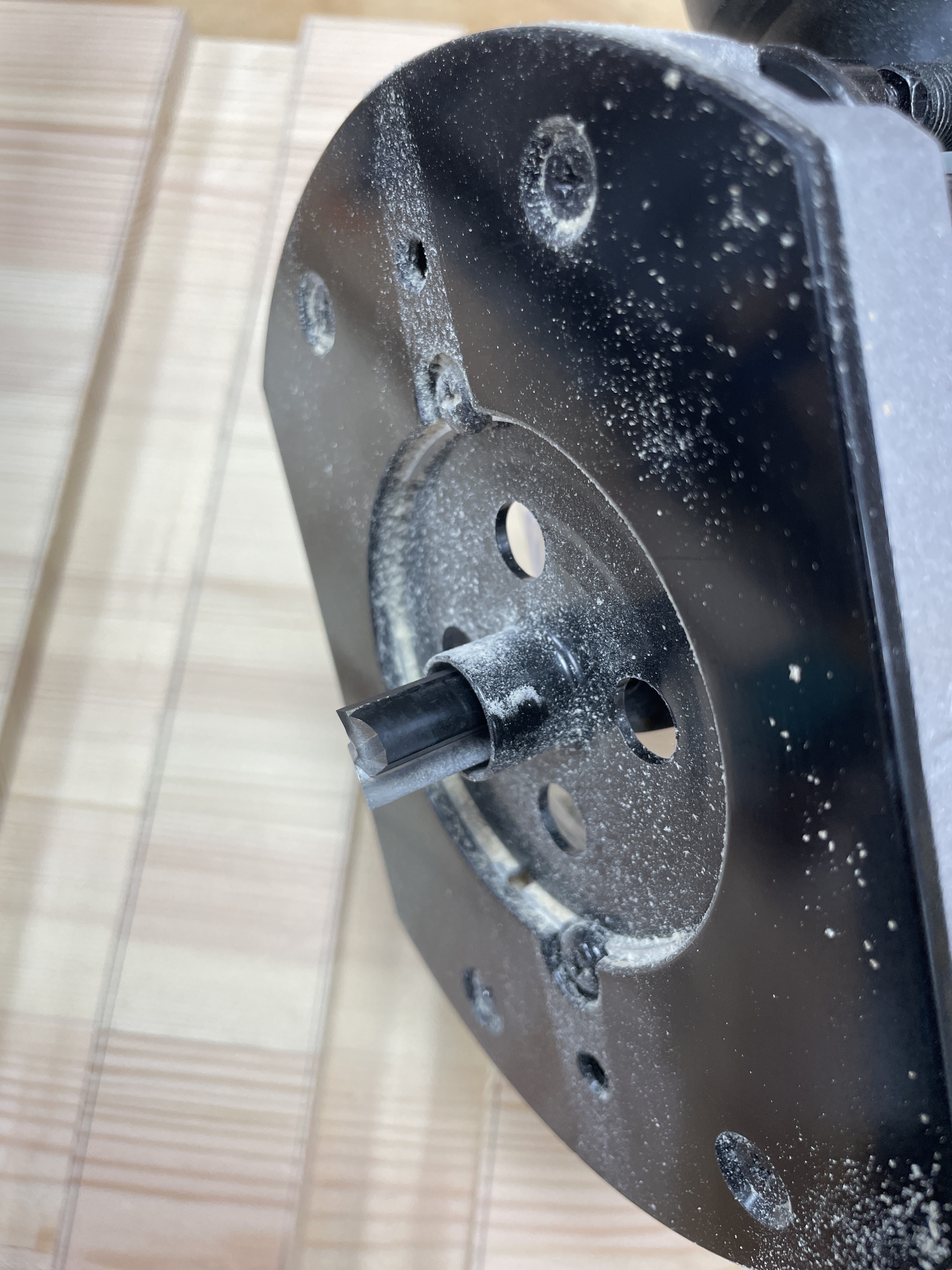 La desventaja: no funciona la aspiración de virutas porque el anillo tapa el orificio inferior de la base.