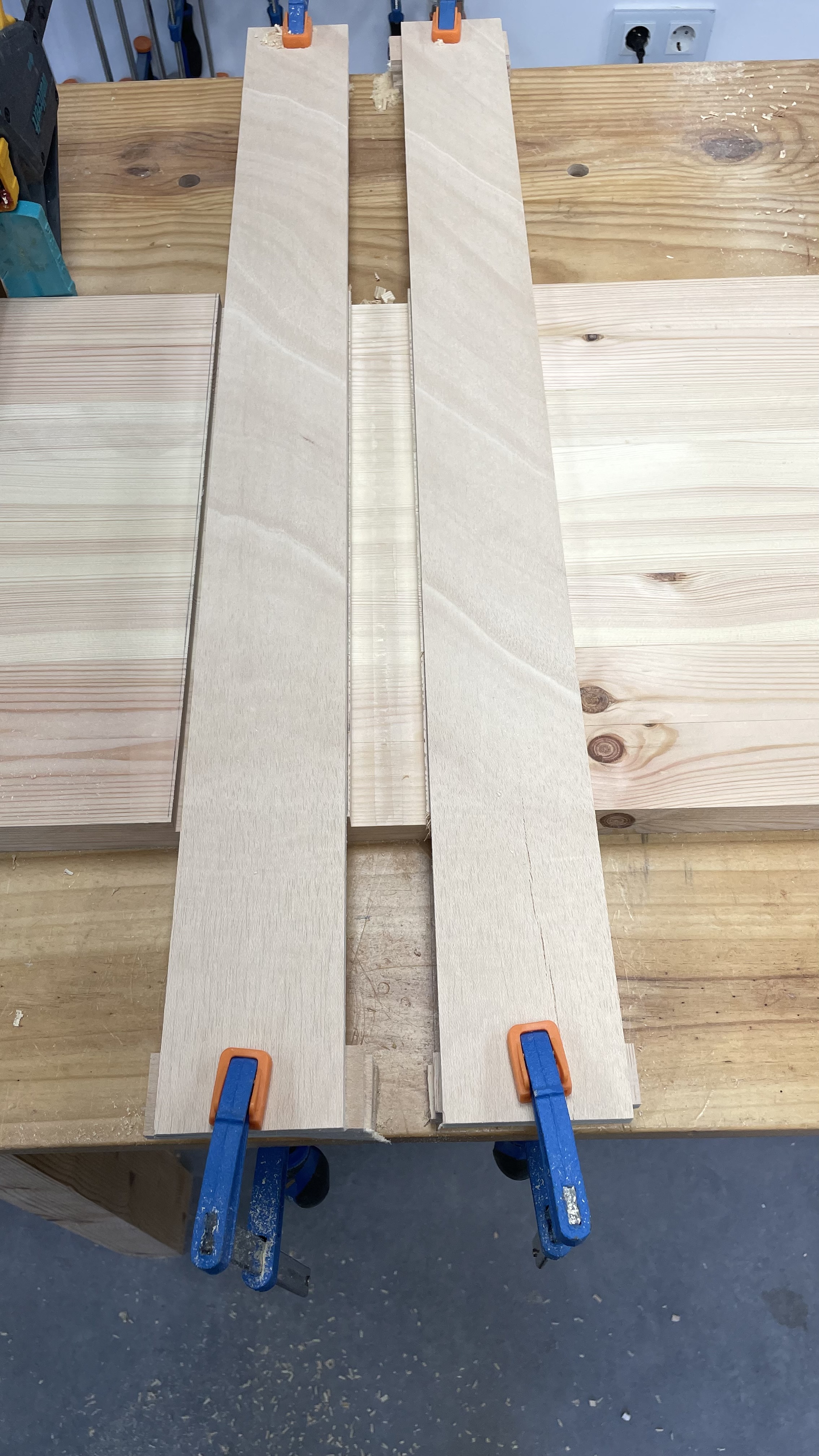 Un ejemplo de uso, un cajeado en unos listones, todos de una vez: