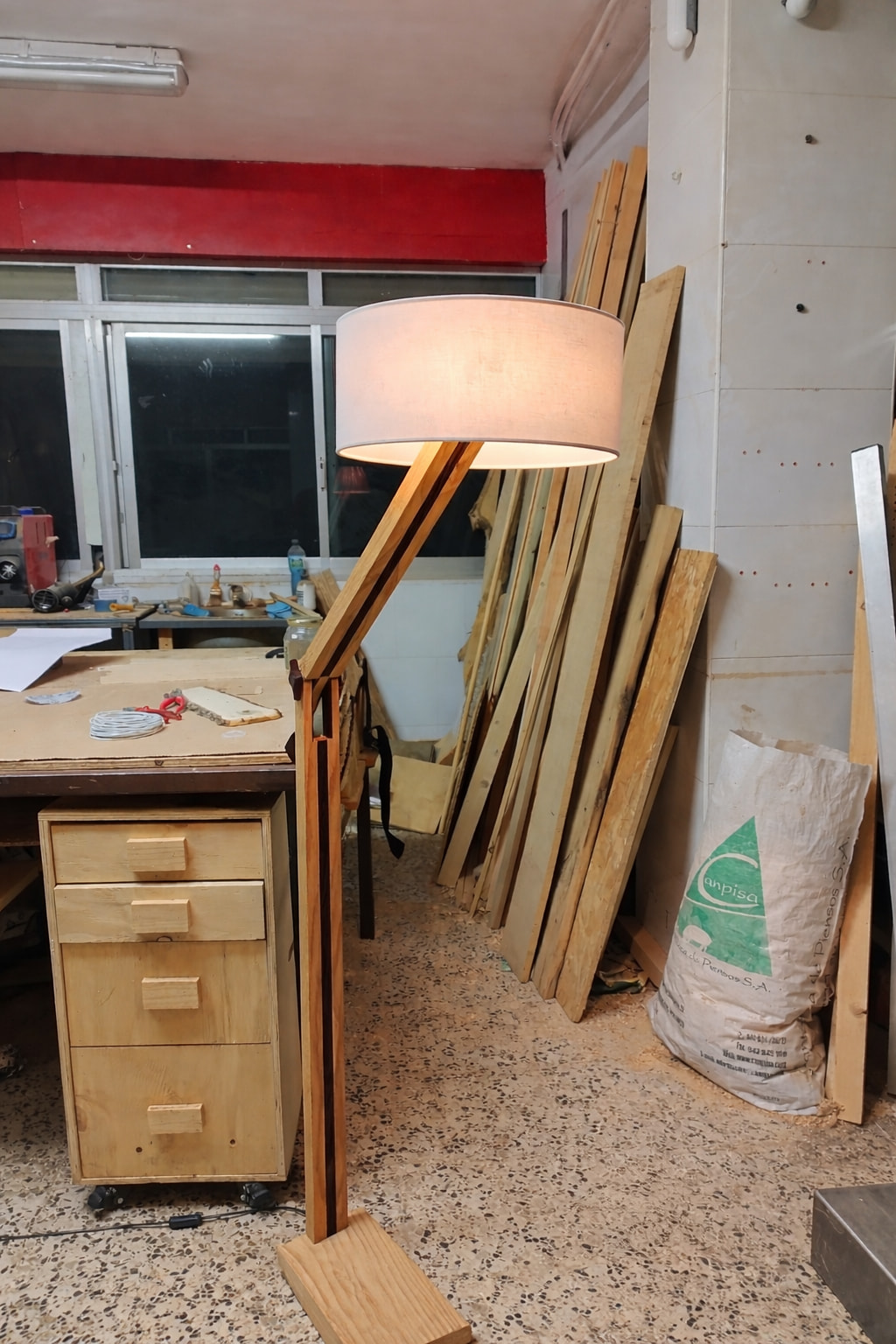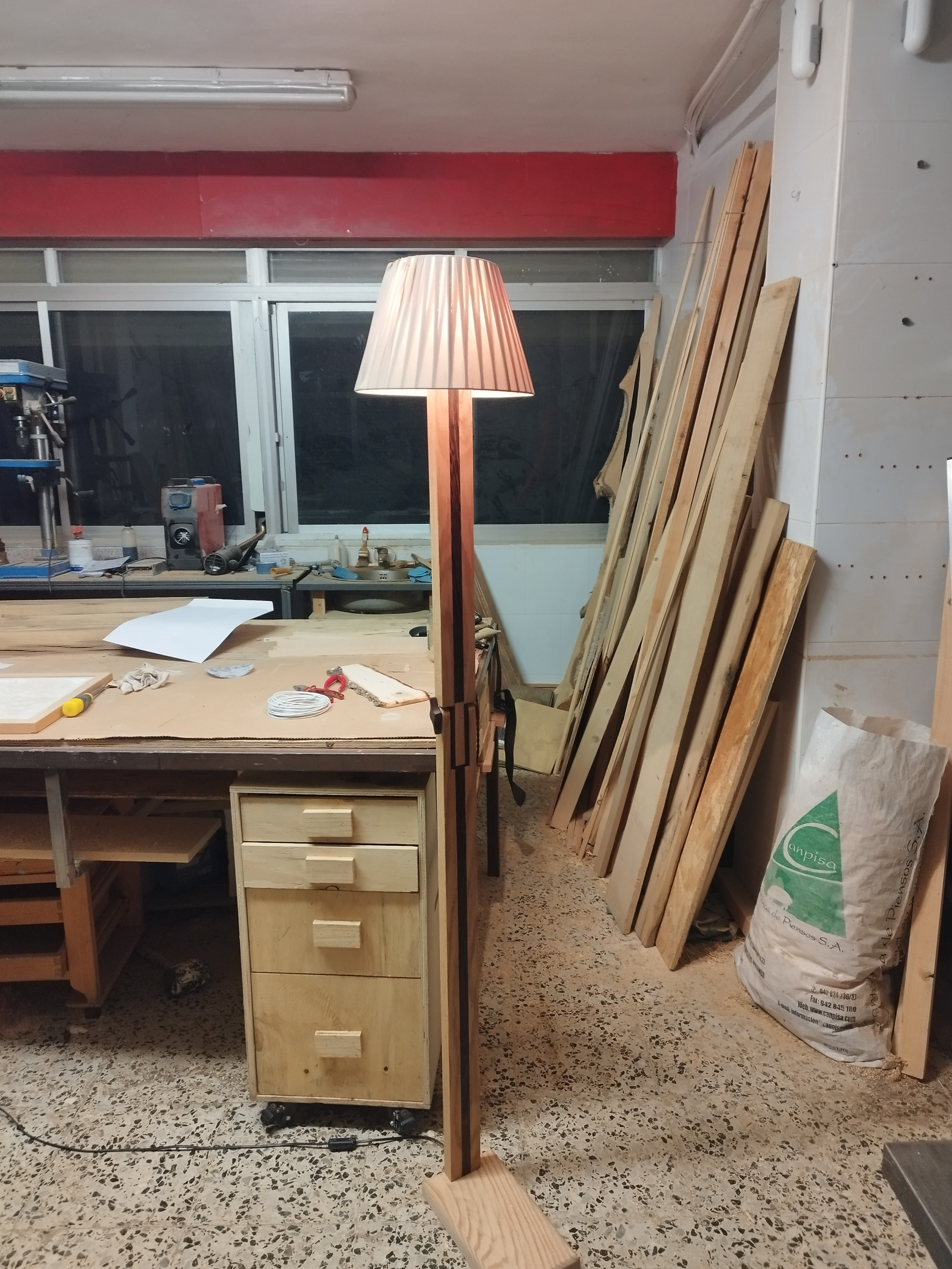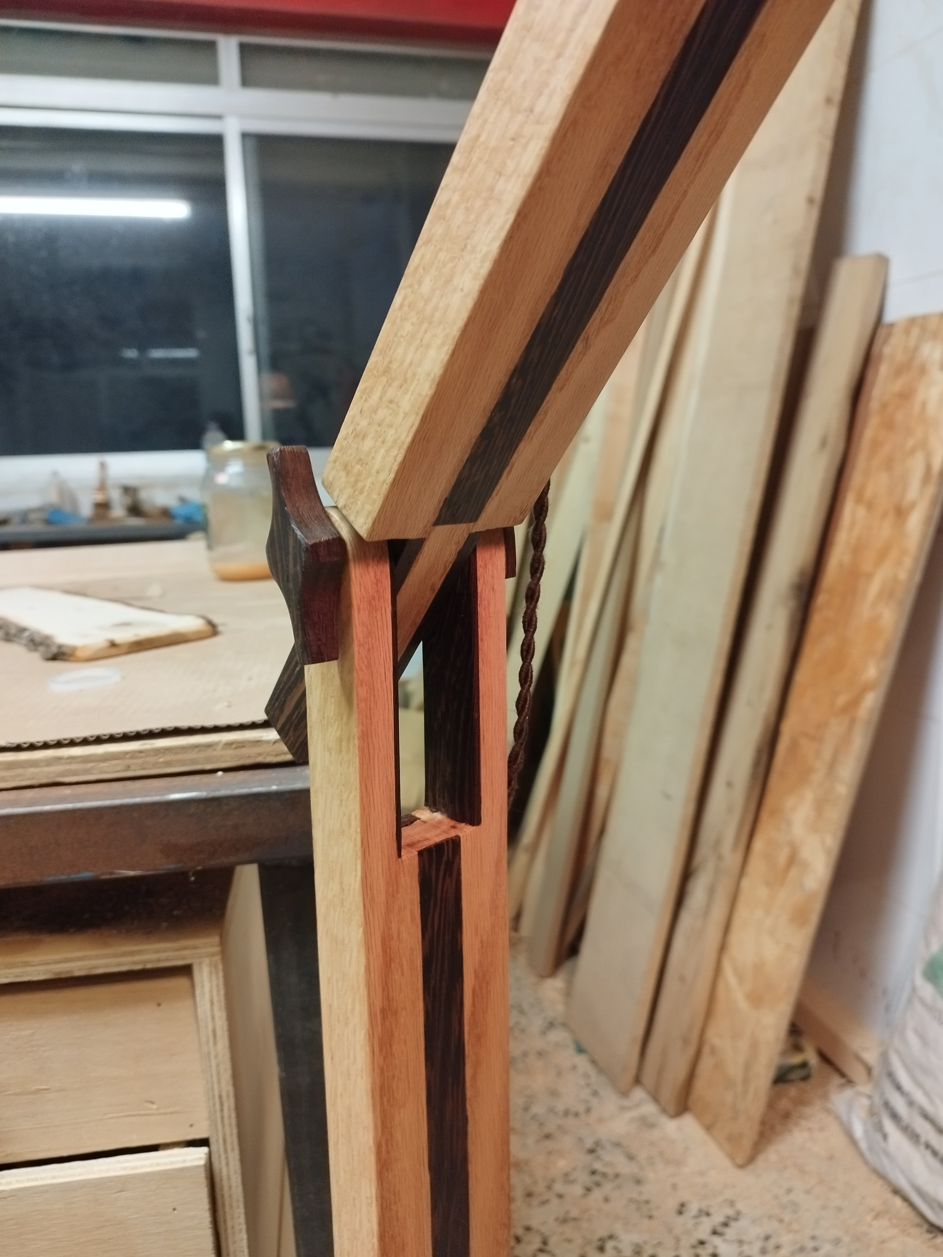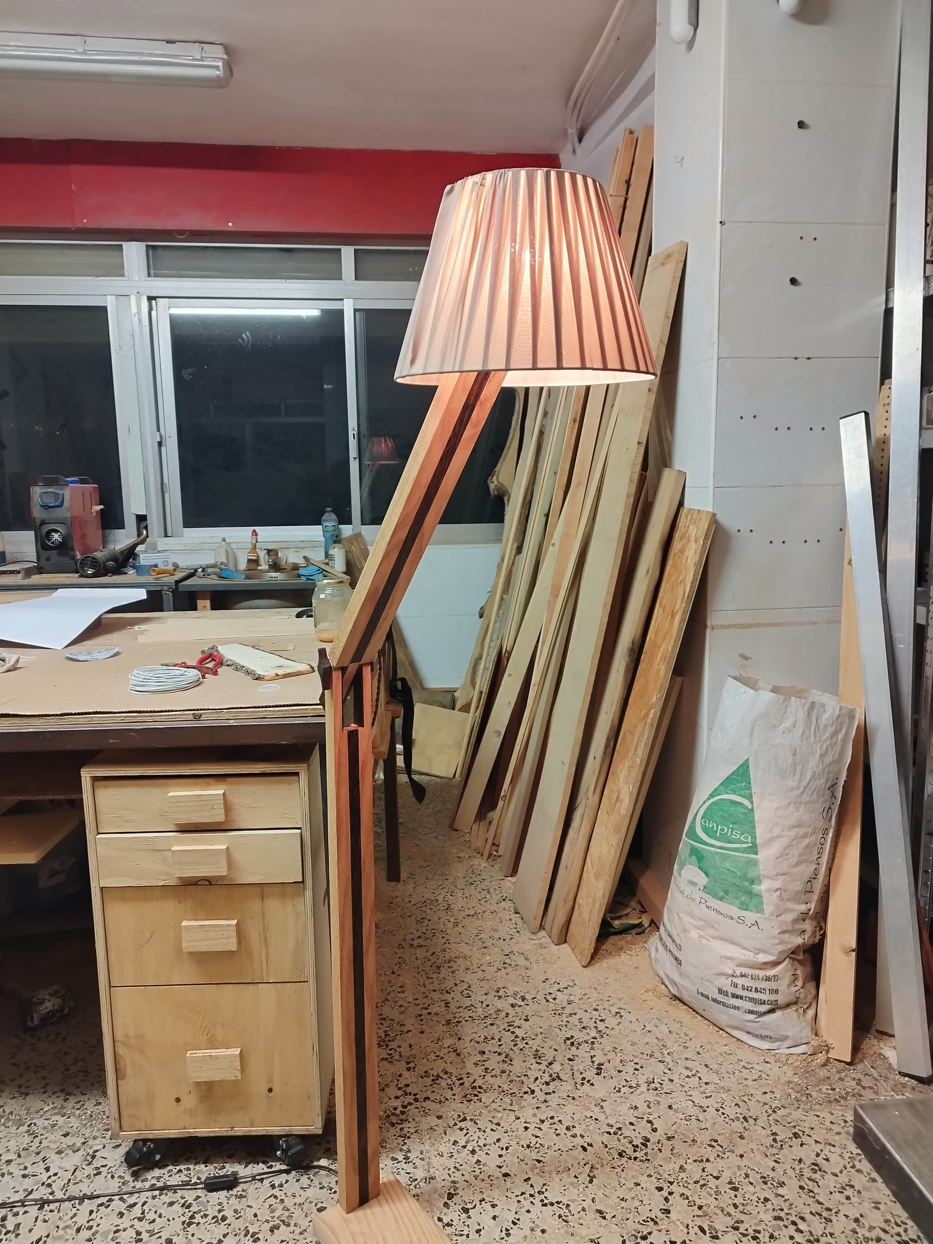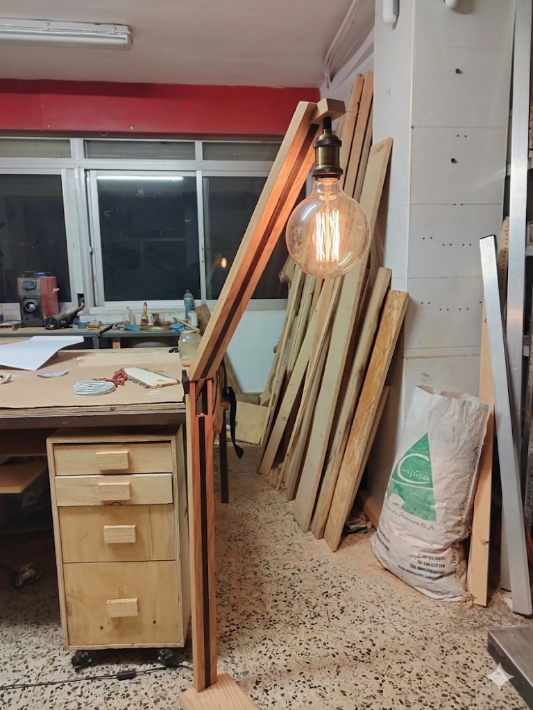 Bueno, la parte de carpintería en sí me gusta mucho, los contrastes y la articulación, pero la tulipa no me convence, a ver qué os parece y que pensáis que puede quedar bien, o igual pensáis que queda bien así y soy yo el que lo ve raro