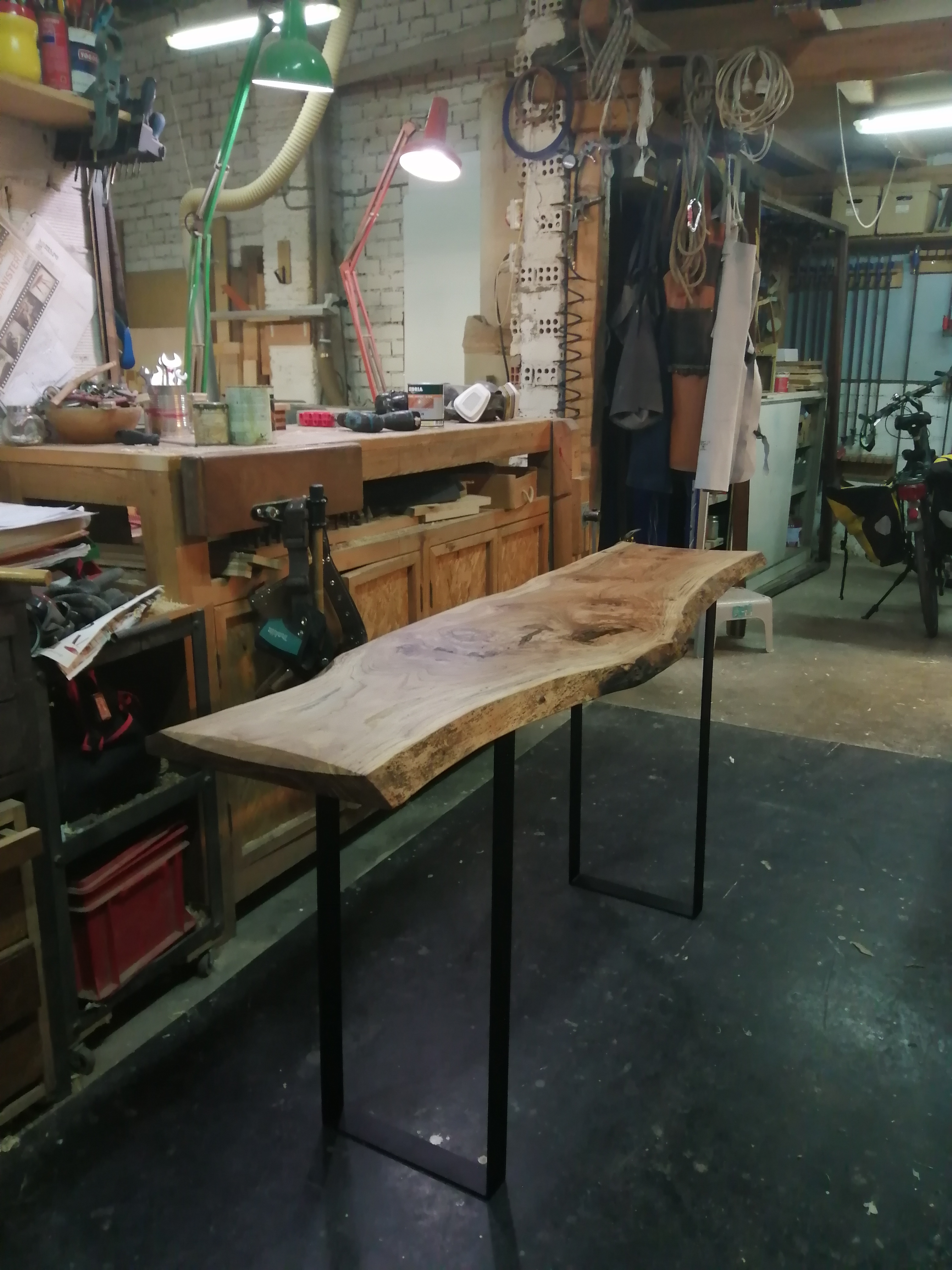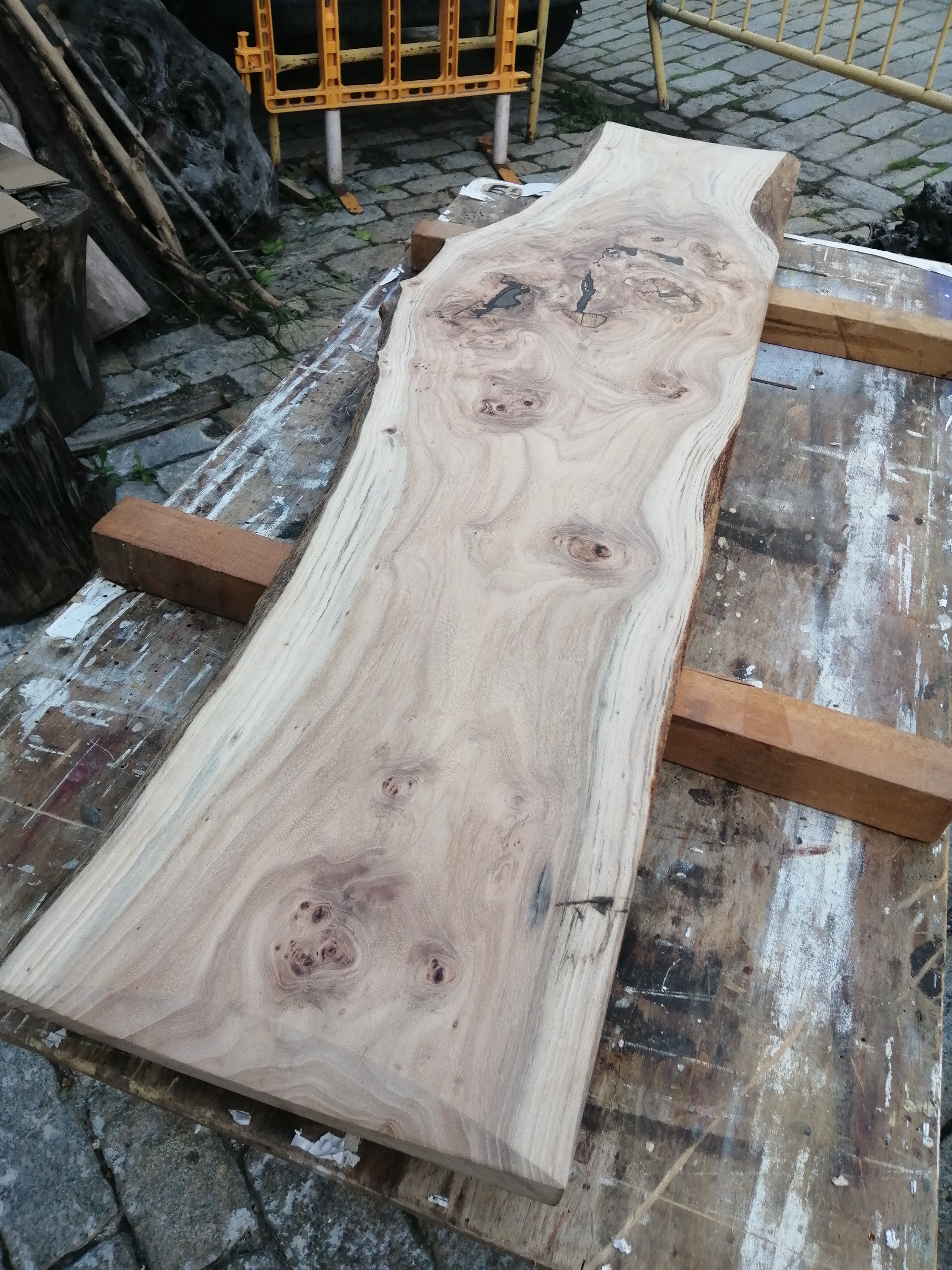 Son la 1:30, me he tomado un par de botellines y algo más, vuelvo a mi casa taller y me quedo mirando…la madera de olmo callejero que voy a aceitar mañana para una mesa que estoy acabando…