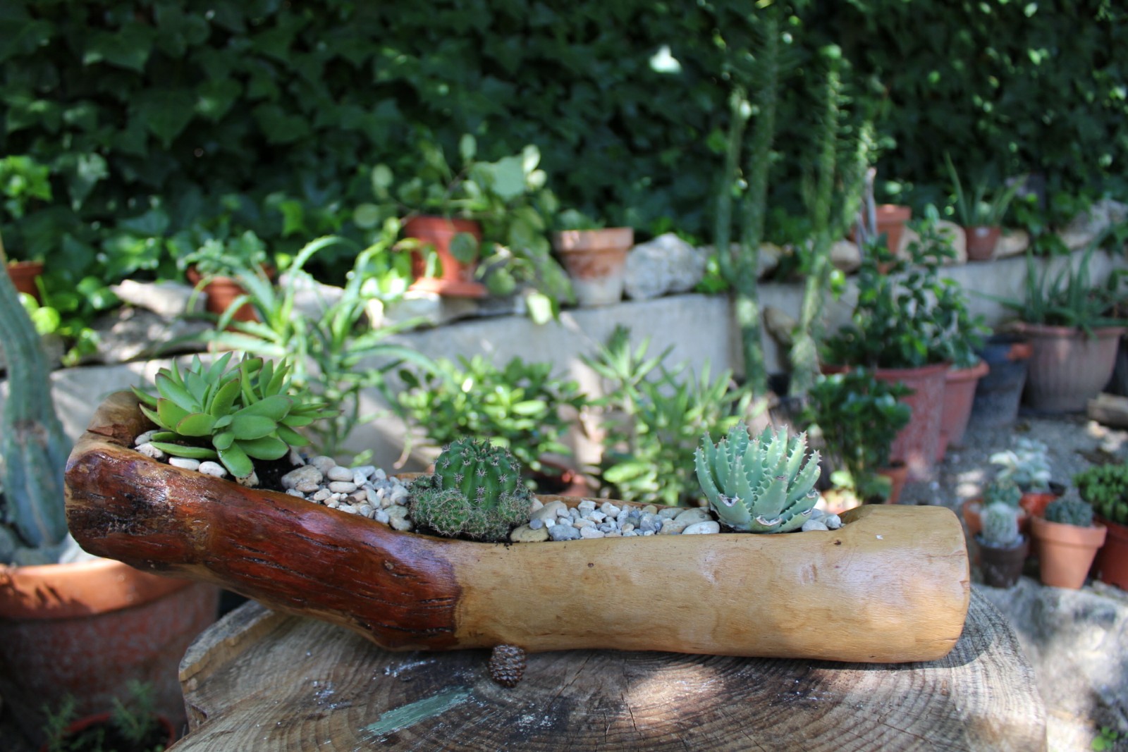 He hecho varios maceteros para ir probando como bien dijo antonioyanez, uno con corteza, otro sin corteza y uno de pino sin corteza, A estos les daré lasur esta tarde y terminados.