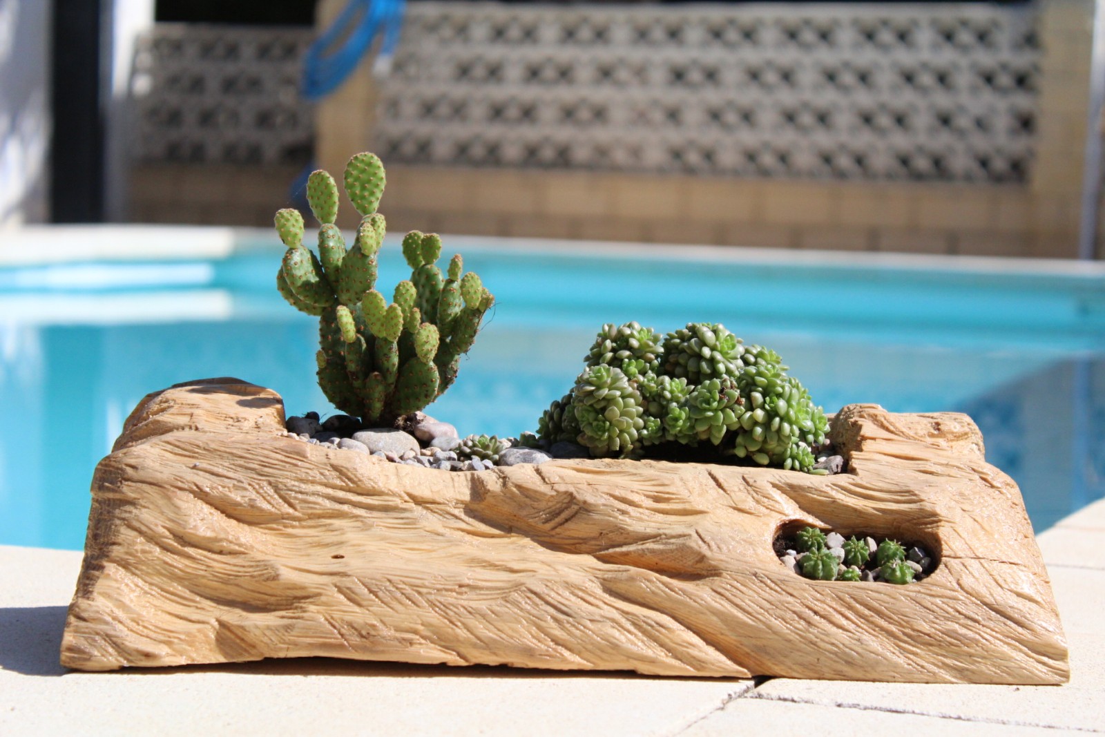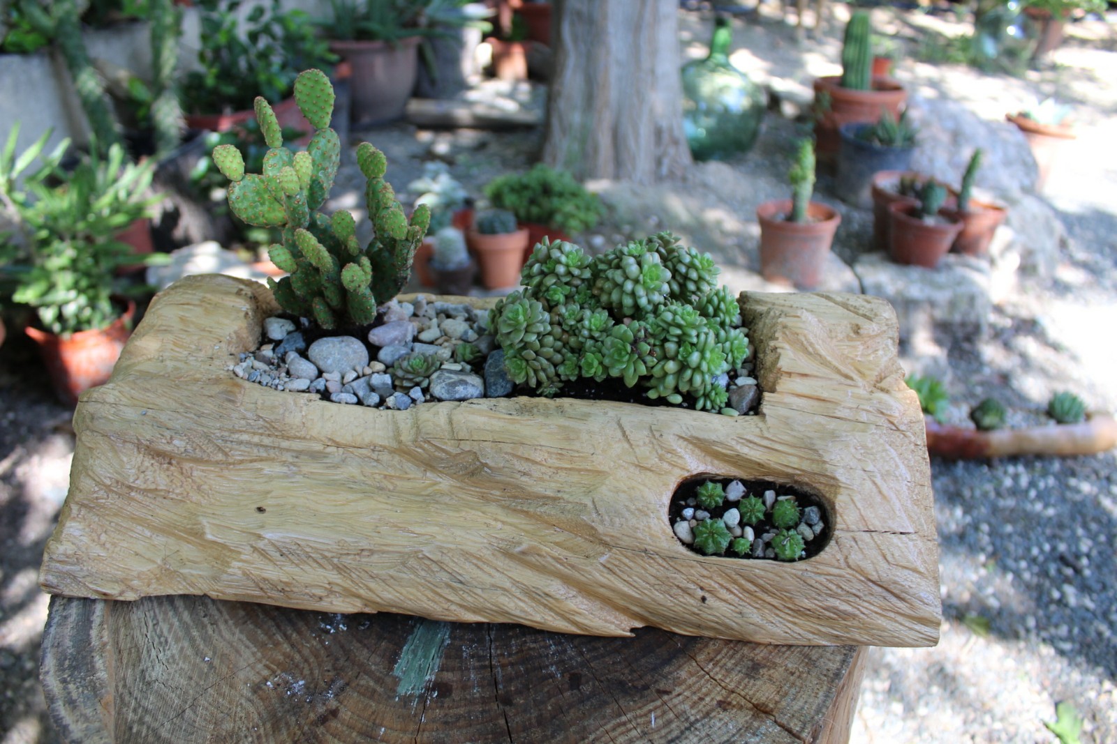 Ufff… el almentro justamente es uno de los arboles que mas tendencia a crecer revirado,con lo que hace que su madera sea mala de trabajar…yo cortaria los tochos y le pondria la maceta encima… el vaciar un tocho de almendro con la veta revirada puede ser entretenido por no decir cansino.