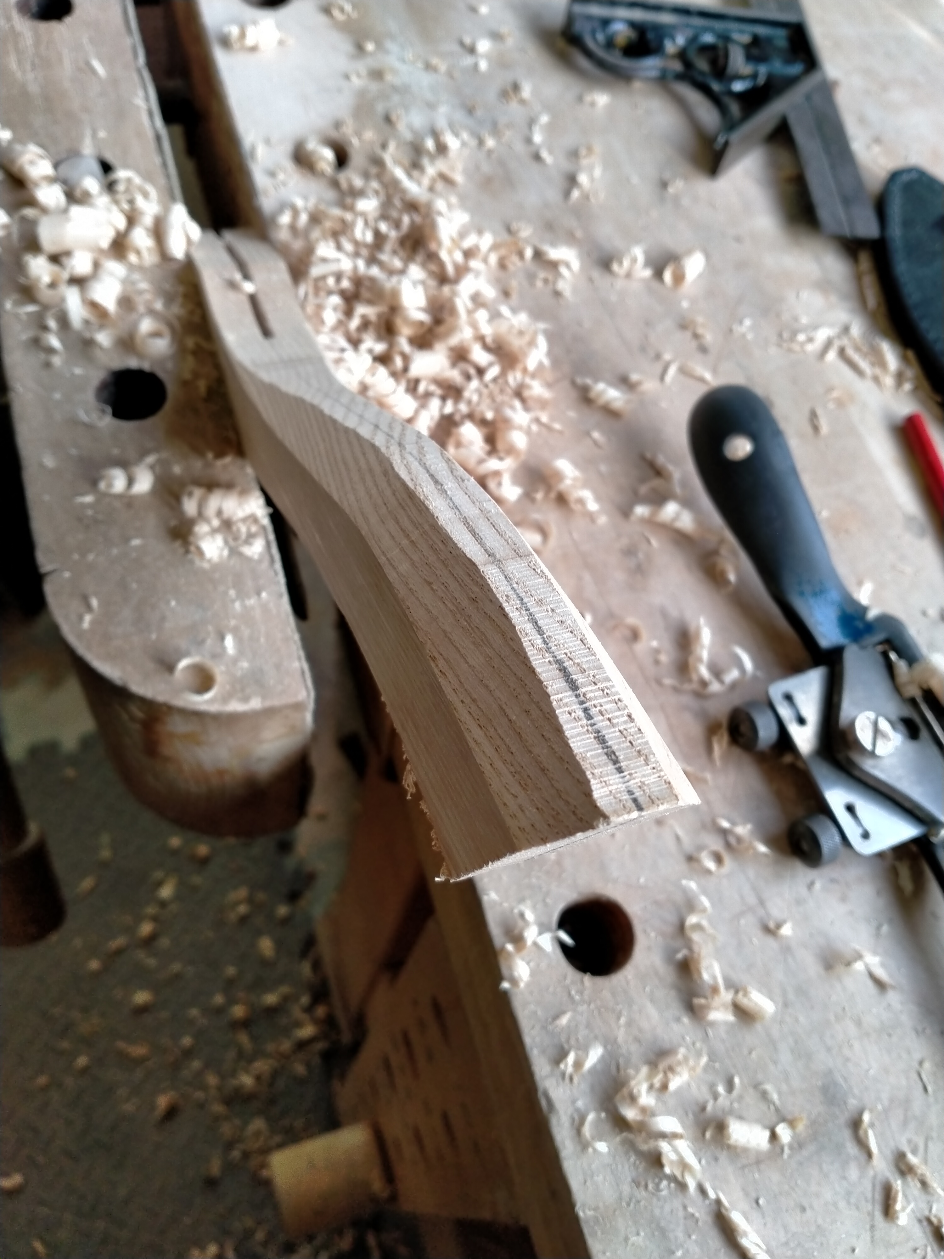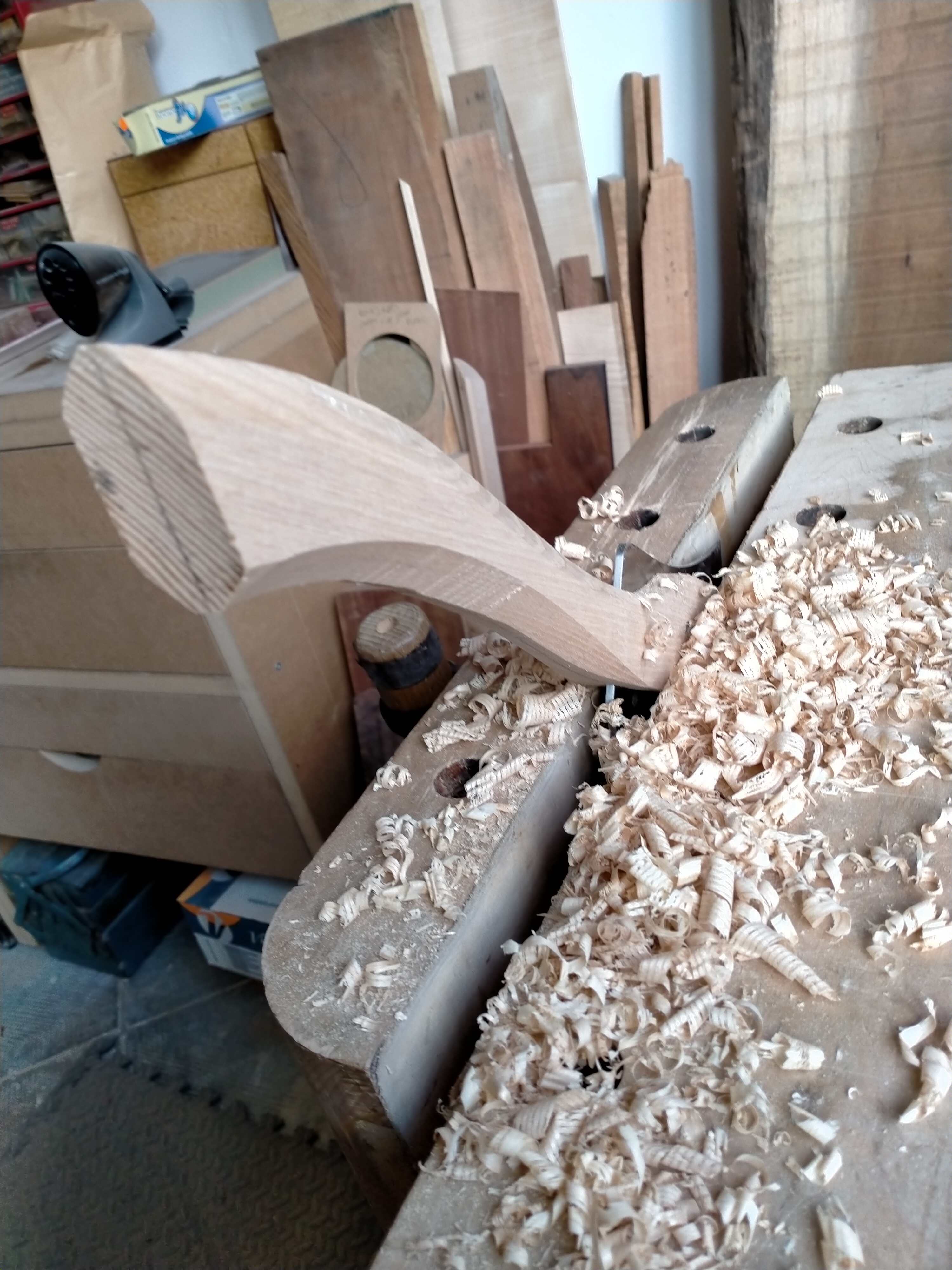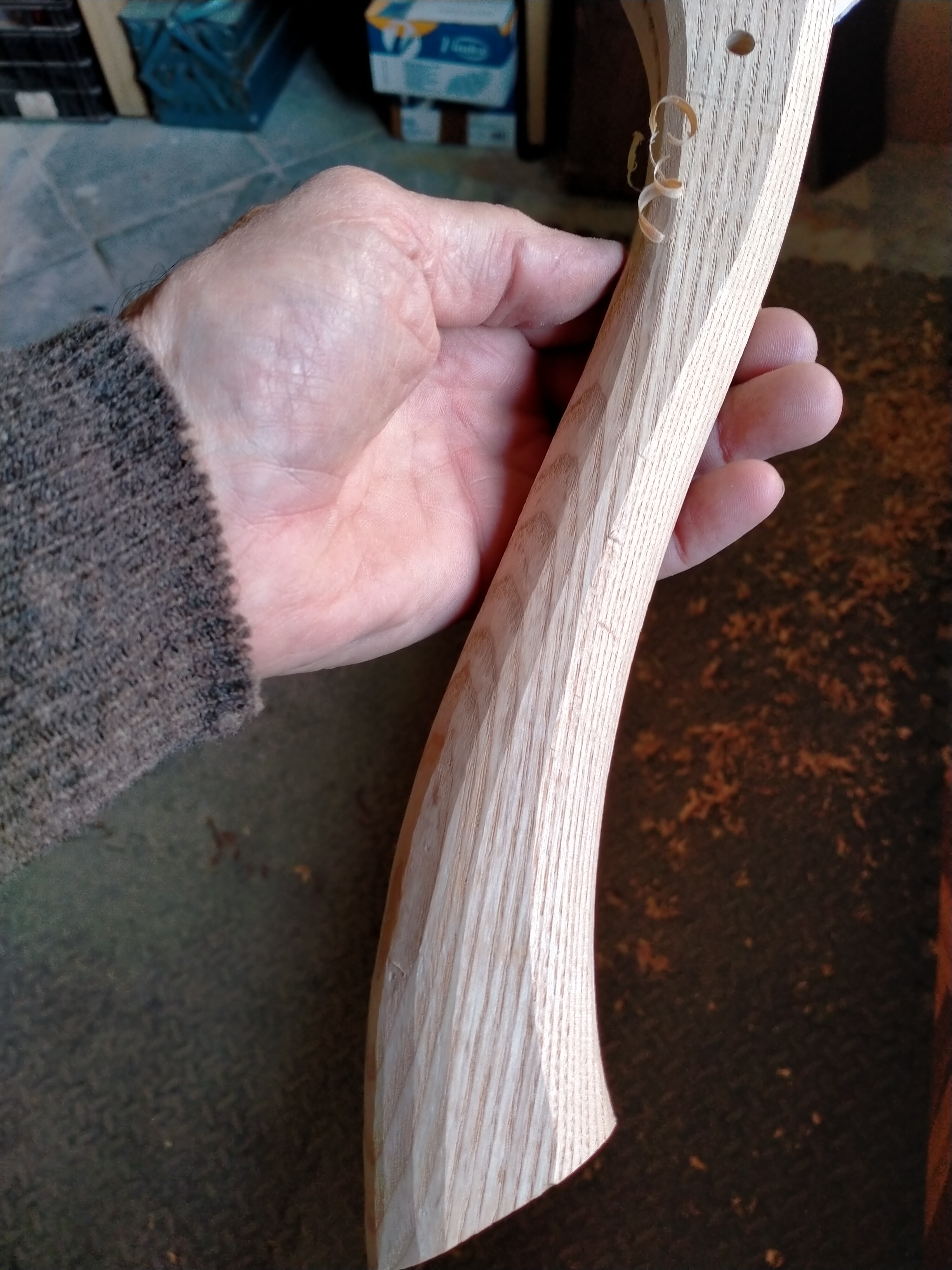 Un cambio de trabajo muy agradable, después de muebles rectilíneo de alta precisión, este mango de una hacha sculptural y libre de medidas, todo al ojo y pulso.