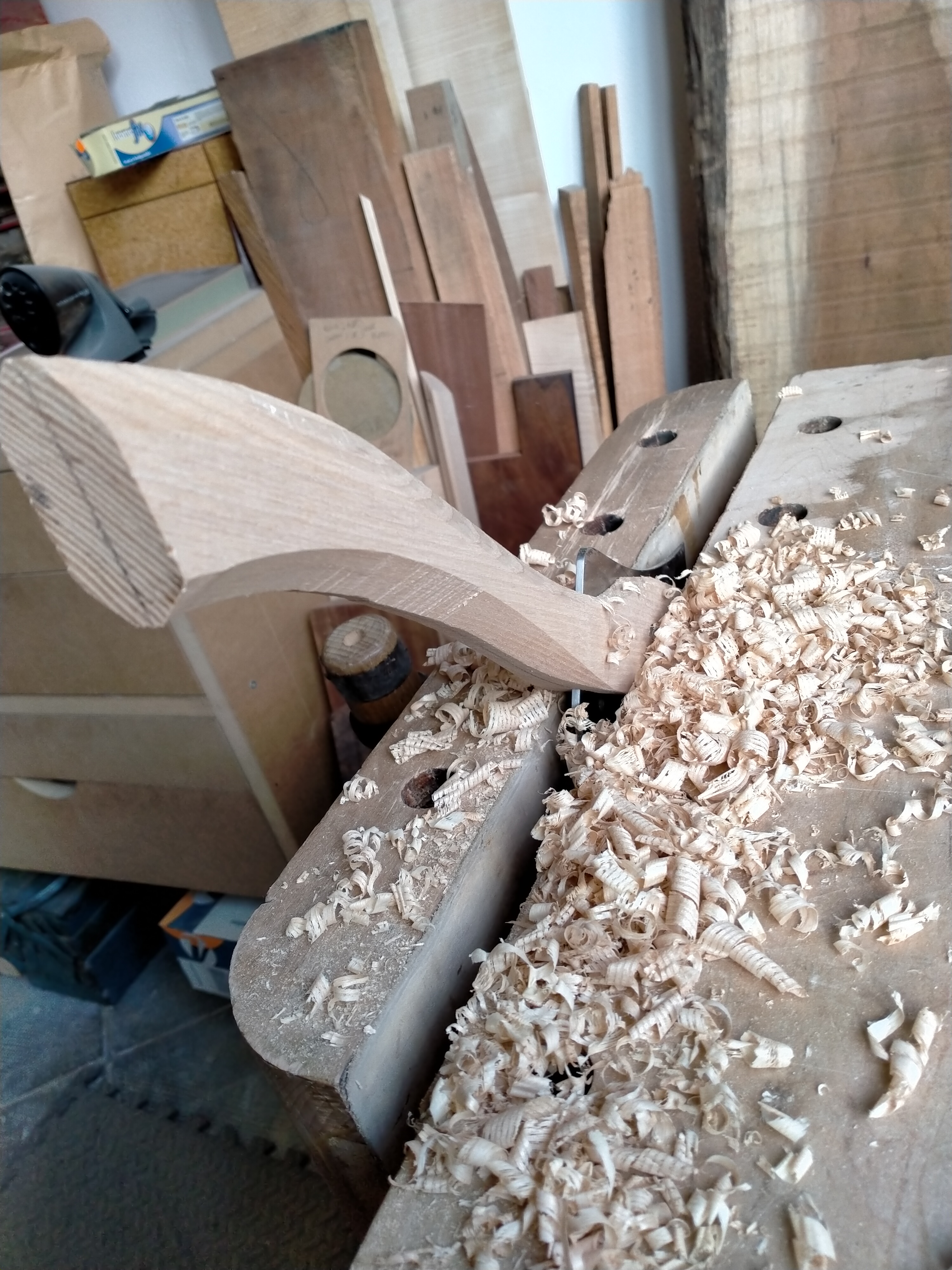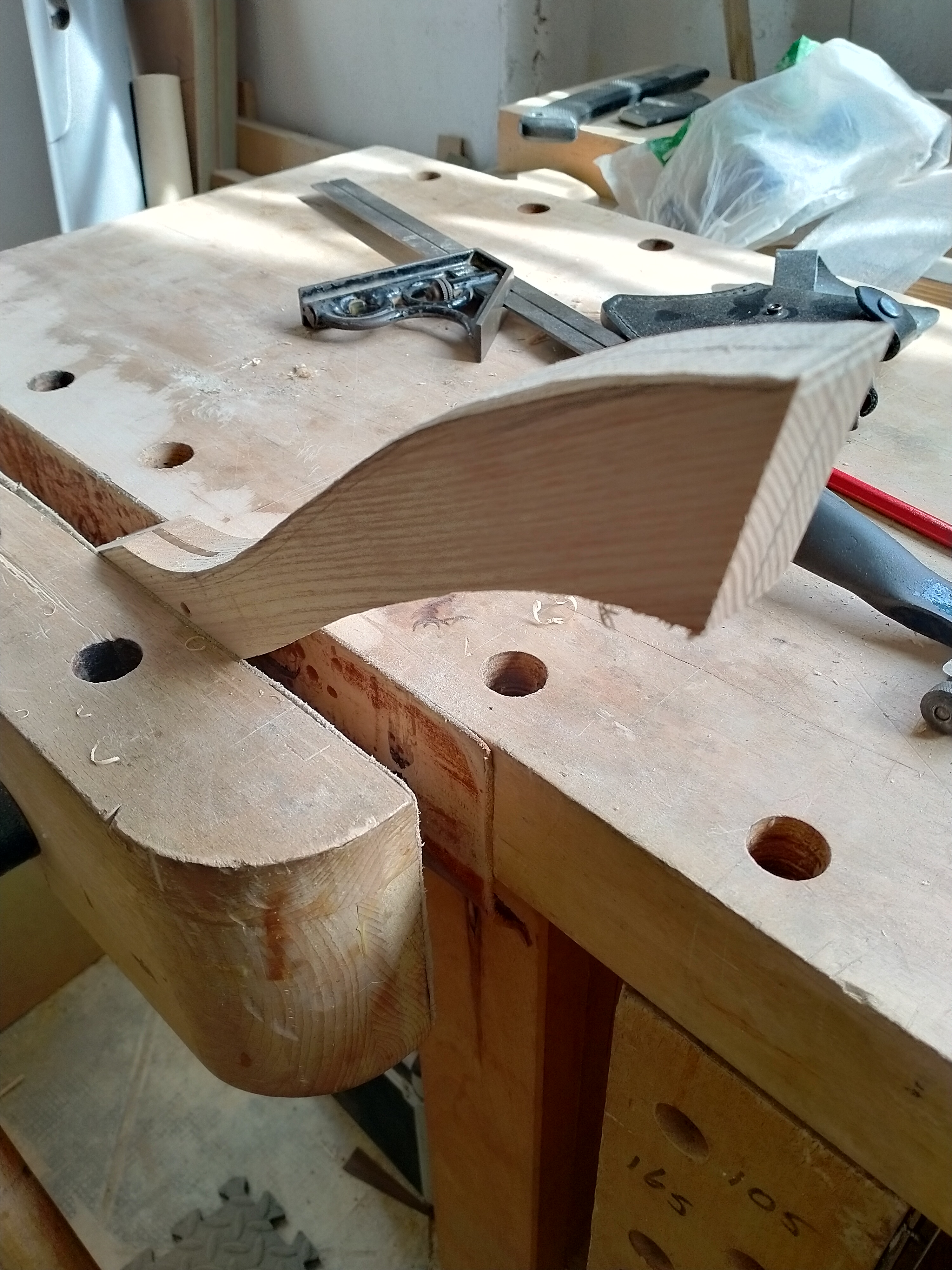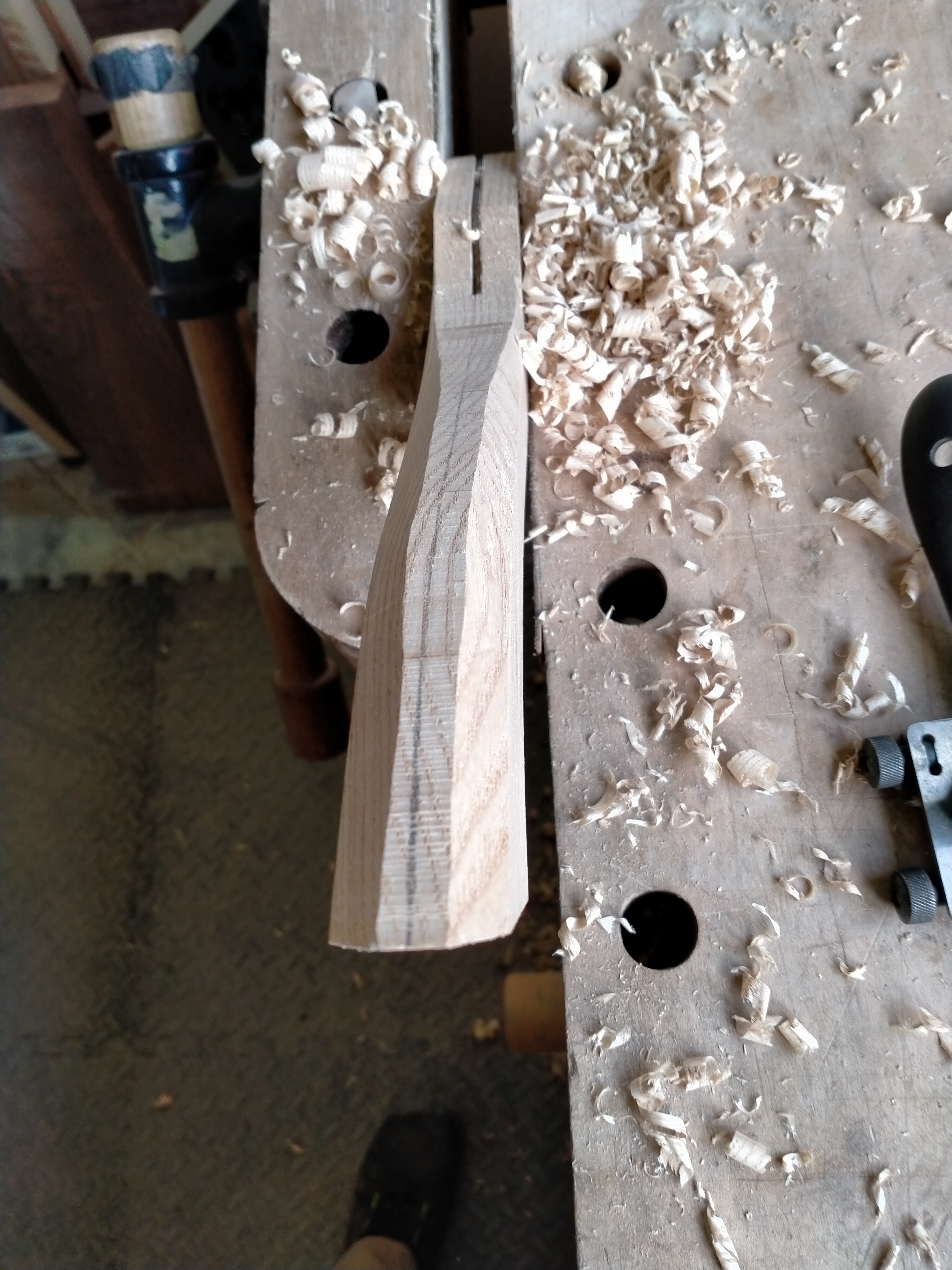 Un cambio de trabajo muy agradable, después de muebles rectilíneo de alta precisión, este mango de una hacha sculptural y libre de medidas, todo al ojo y pulso.