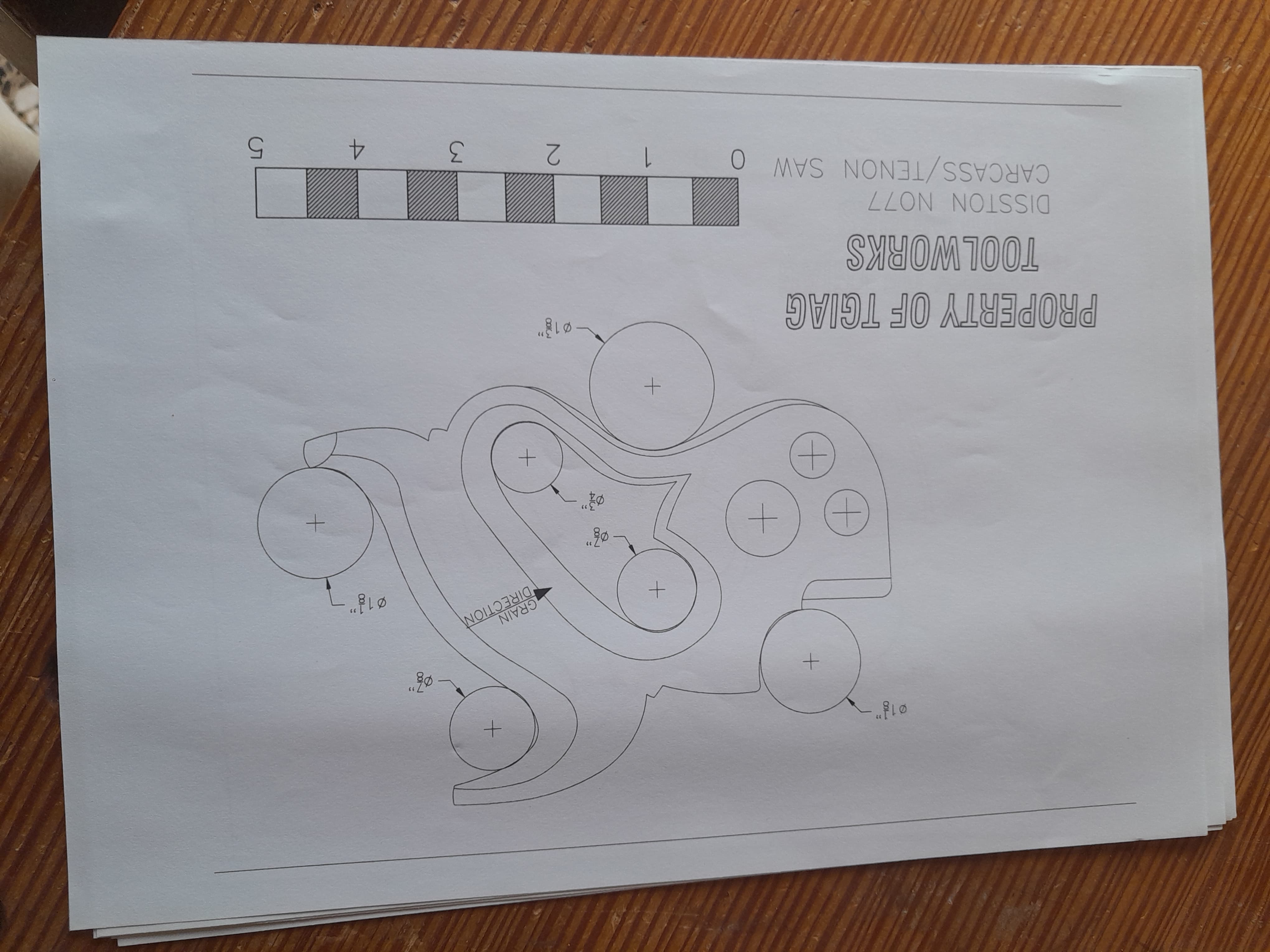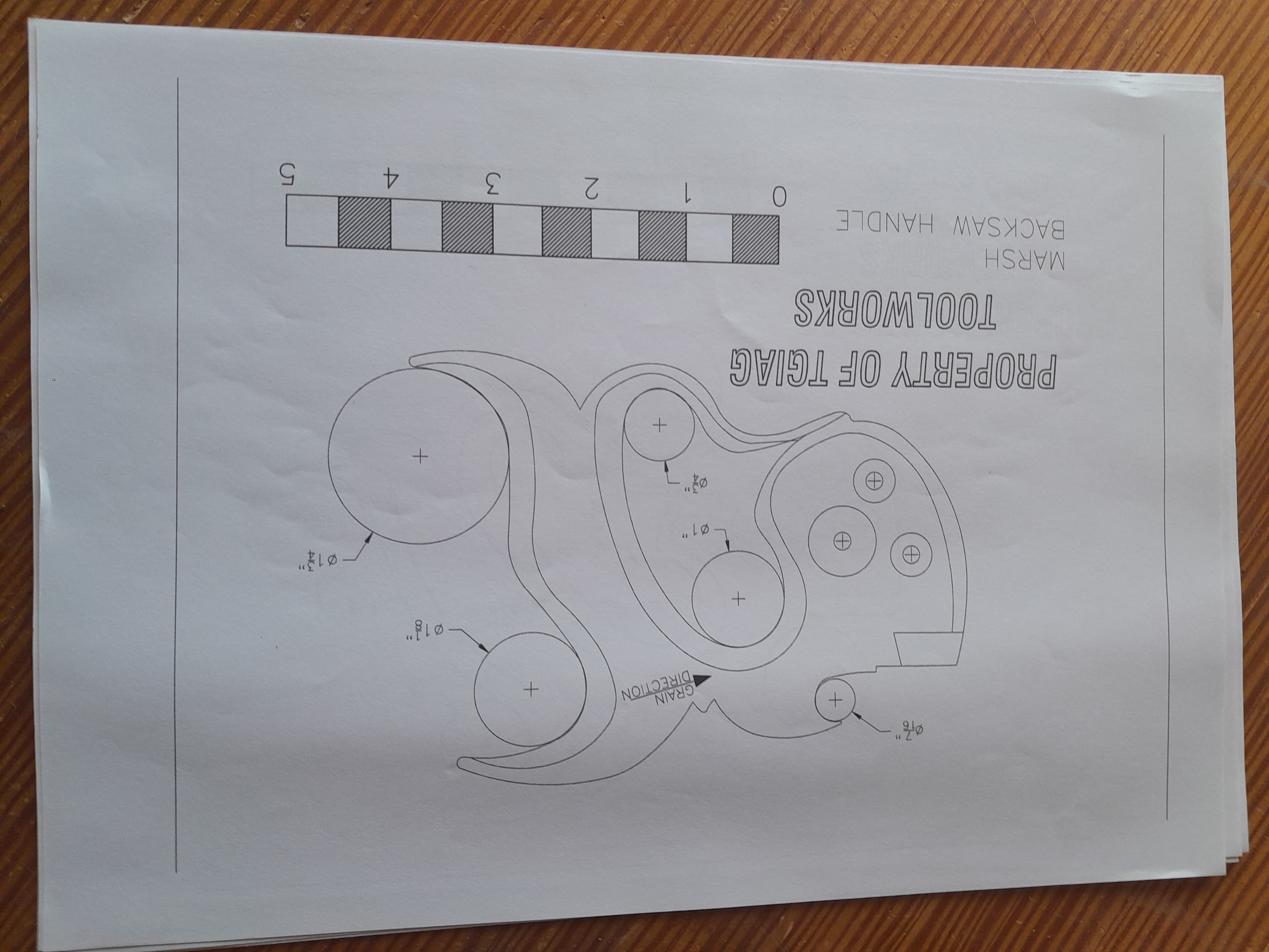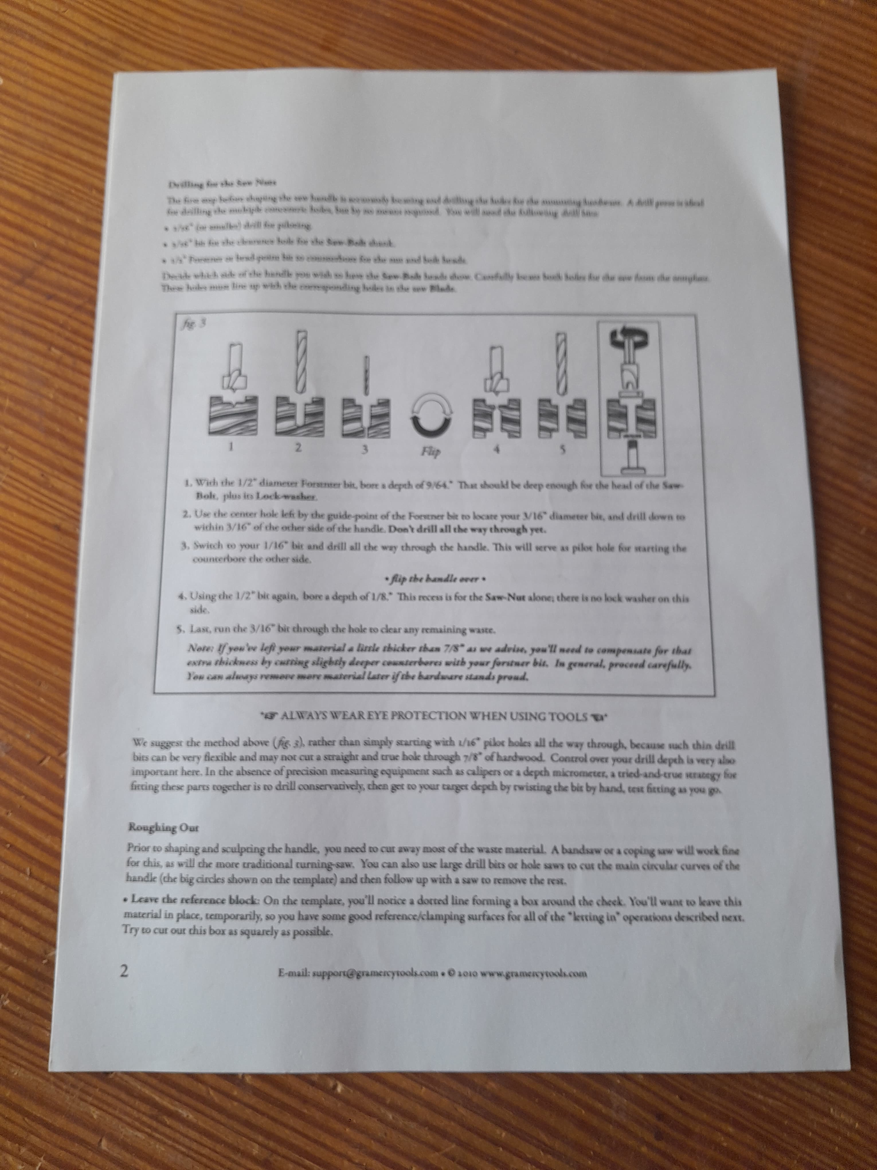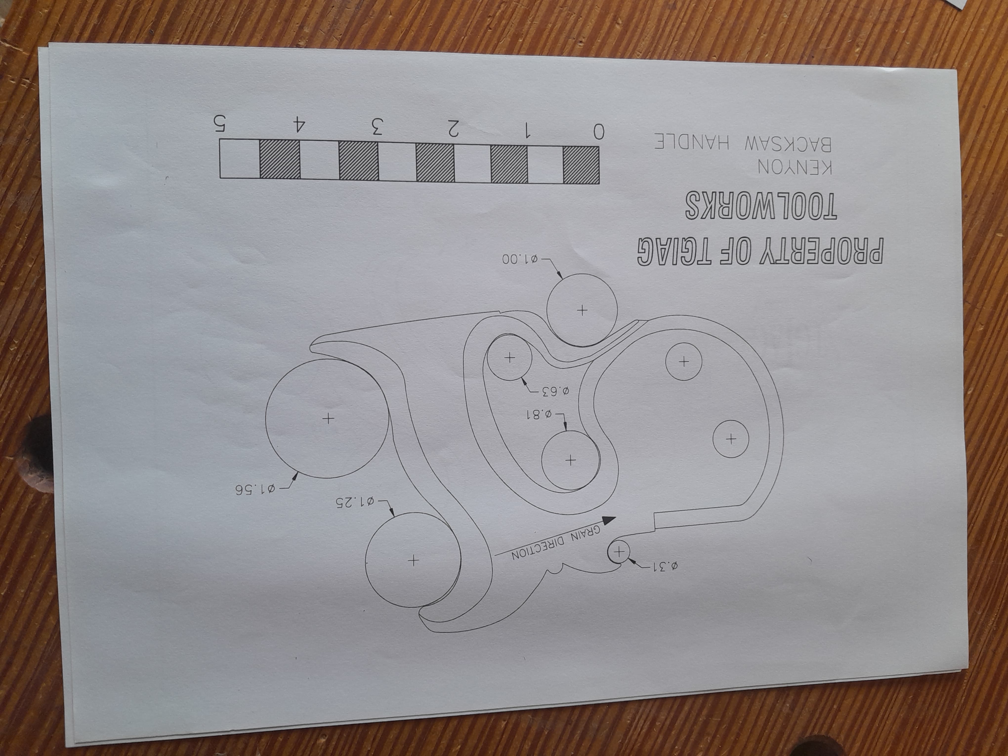 No hay nada mejor que un mango de serrucho se ajuste al tamaño de tu mano, por eso mismo me dispuse a fabricarme el mio y no es complicado hacerlo al disponer de plantillas. Lo primero es seleccionar la pieza de madera con la veta en la orientación correcta, la plantilla tiene una línea que indica en que dirección debe orientarse la veta de la madera, se recorta la plantilla y se pega a la pieza con adhesivo en aerosol. El la propia plantilla se muestra donde hay que hacer los taladros en las zonas curvas, yo los hago con broca forstner aunque también podría ser con broca de pala.