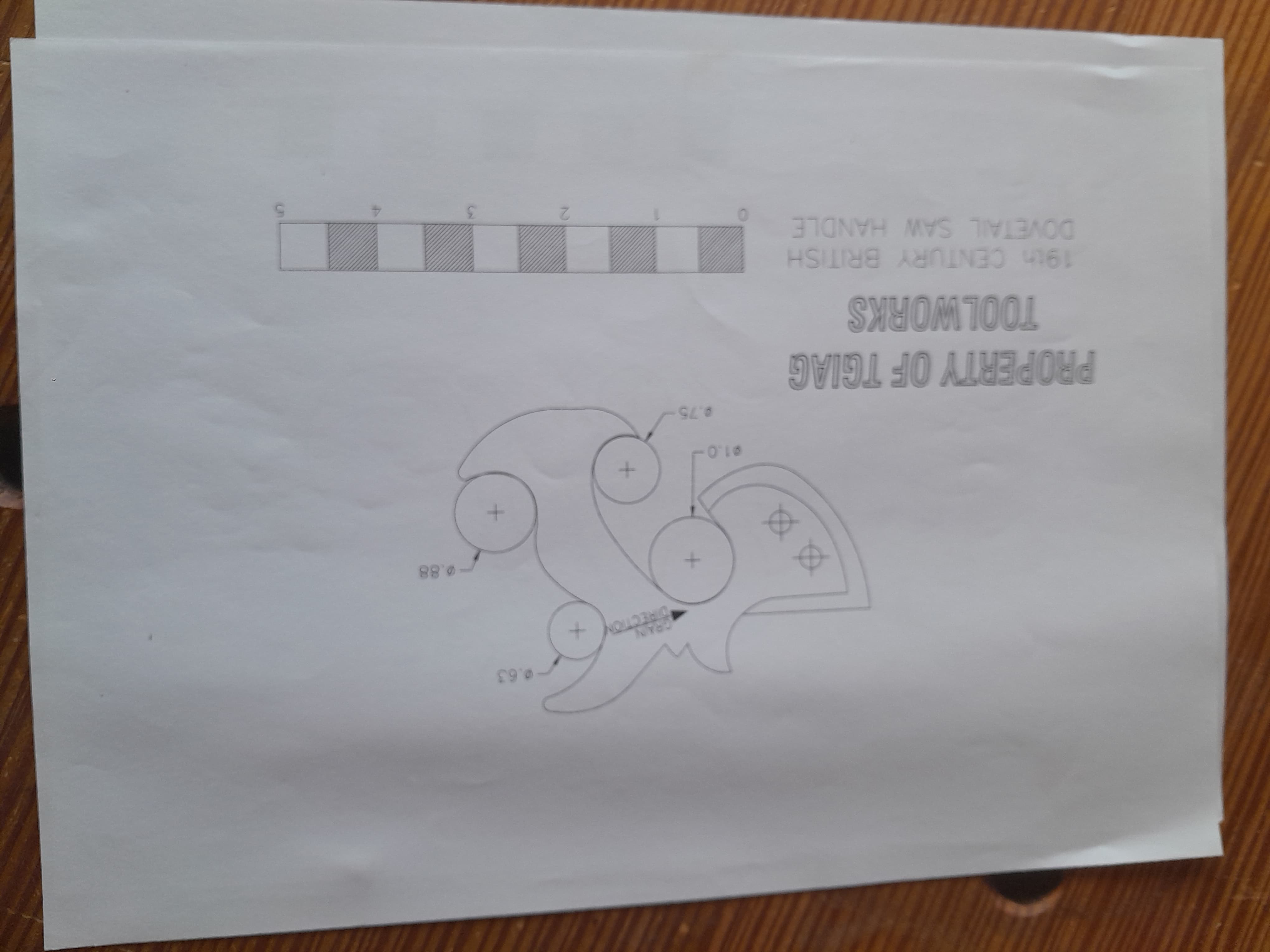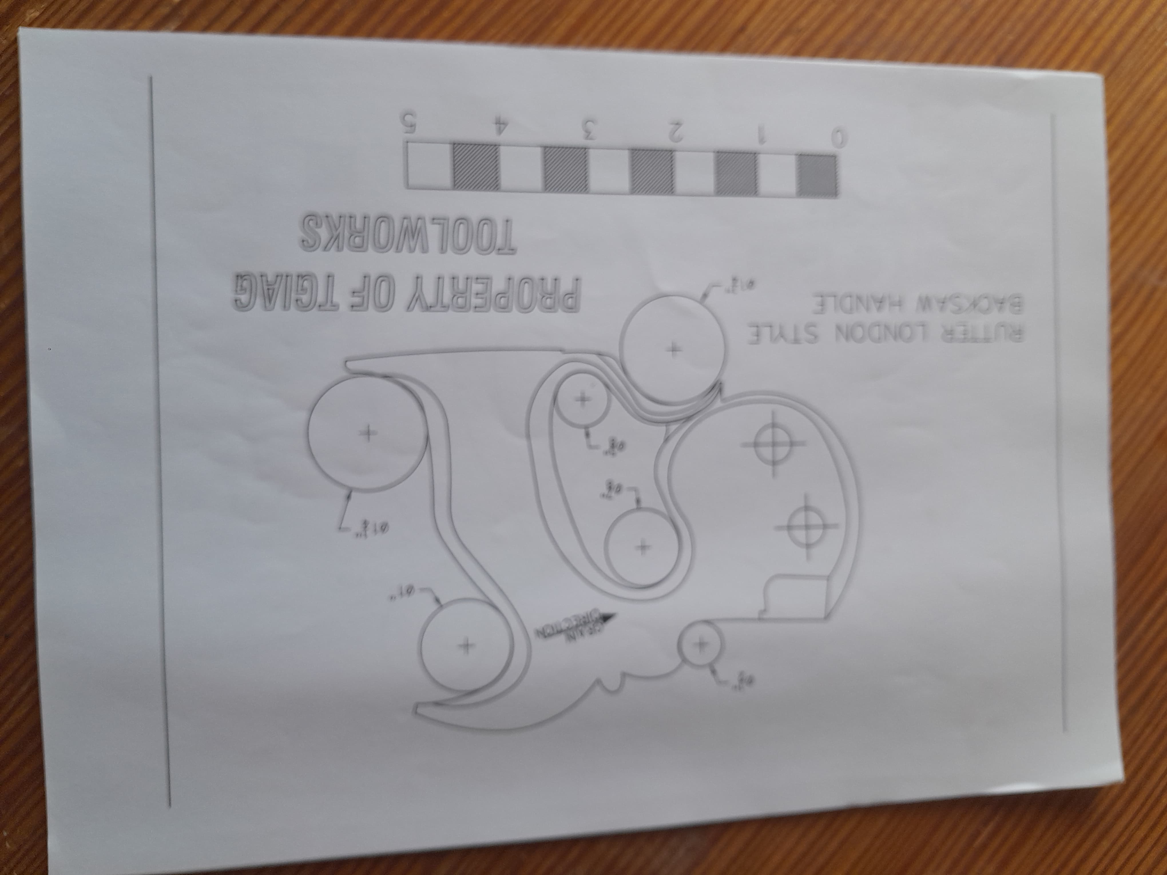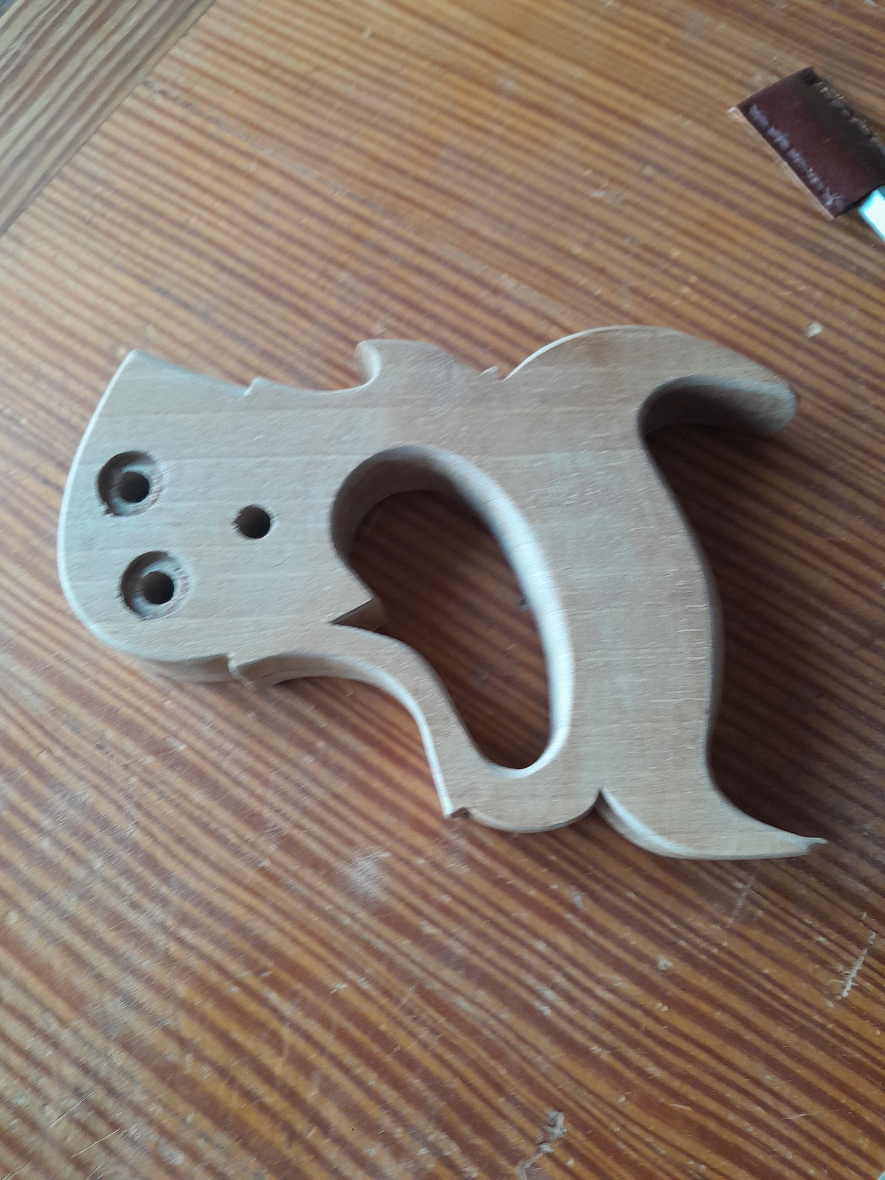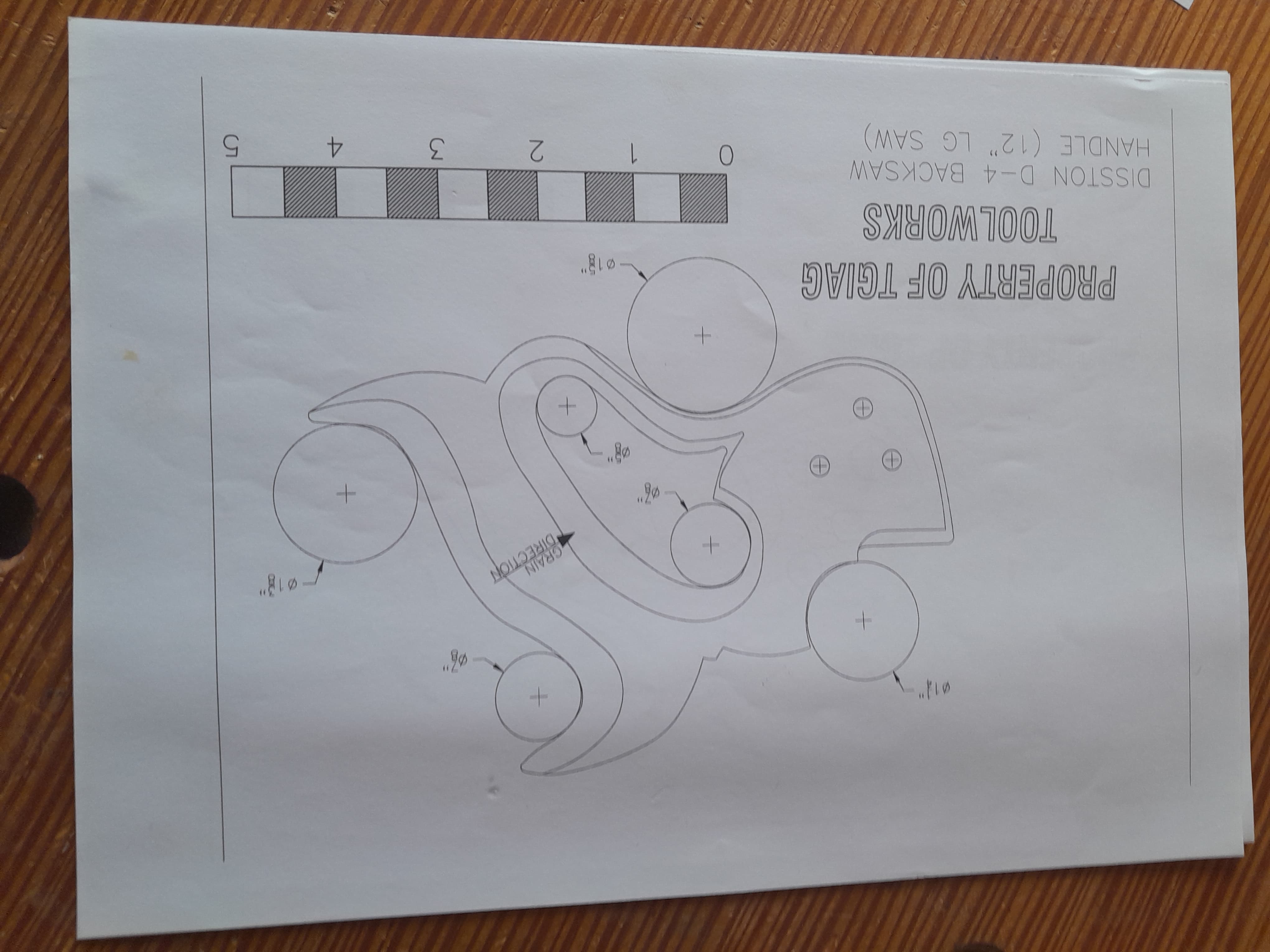 No hay nada mejor que un mango de serrucho se ajuste al tamaño de tu mano, por eso mismo me dispuse a fabricarme el mio y no es complicado hacerlo al disponer de plantillas. Lo primero es seleccionar la pieza de madera con la veta en la orientación correcta, la plantilla tiene una línea que indica en que dirección debe orientarse la veta de la madera, se recorta la plantilla y se pega a la pieza con adhesivo en aerosol. El la propia plantilla se muestra donde hay que hacer los taladros en las zonas curvas, yo los hago con broca forstner aunque también podría ser con broca de pala.