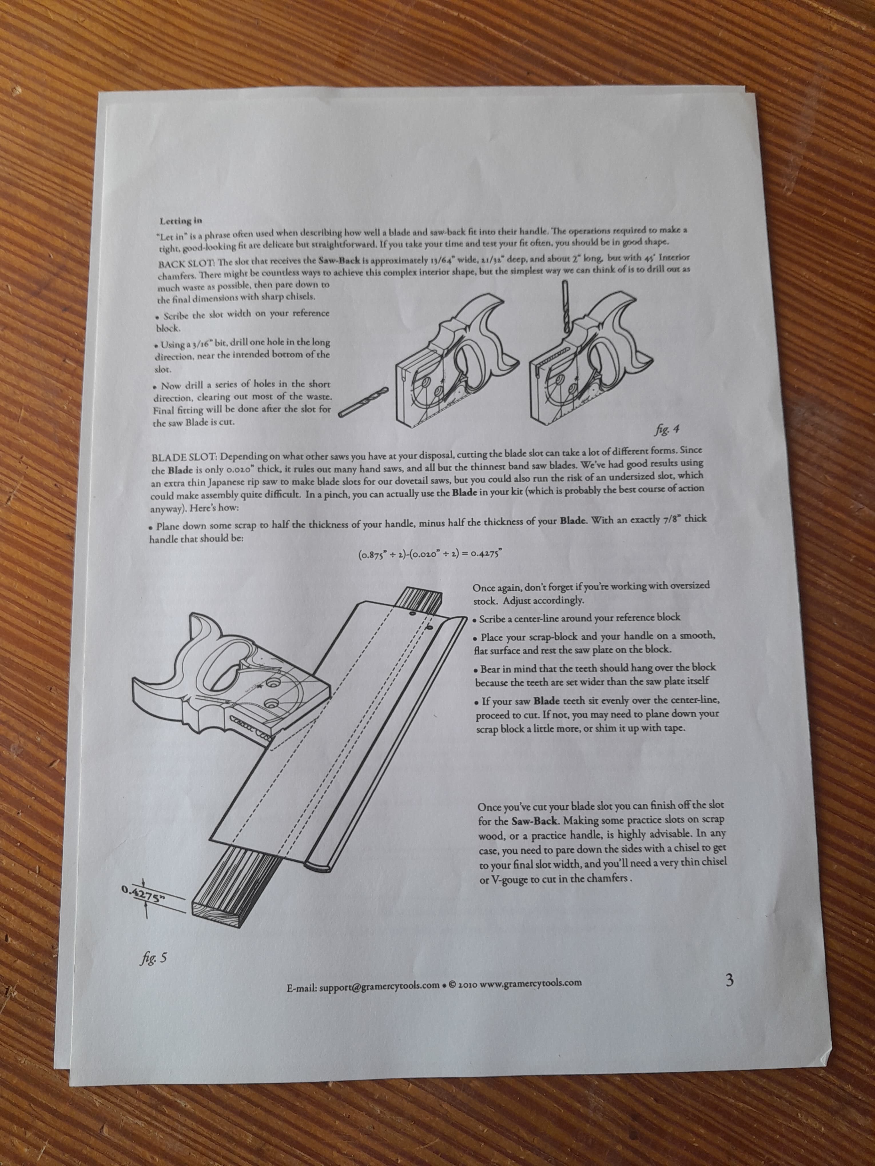 En la parte superior del mango hay que hacer un cajeado para que entre la costilla de latón gruesa, yo prefiero hacerlo con serrucho y formones aunque se puede hacer fresandolo o con broca. En todo este proceso voy probando como encaja la hoja para no pasarme y arriesgarme a que no quede sujeta con firmeza.