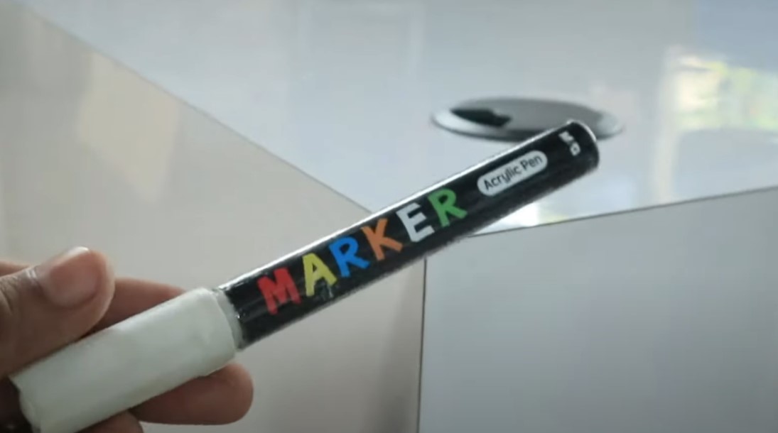Si lo quieres blanco los rotuladores permanentes van bien. Yo hice una ñapa en una nevera que tenía algún pelado pequeño y disimula bastante. Y lo puedes repasar de vez en cuando. Es permanente, pero uno eterno.