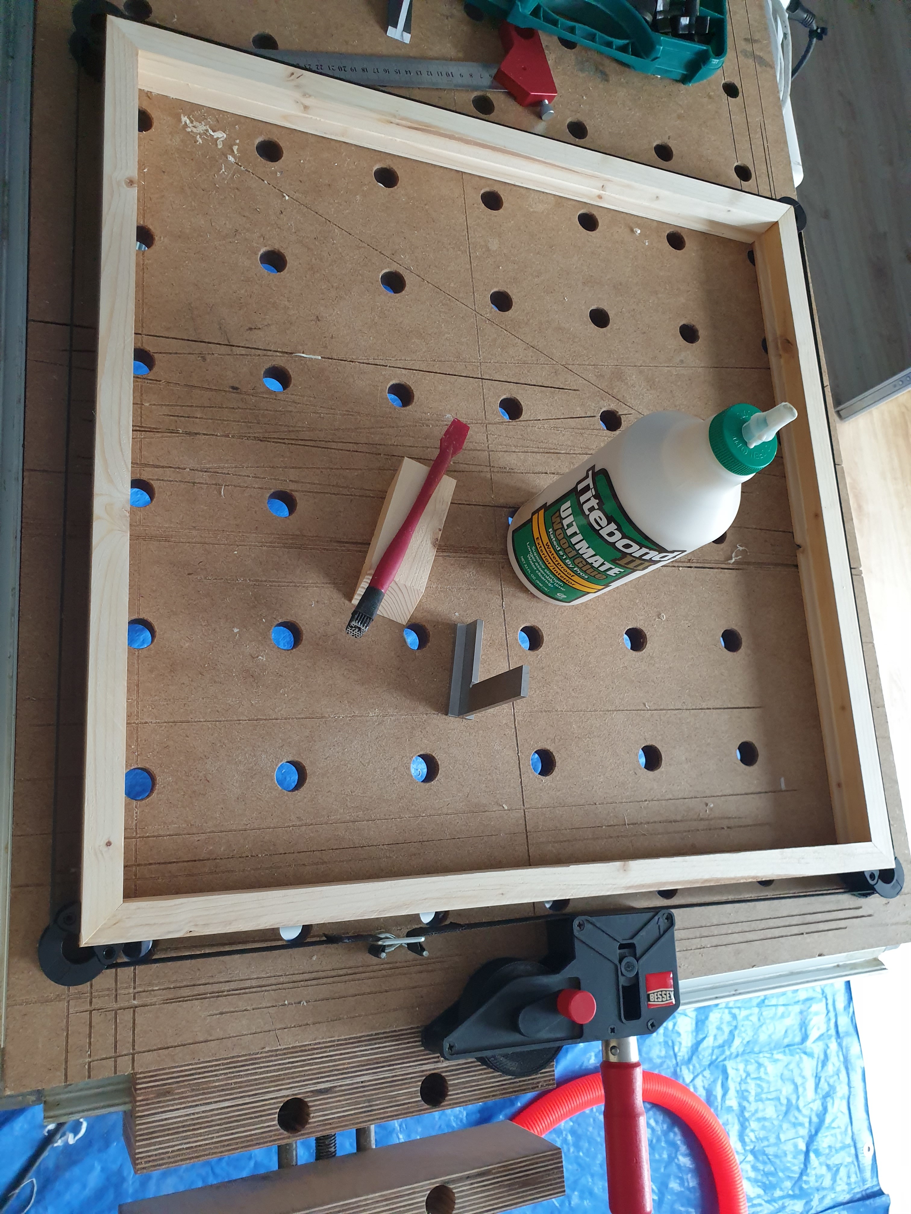 La idea es dejar el marco abierto por un lado y atornillarlo al techo con miniescuadras.