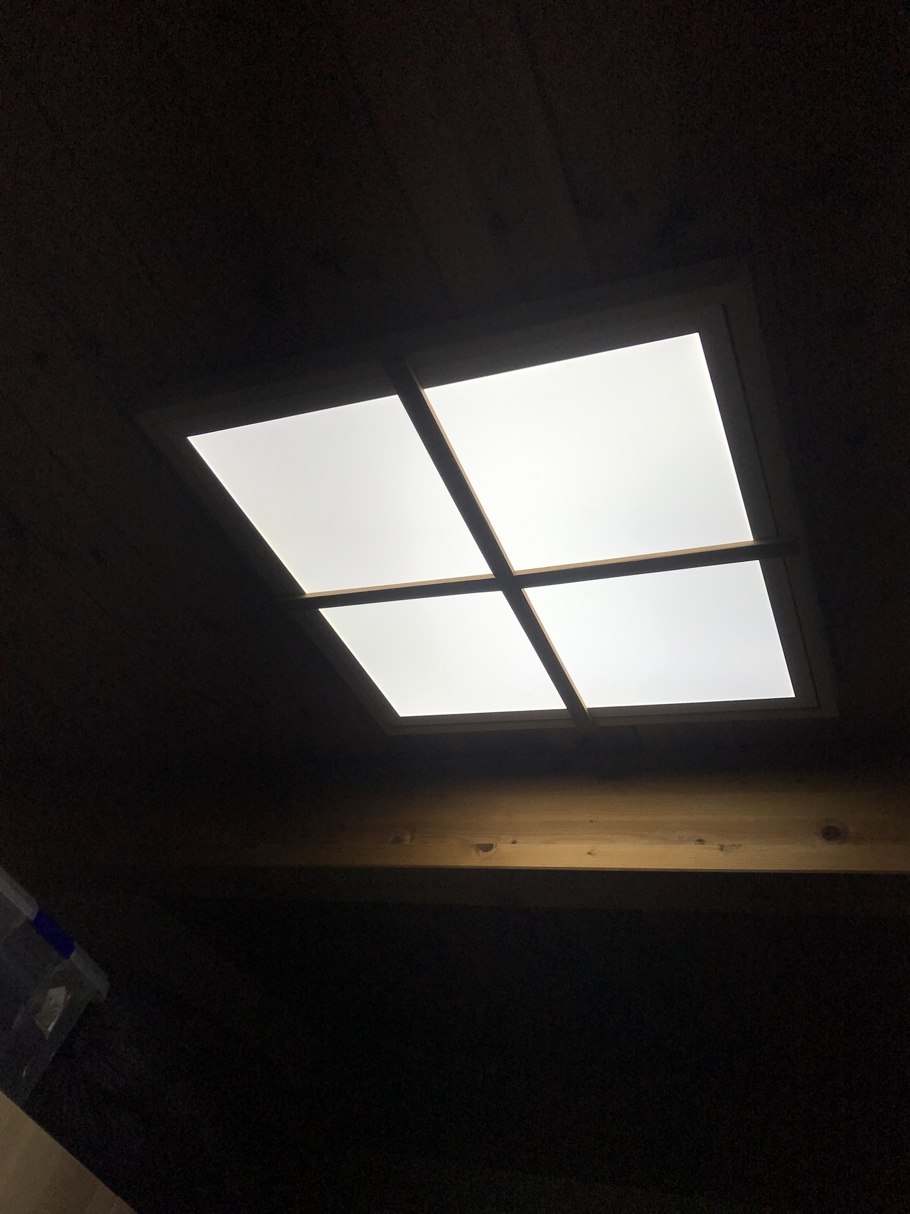 Yo hice este hace un tiempo. Una “falsa ventana”. La gente que la ve en casa piensa que es una ventana de verdad:laughing:. Simplemente va sujeto el plafón con esa cruceta de madera.