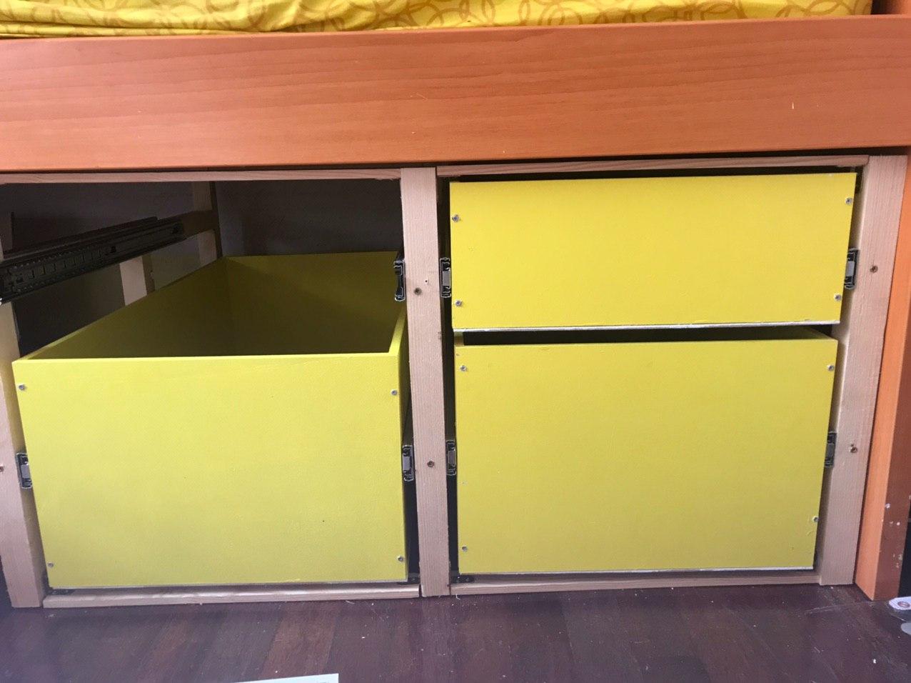 En una habitación tenía una cama nido con una cajonera. Rara vez se usa, y la cama inferior solo servía para coger polvo, así que he regalado dicha cama y la cajonera a una familia que la necesitaba y me encantaría poder hacer una cajonera que aprovechara el espacio.