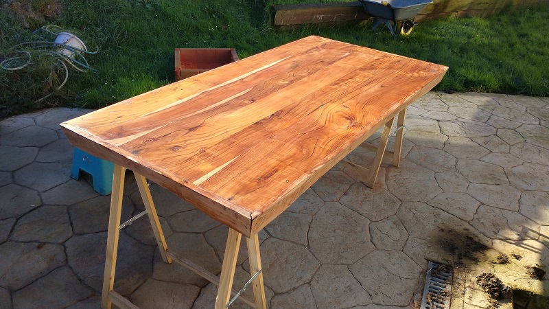 La madera está recién lijada y tan solo le pasé un paño húmedo para intensificar un poco el color.
