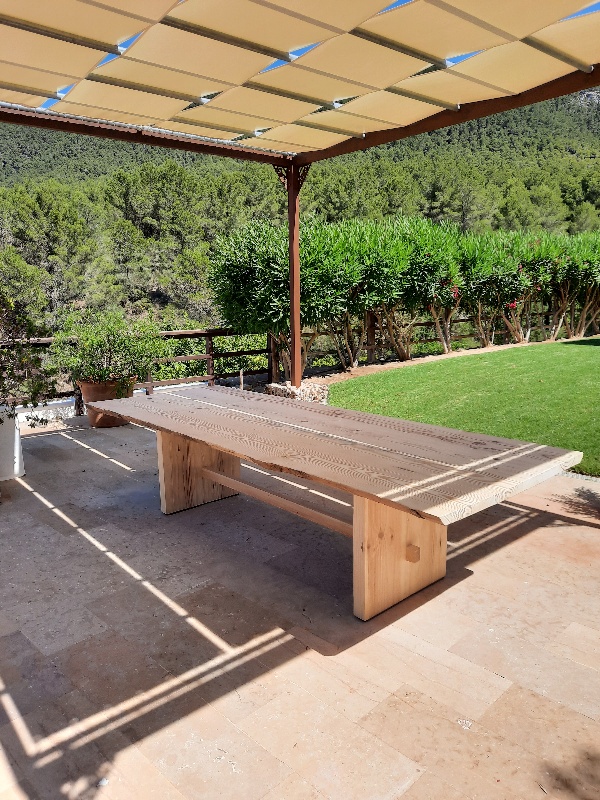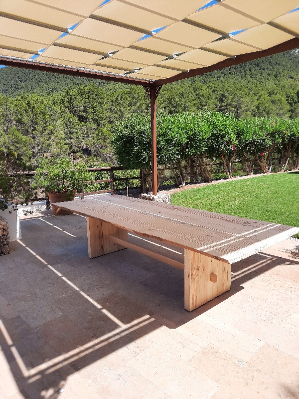 esta mesa acaba de salir del taller…bueno realmente la he tenido que montar fuera del taller ,que con lo que pesa no hay quien la mueva.