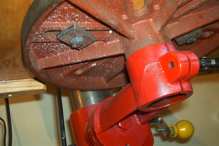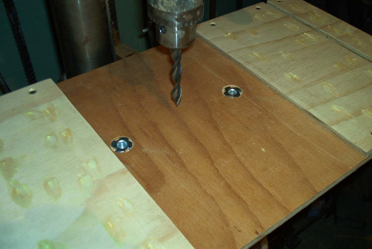 Referente a la fijación de la mesa, sobre la base del taladro, lo realice mediante la inserción de Tuercas T, o insertos T ( T nuts) en la medera que compone la mesa, tornillos cabeza hexagonal de 3/8" y solera de 1/4" previamente barrenada, muestro foto también de ello.