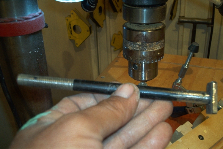 Joalpla, los tornillos T que empleo son de fabricación casera, y no es más que un tramo de redondo de 3/8" (10mm en el caso de por allá), un tramo pequeño de solera de 1/8" x 3/4" (3mmx19mm) (la solera así la conocemos por acá, es una placa de acero comercial que venden en cualquier ferretera en tramos de 6m), al redondo le maquino rosca en uno de los lados, la solera la barreno, luego aplico soldadura en la unión de las 2 piezas, esto para el caso de los tornillos grandes de la cerca o barandal, en el caso del mas pequeño, (el usado en el tope) emplee redondo de 1/4" (6mm). también puedes emplear tornillos para la fijación de los asientos para baño (acá en México les llamamos tasa), solamente que en ese caso dependerás del diámetro y longitud que estos tienen comercialmente.