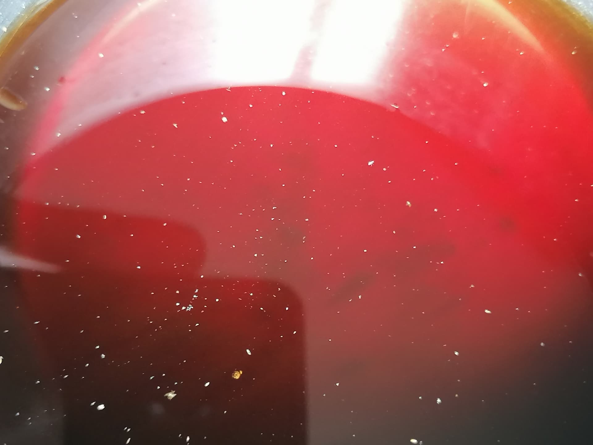 Con boletus deshidratados: el agua de la rehidratación da desde un cerezo a casi un palo rojo.