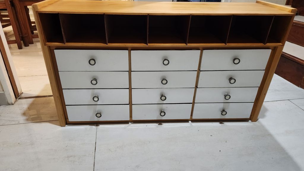 personalmente le sacaría a los cajones la formica y los dejaría naturales o enchaparlos, pero mejor me callo la boca