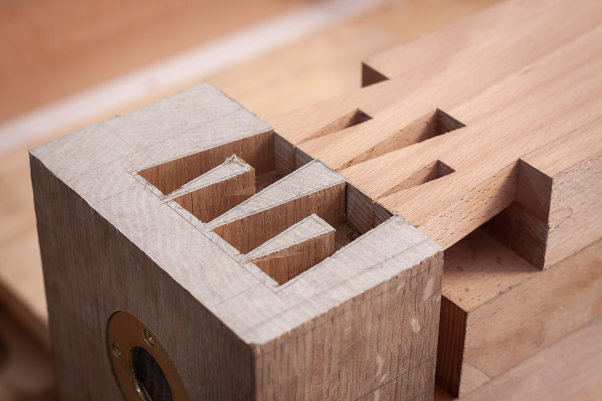 Actualmente estoy trabajando en la otra mitad, las complicada porque lleva colas de milano, una pieza cruzada y los tornillos de las prensas. Aquí algunas fotos de la tapa. Posiblemente solo esta parte sean más de 100 horas de trabajo, más otras 50 del resto anteriormente descrito y me quedan otras 150 para acabar.