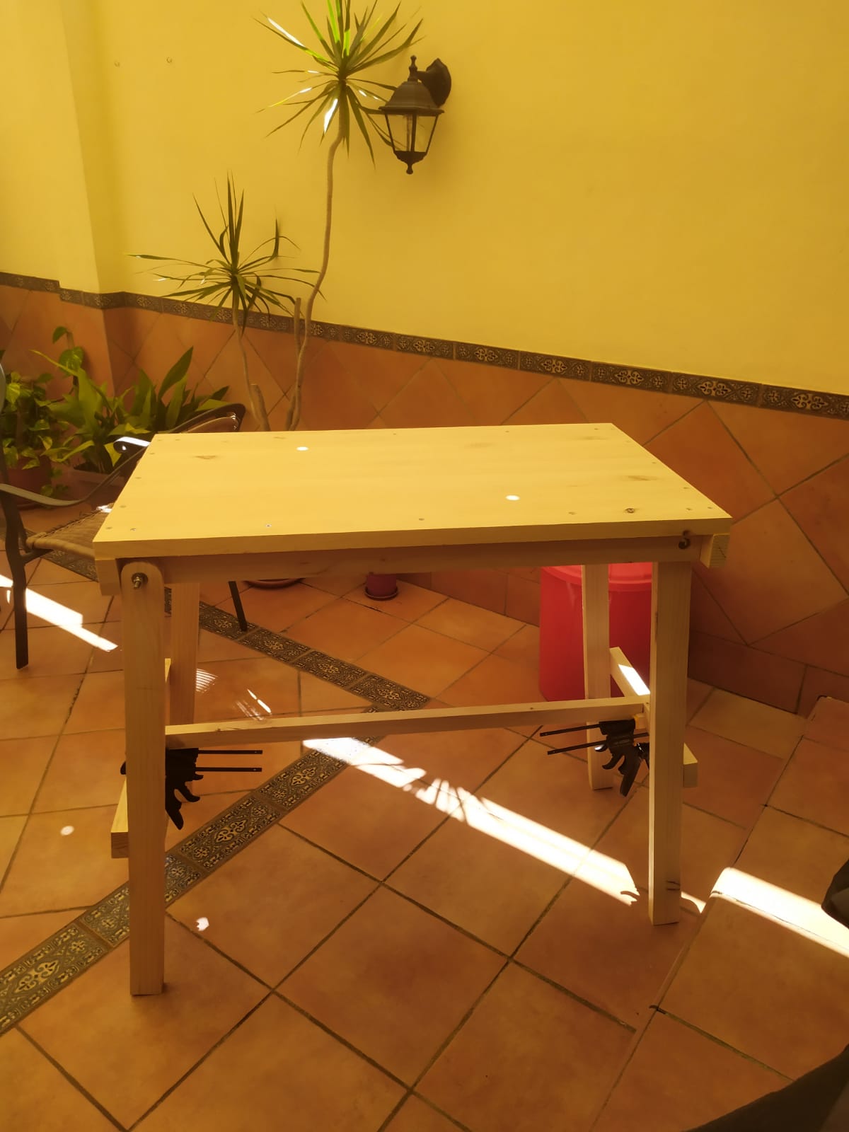 Primero, yo no tengo taller, por lo tanto trabajo en el patio o en porche de entrada a casa depende del tiempo que haga. Esto condiciona mucho al banco que tiene que ser pregable etc.