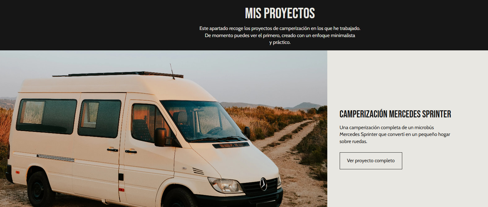 La web la veo bien , salvo la imagen de la furgo en el apartado de camperizaciones, cuando vas a la seccion, mejor ver la primera foto los interiores que haces, no una furgo vieja por fuera…