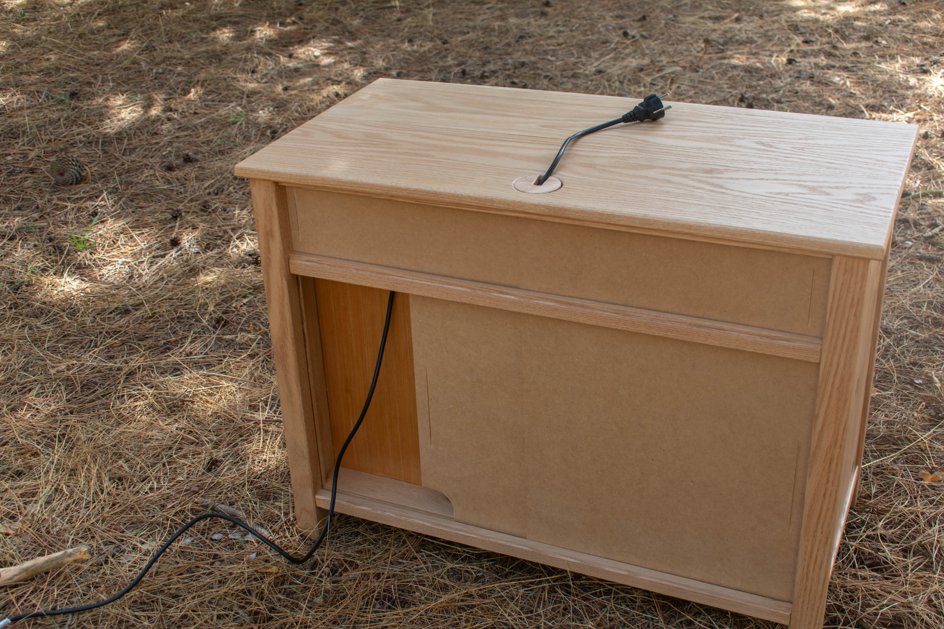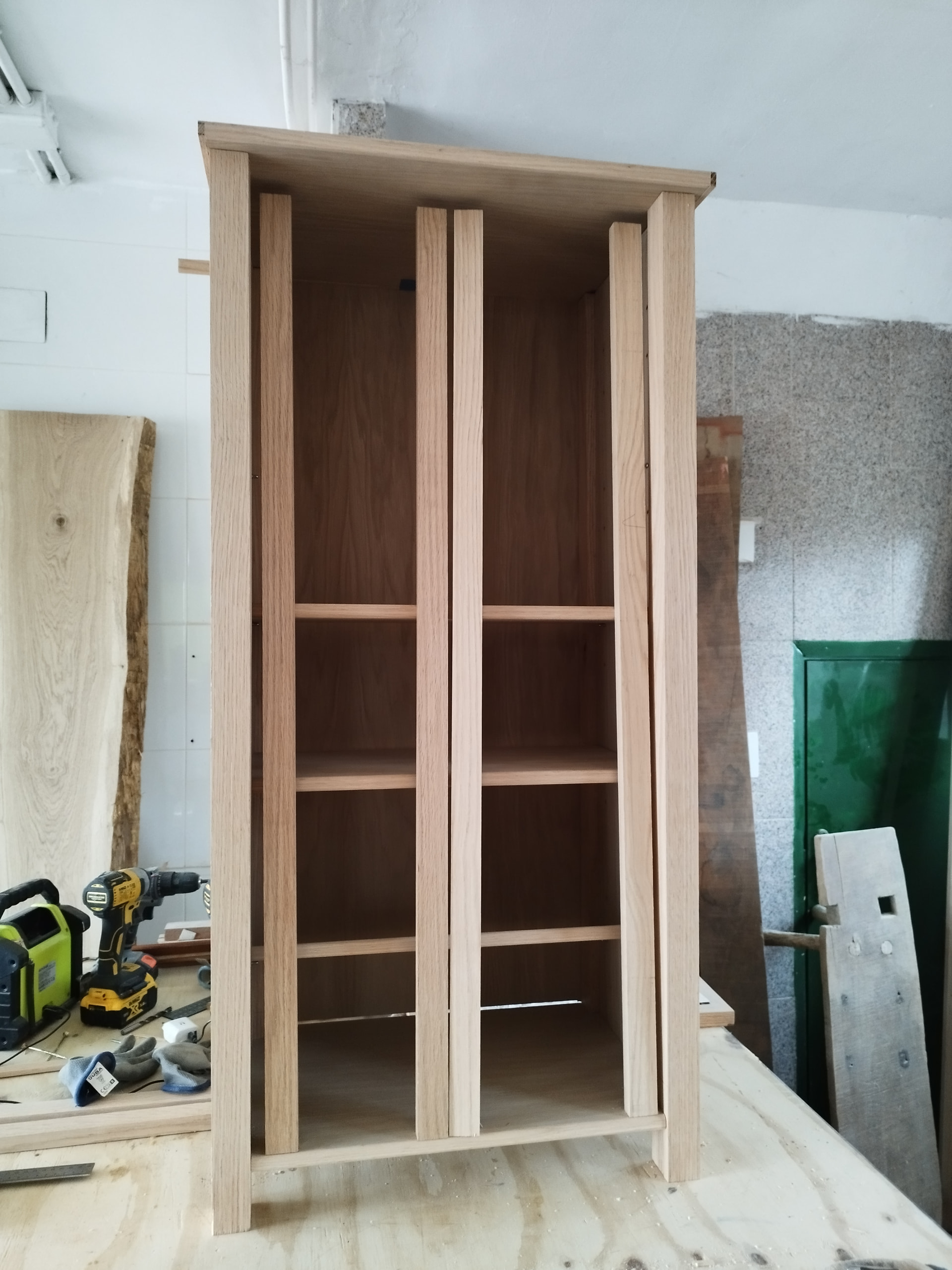 En ambos casos la tapa superior está encolada, en el primero no me preocupa al ser mdf, pero en el segundo el movimiento del roble al expandir y contraer… no se, ahora no lo habría hecho así, pero fue el primero, para mis padres, veremos si da problemas. ¿Creéis que moverá la estructura? Igual en vez de encolarla la habría atornillado como se hace en las mesas para permitir movimientos. un saludo