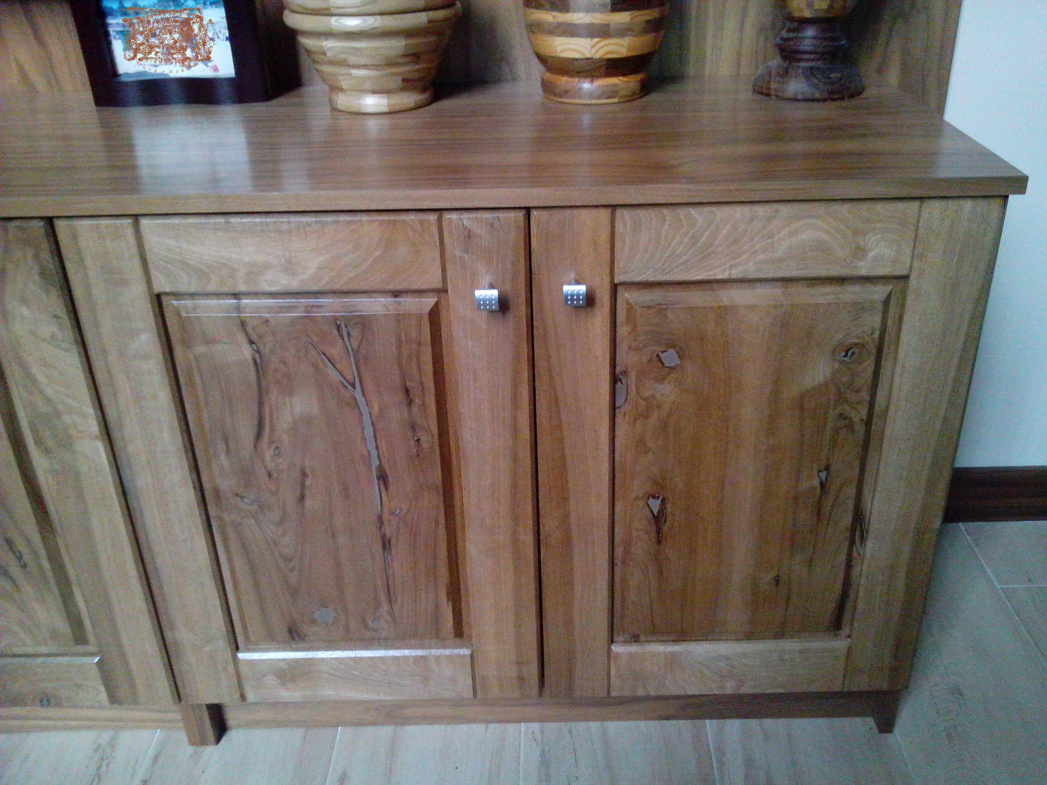 El mueble esta muy bien…pero esa masilla que has puesto en los nudos desvirtuan mucho el trabajo,Yo hubiese optado o bien dejar los nudos al natural o aplicar epoxie translucido.