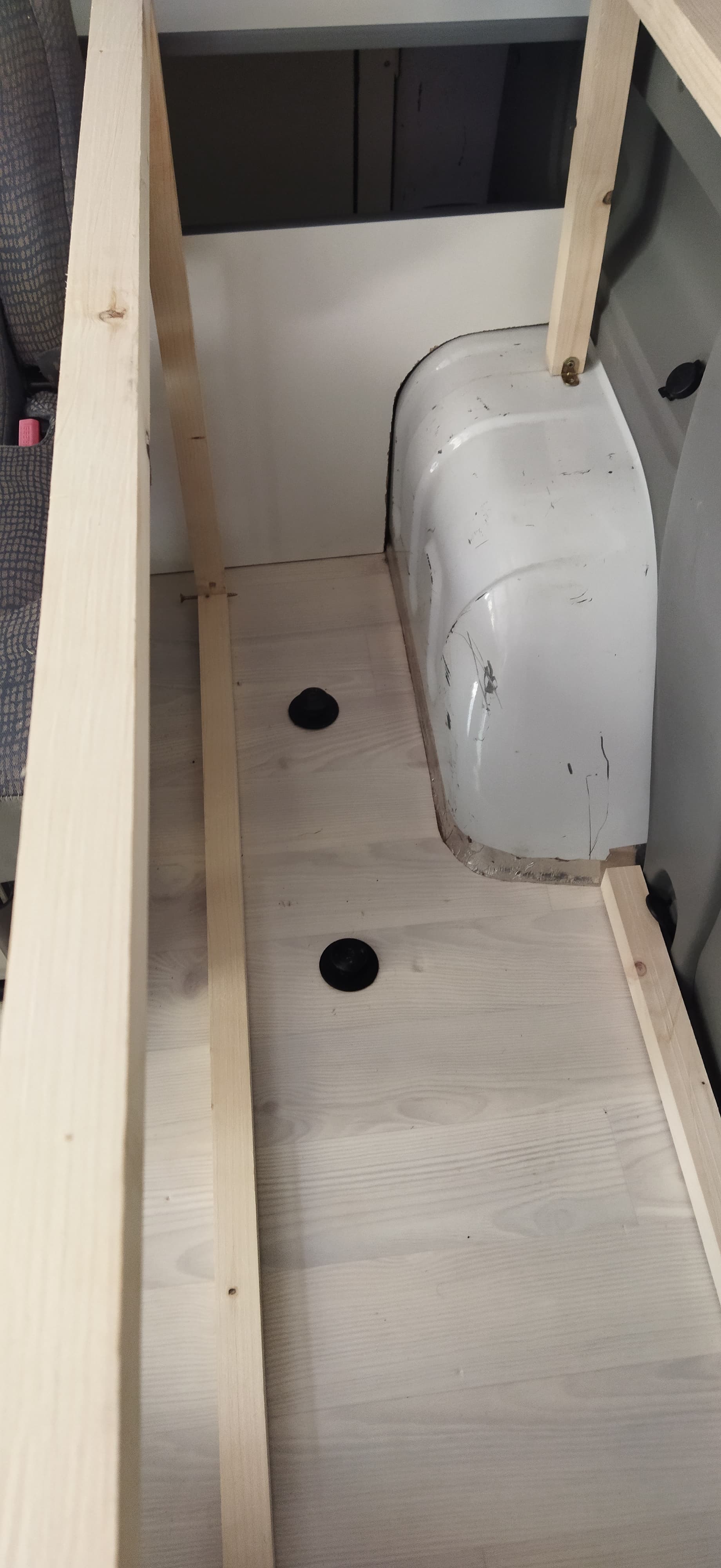 Evidentemente que la homologación sería lo último, pero debes tenerla en cuenta desde el principio. Esa simple escuadra en el paso de rueda ya sería obligatoria su homologación, por lo tanto de aquí en adelante todo lo que hagas lo tienes que hacer con esto en mente. Si tu intención es no pasar por la Itv para homologar, ya puedes ir sacando ese anclaje y buscándote la vida para que los muebles sean de quita y pon sin usar herramientas.