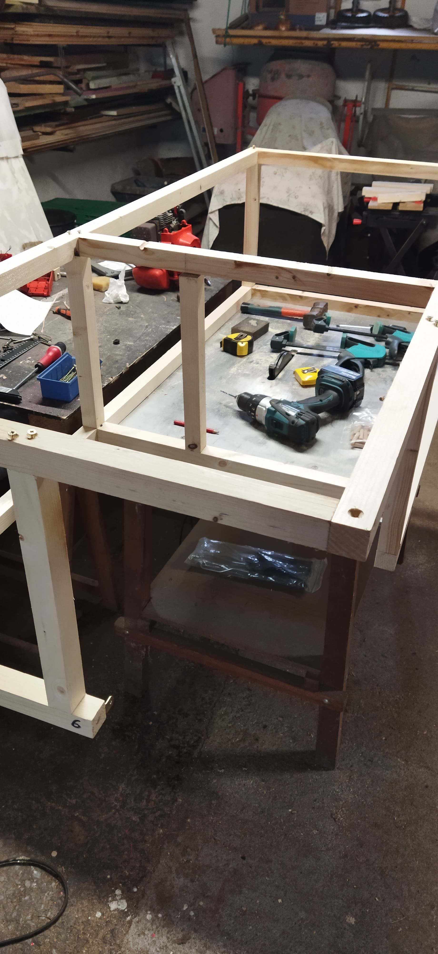 Quiero homologar, pero hasta no tenerlo todo no lo voy a hacer y tampoco tengo seguro que pueda homologar este mueble con el asiento etc, por eso lo hago con maderas recicladas. La escuadra es cosa de mi padre jajaja se que luego debe ir todo fijado, para eso usaré tuercas remachables.