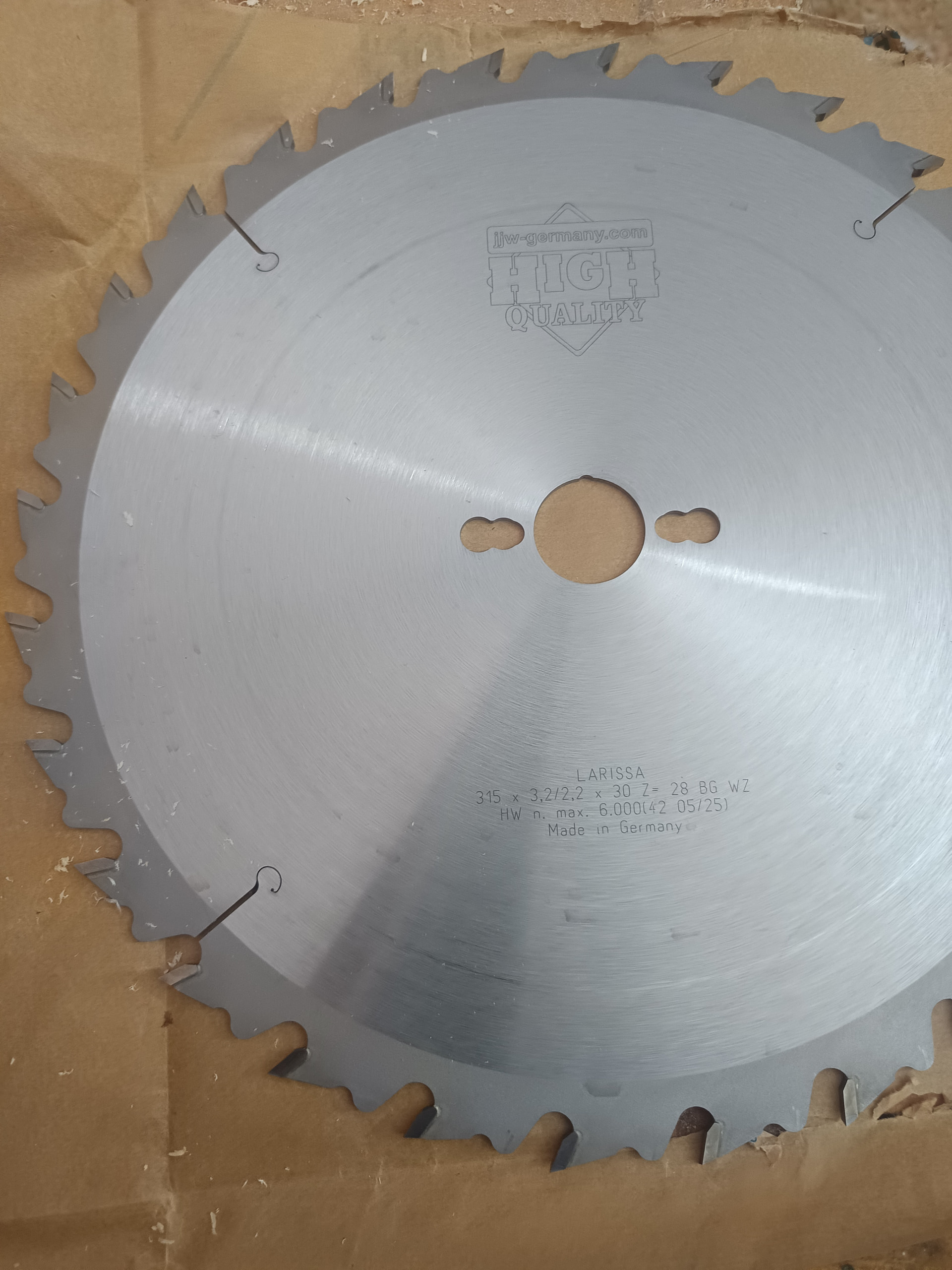 Para madera maciza, para aglomerados y eso tengo uno de cmt de 60 dientes creo que es. Pero ahora con lo que ponéis del kick back me preocupa tener problemas con este. Aunque en la sierra de mesa anterior tenía uno igual pero de 250 y he cortado siempre con el, he sacado chapitas y he sacado listones de un tablón, no he tenido problemas
