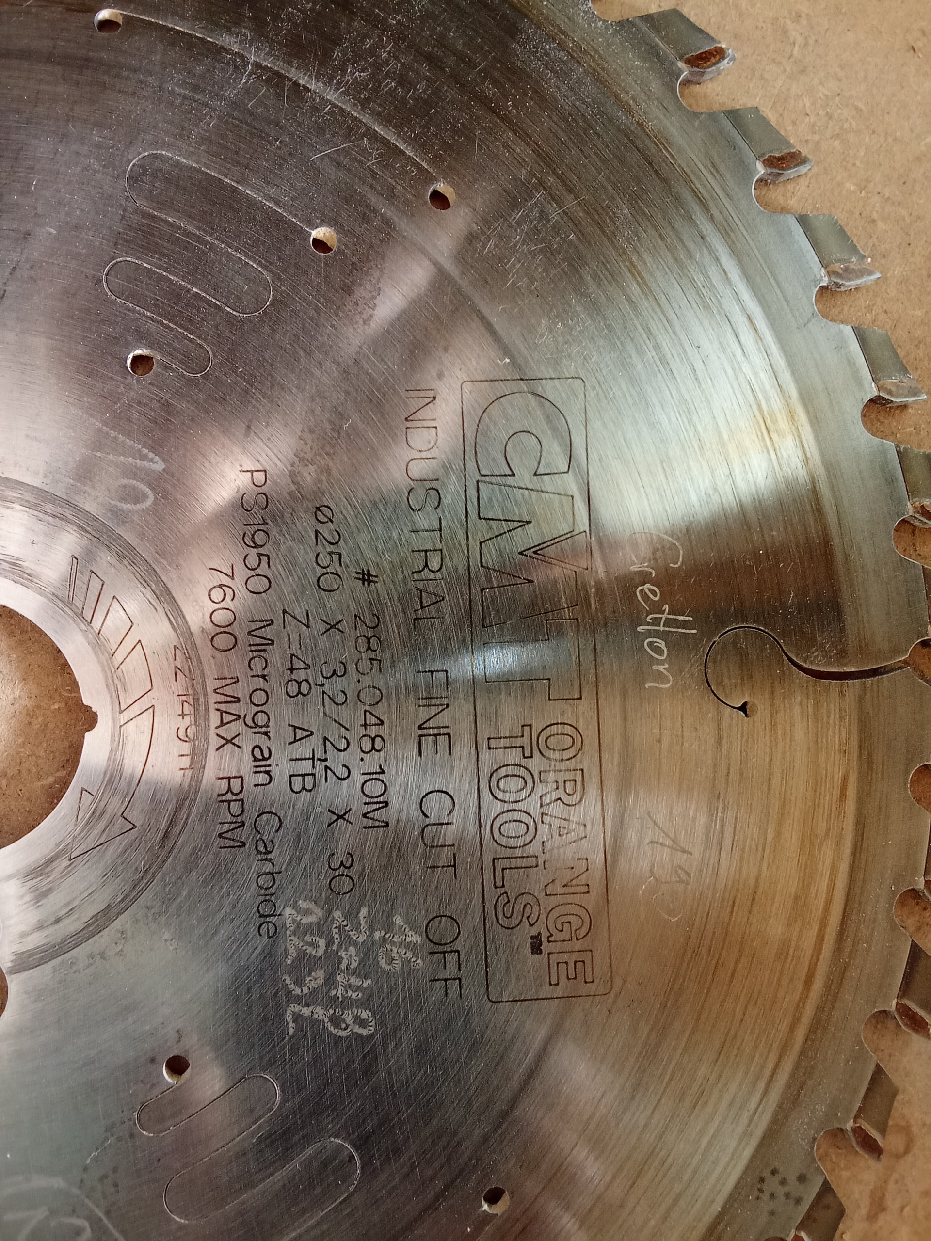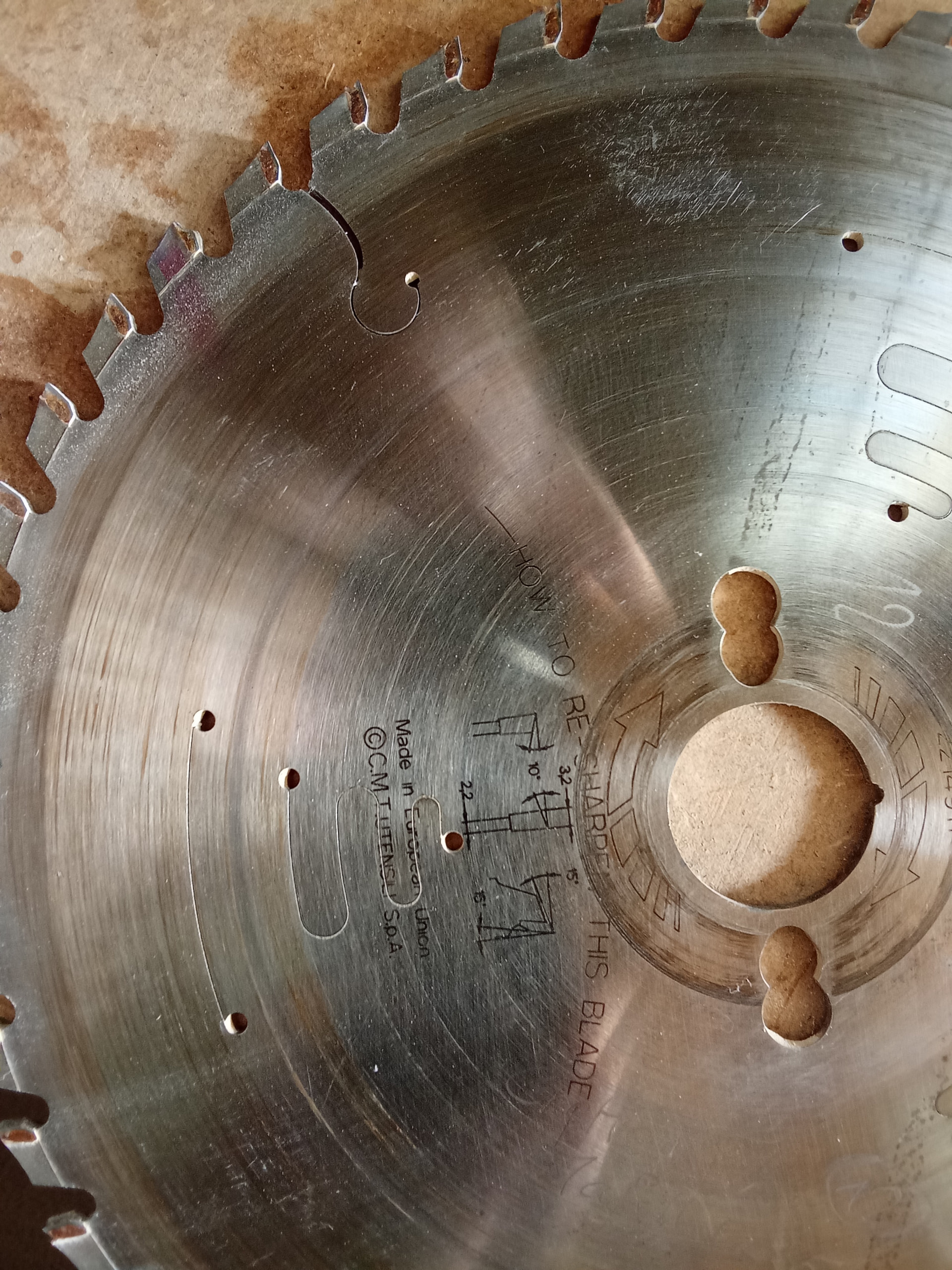 Con madera reciclada no es raro romper algún diente o mellar alguna cuchilla, y en los discos no es raro perder ms de un diente , en el que muestra Francis en la primera foto hay uno partido y en la segunda uno despuntado.