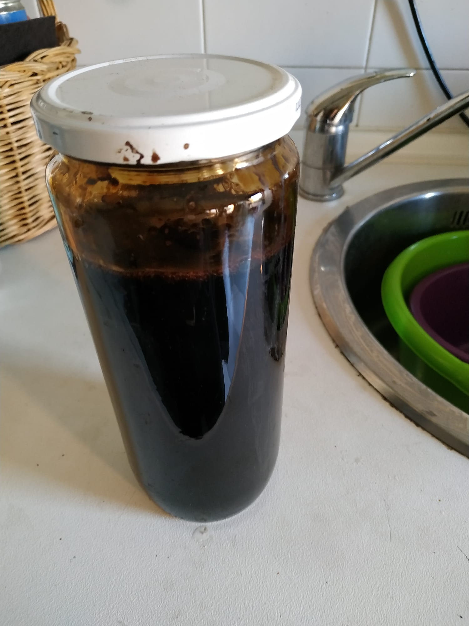 Al final colé la mezcla y me salió 1 litro (usé una cazuela que era para tirar y no muy grande) aunque está muy oscuro y creo que podría disolverlo más. Me quedá para un par de veces más.