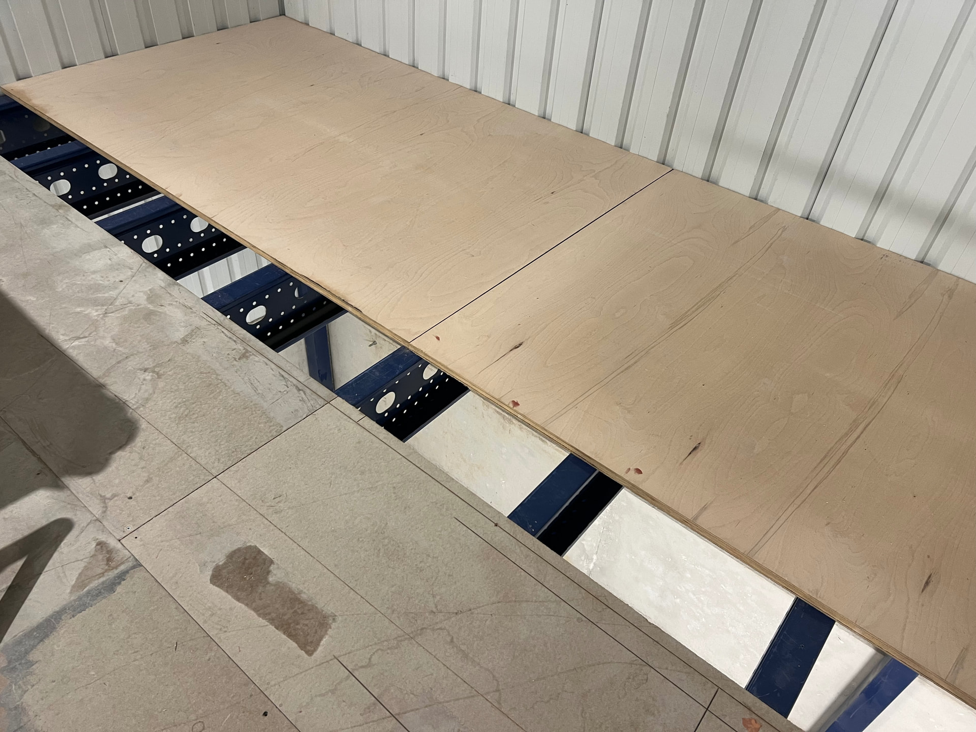 El aglomerado que había era de 3000x600mm, y uno solo las maneja razonablemente bien, pero estos tableros son de 2540x1540mm y la cosa se complica. La densidad de este contrachapado será similar al MDF, 700-750kg o así.