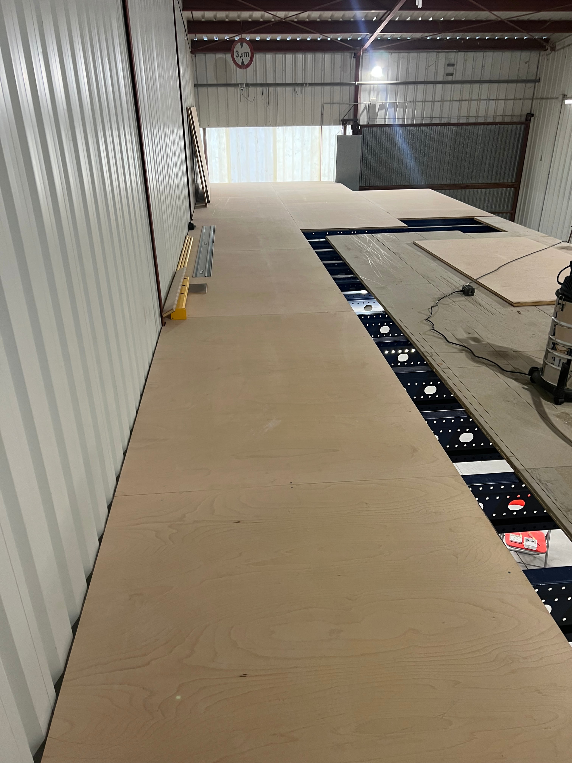 Los que montaron la estructura eran unos cracks, las vigas no están perpendiculares, la estructura tiene como agujeros para atornillarlas y en un lado contaron 5, y en otros 6… esto me está complicando la colocación de los tableros porque quiero que la unión entre tableros siempre sea encima de una viga, que no quede vuelo en el final de un tablero.