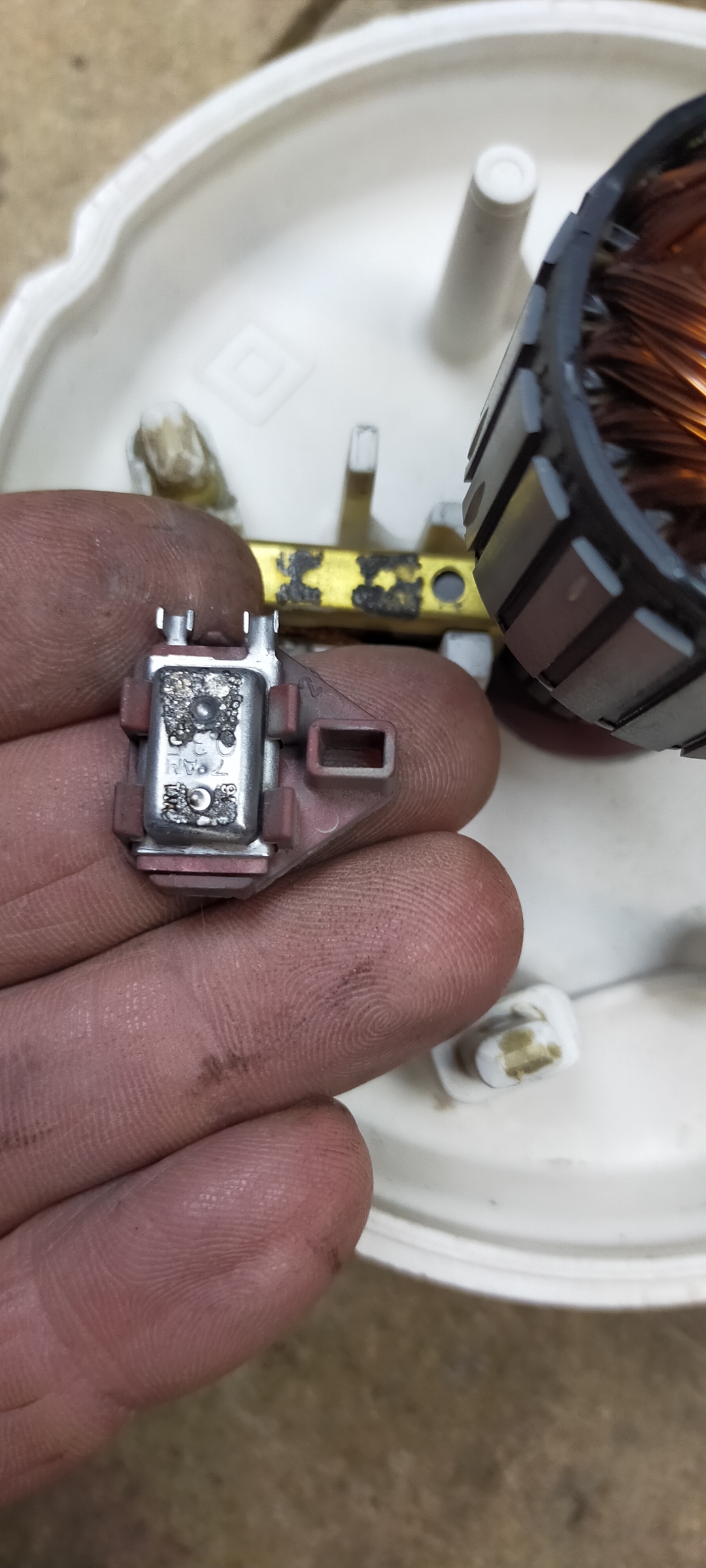 Encontré esta pieza pegada a una escobilla, con marcas de quemaduras.