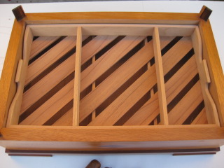 Realizada en madera maciza de caoba y cedro con detalles en palo santo. Barnizada con muñequilla. Ahora queda el “relleno”.