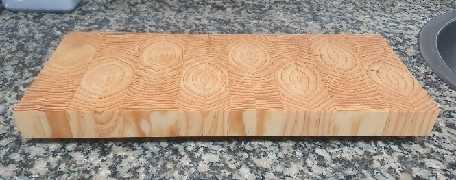 Pino, lo compré en el aserradero, no es lo mejor para una tabla de cortar el tiempo lo dirá…pero seguro que dura más que la de cara que tenian les partió en dis de un golpe…