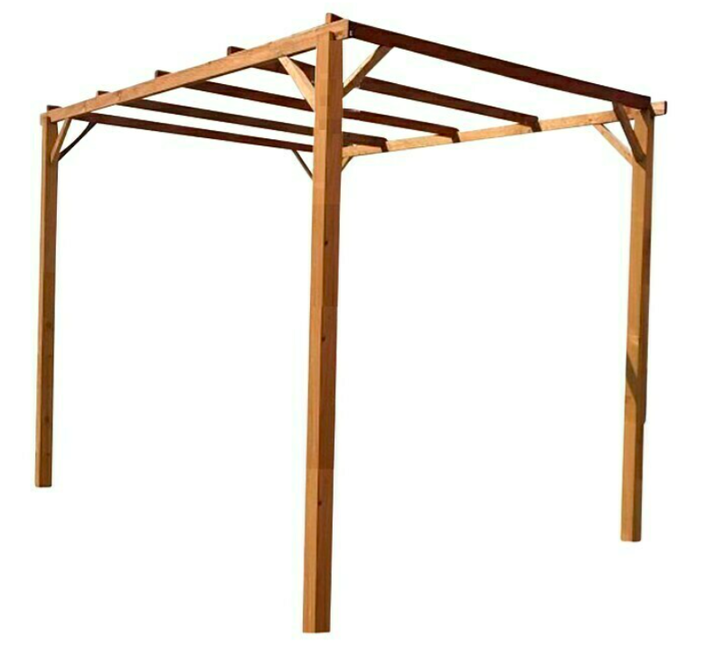 me han encargado una pérgola de madera lo más sencilla y barata posible para la terraza de unos amigos. Básicamente un cuadrado de madera con algunos travesaños y 4 pilares para que puedan poner una tela para parar el sol y listos. No tiene que tener ninguna resistencia estructural y únicamente debe soportar el viento que pueda hacer. Algo tan simple como esto: