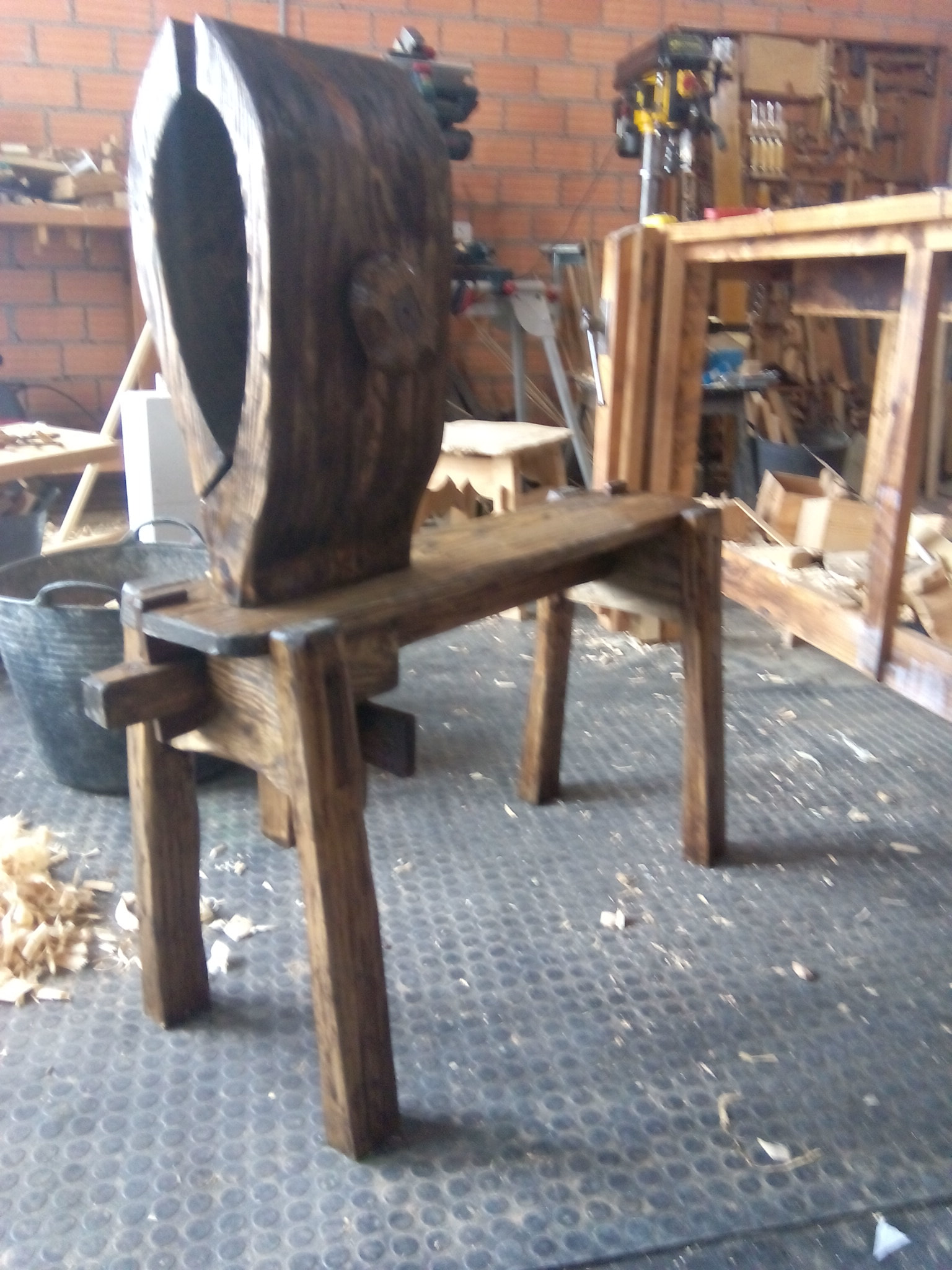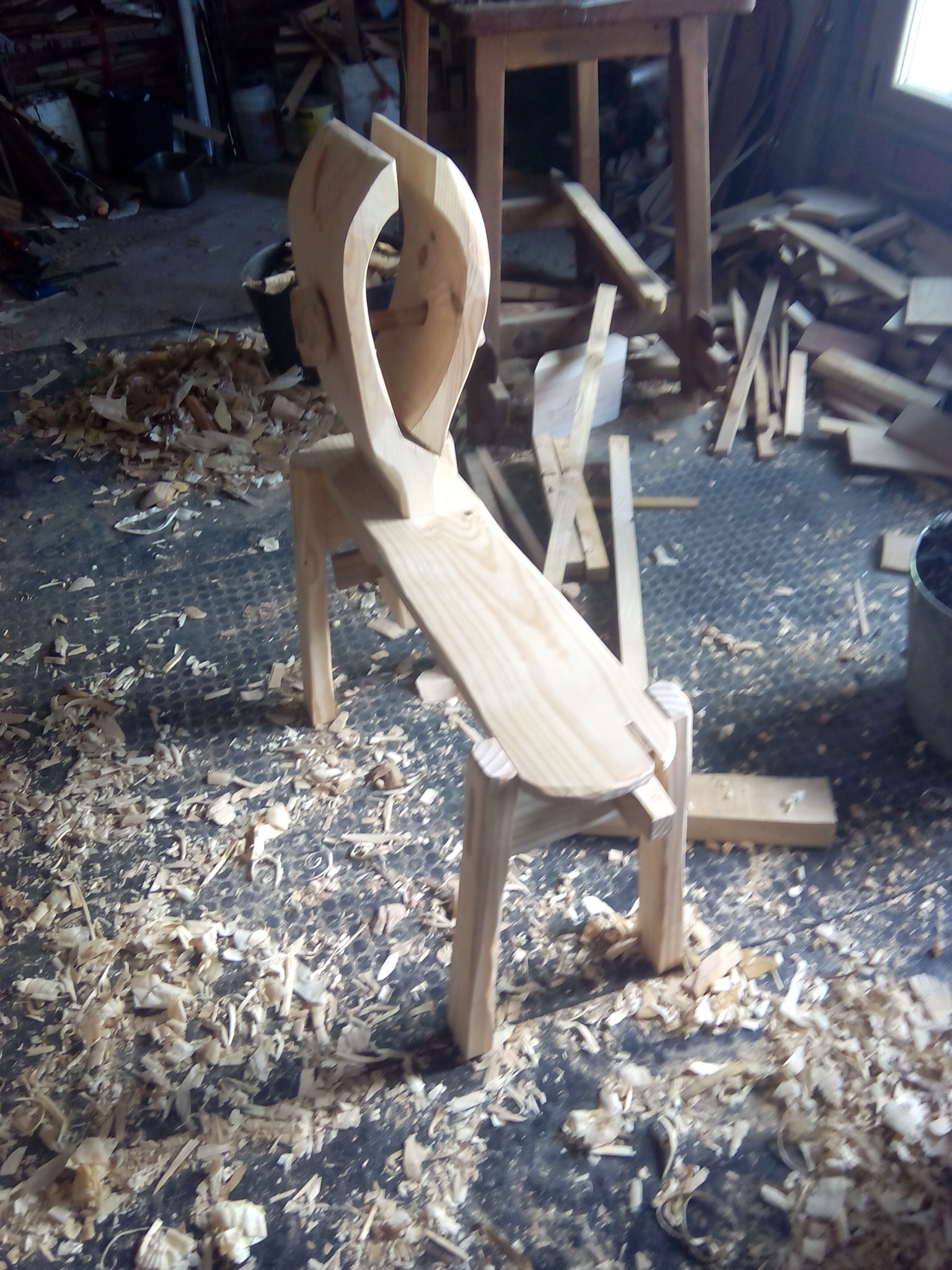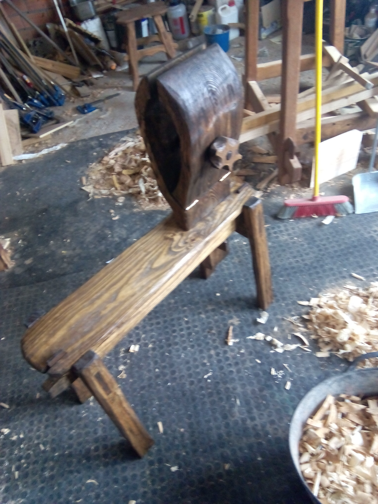 Esta monstruosidad es una pinza de guarnicionero muy grande para coser cuero, la pinza es de tablón de pino rojo de 22x10cm, el aprieto es madera roscada y no recuerdo muy bien por qué lo hice todo desmontable