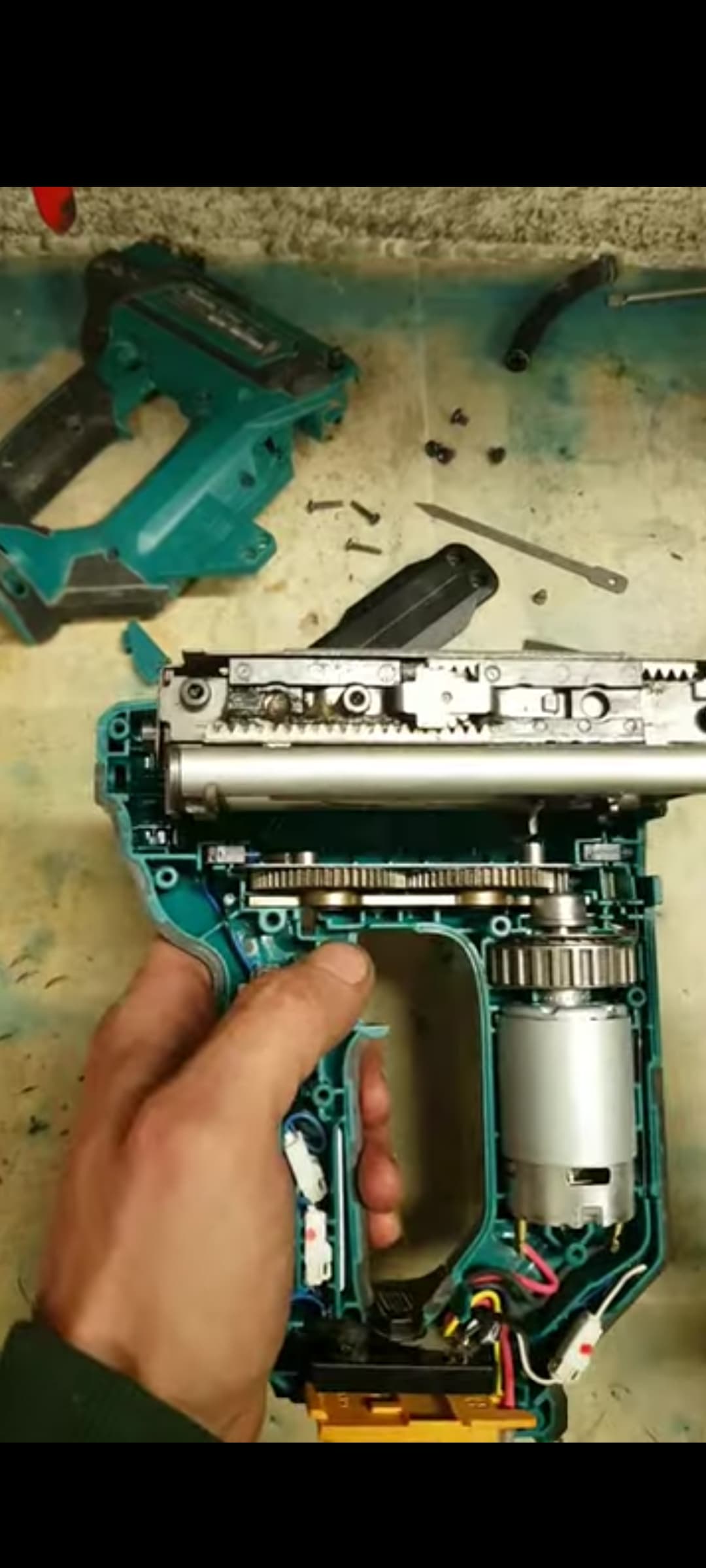 el tema de las clavadoras es que la neumática y la electrica funcionan al revés, es decir en la electrica la “aguja” en reposo está arriba del clavo, y cuando el mecanismo actúa esta se tira para atrás comprimiendo el resorte y dejando entrar al carril el nuevo clavo y luego una vez que llegó bien atrás se libera el resorte, con lo cual no creo que el resorte sea el culpable…
