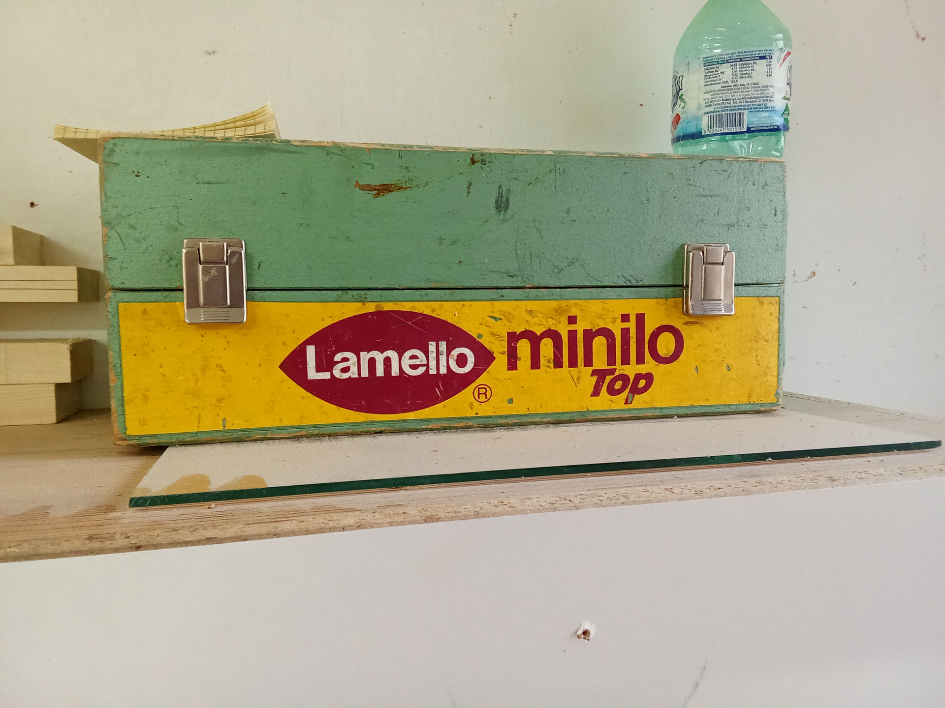 La máquina está por el almacén, utilizo la caja para mí mascarilla de barnizado